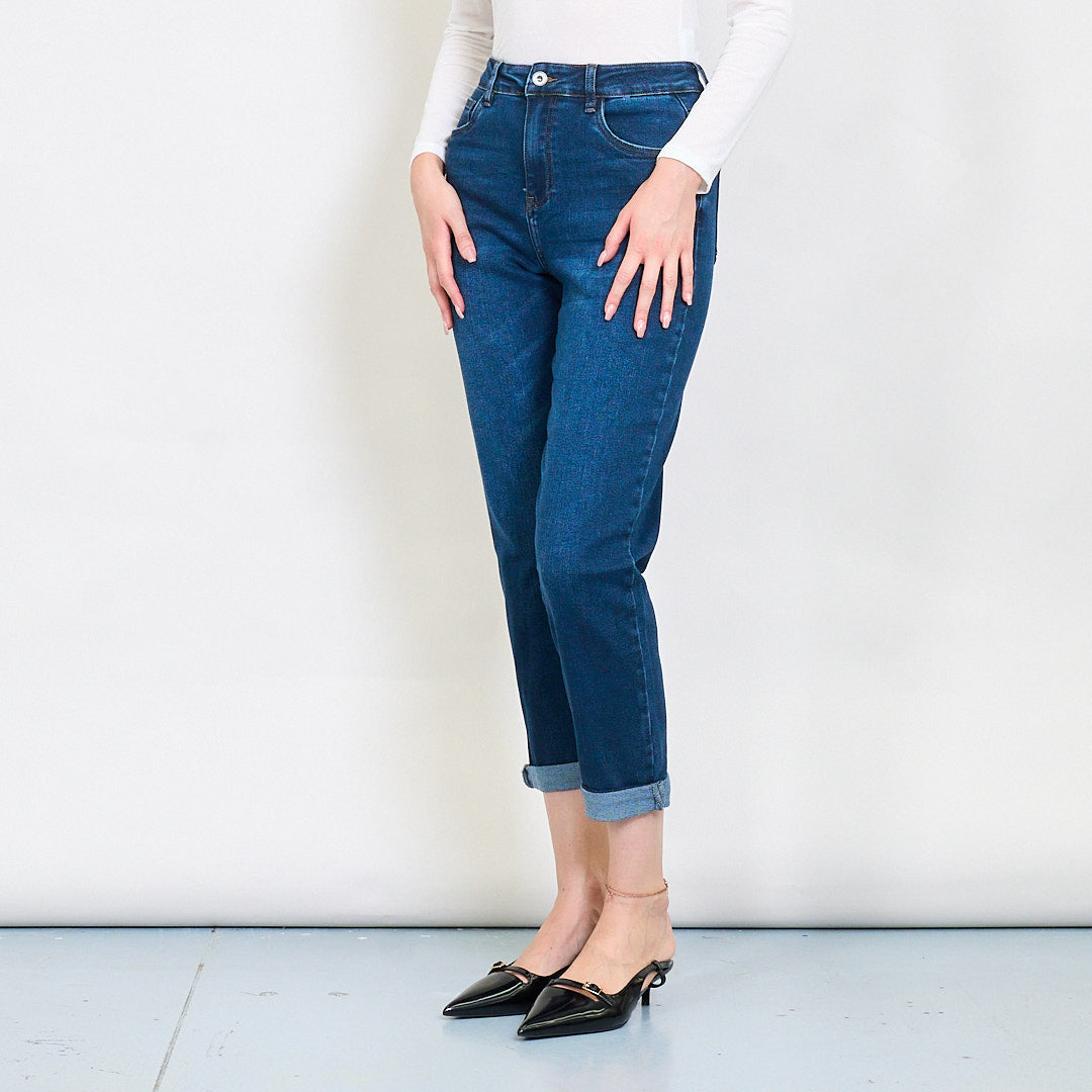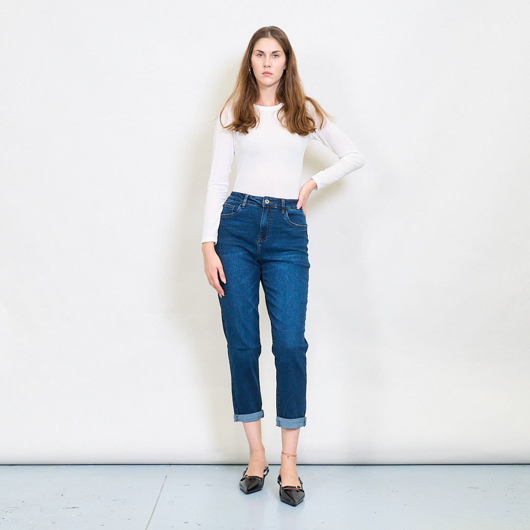 - Klasiskā piecu kabatu struktūra ar jostas cilpām
