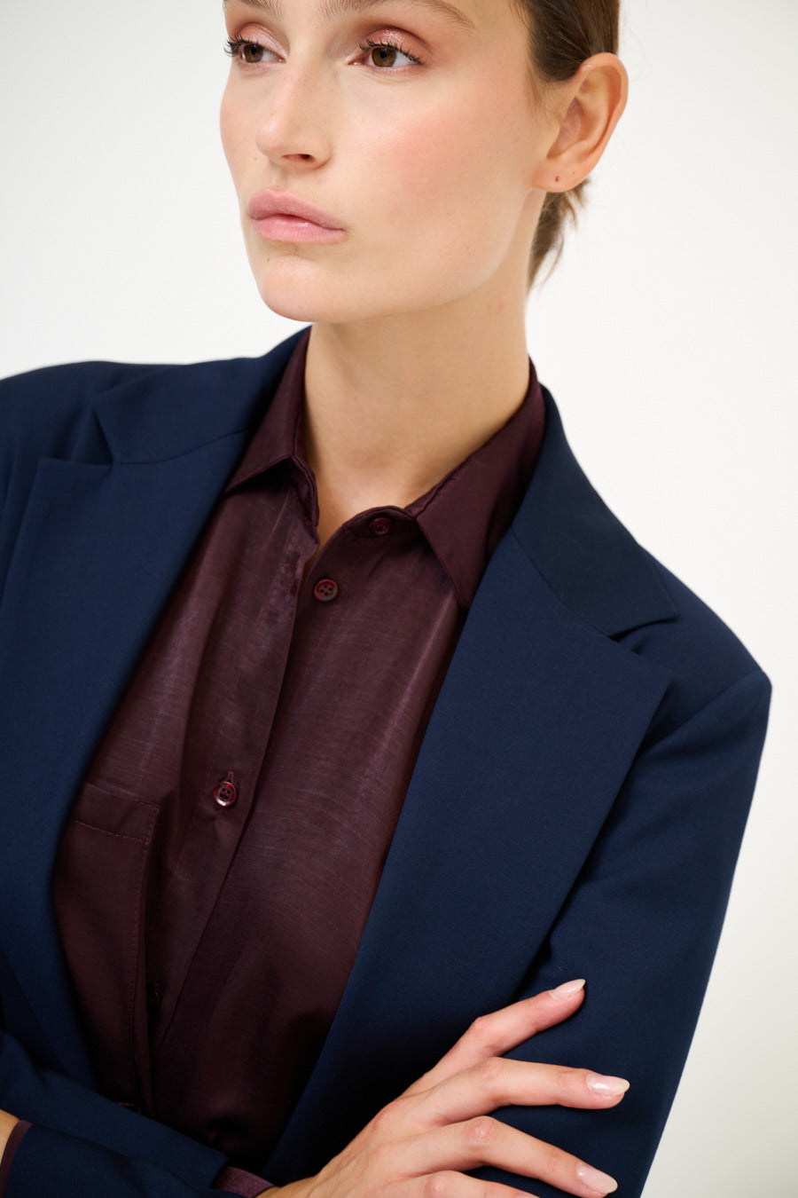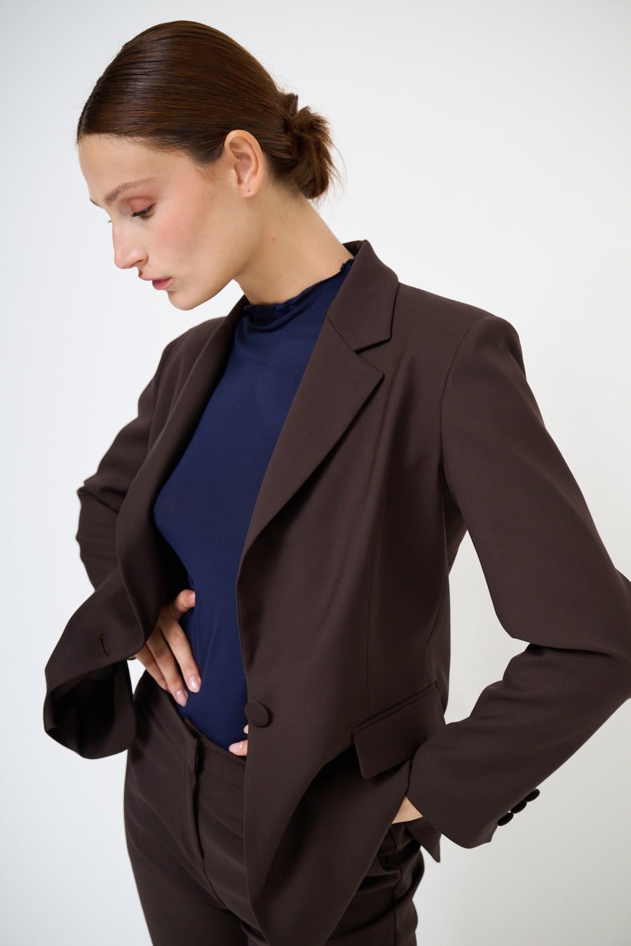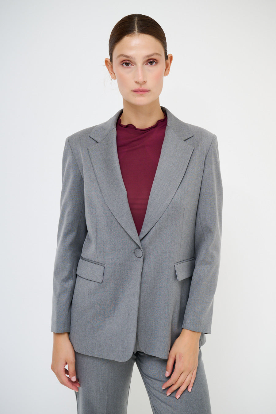 Strukturēts vienas pogas žakete ar atloku kabatu vairumtirdzniecību
