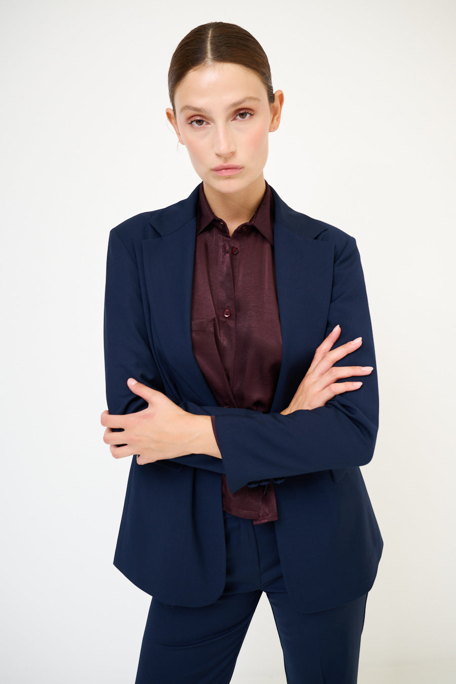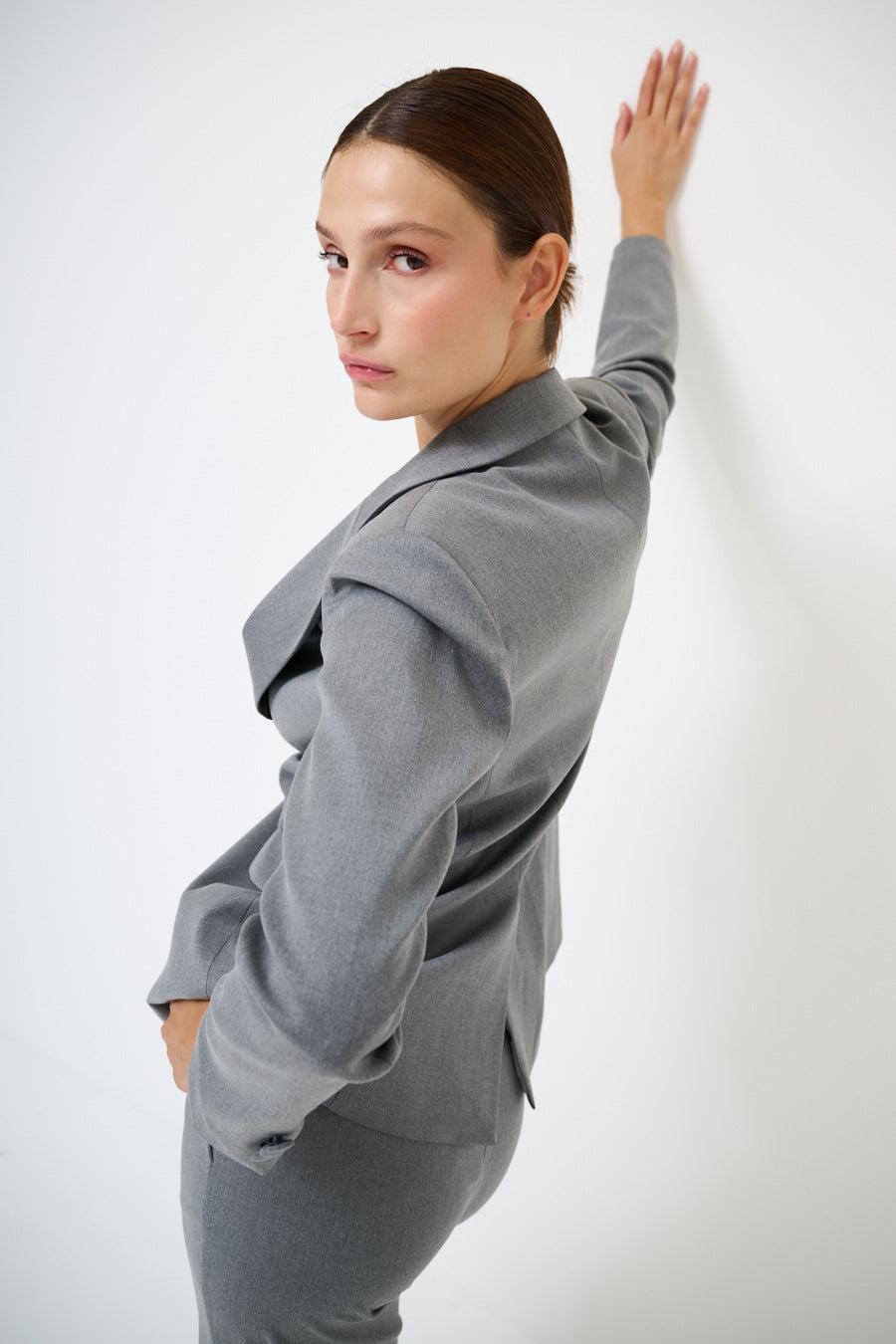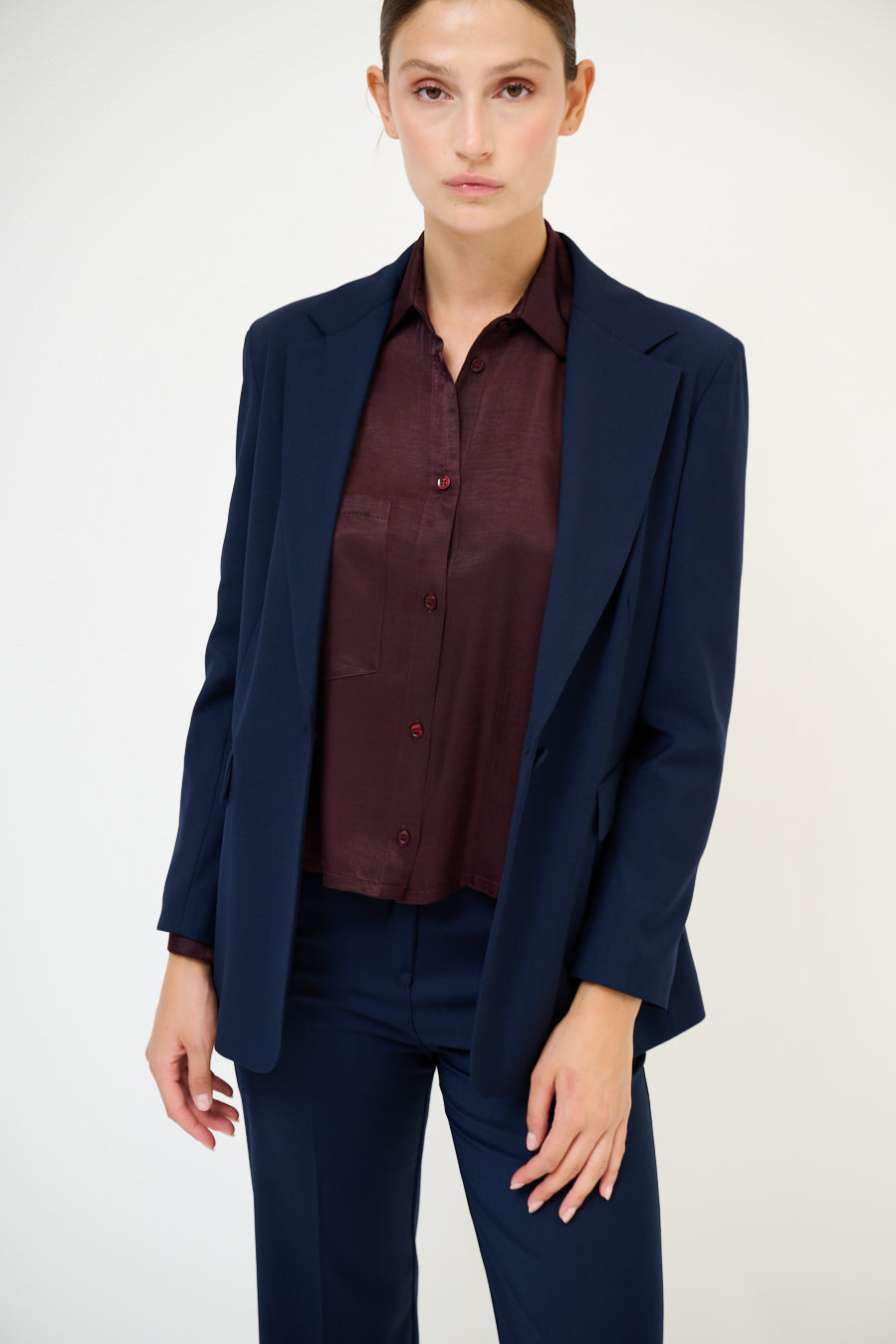 Strukturēts vienas pogas žakete ar atloku kabatu vairumtirdzniecību