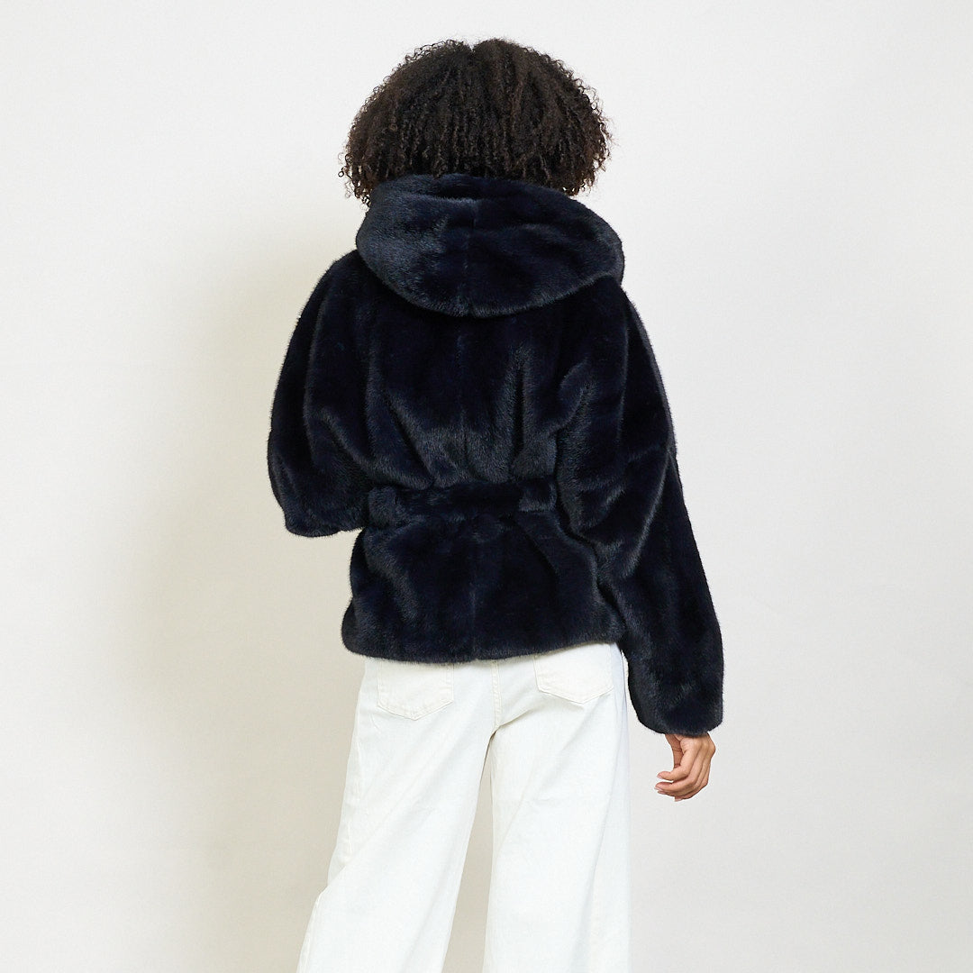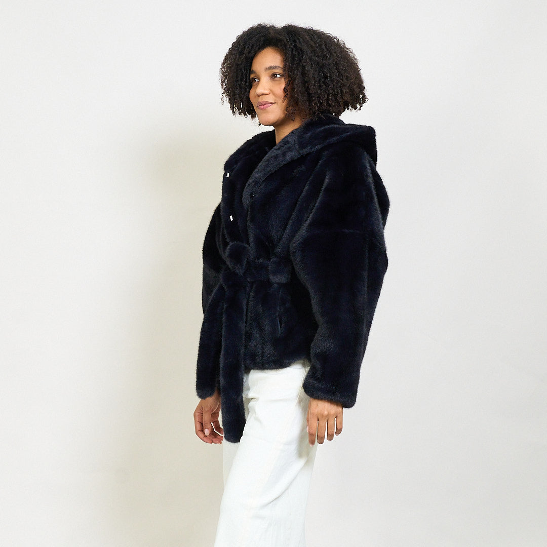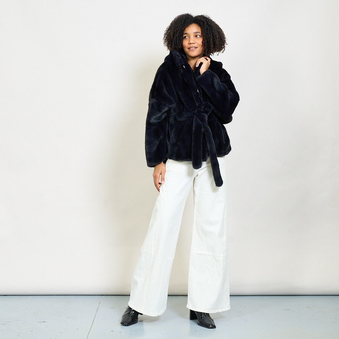 Teksturēta mākslīgā kažokāda ar platu apkakli un atbilstošu jostu vairumtirdzniecību
