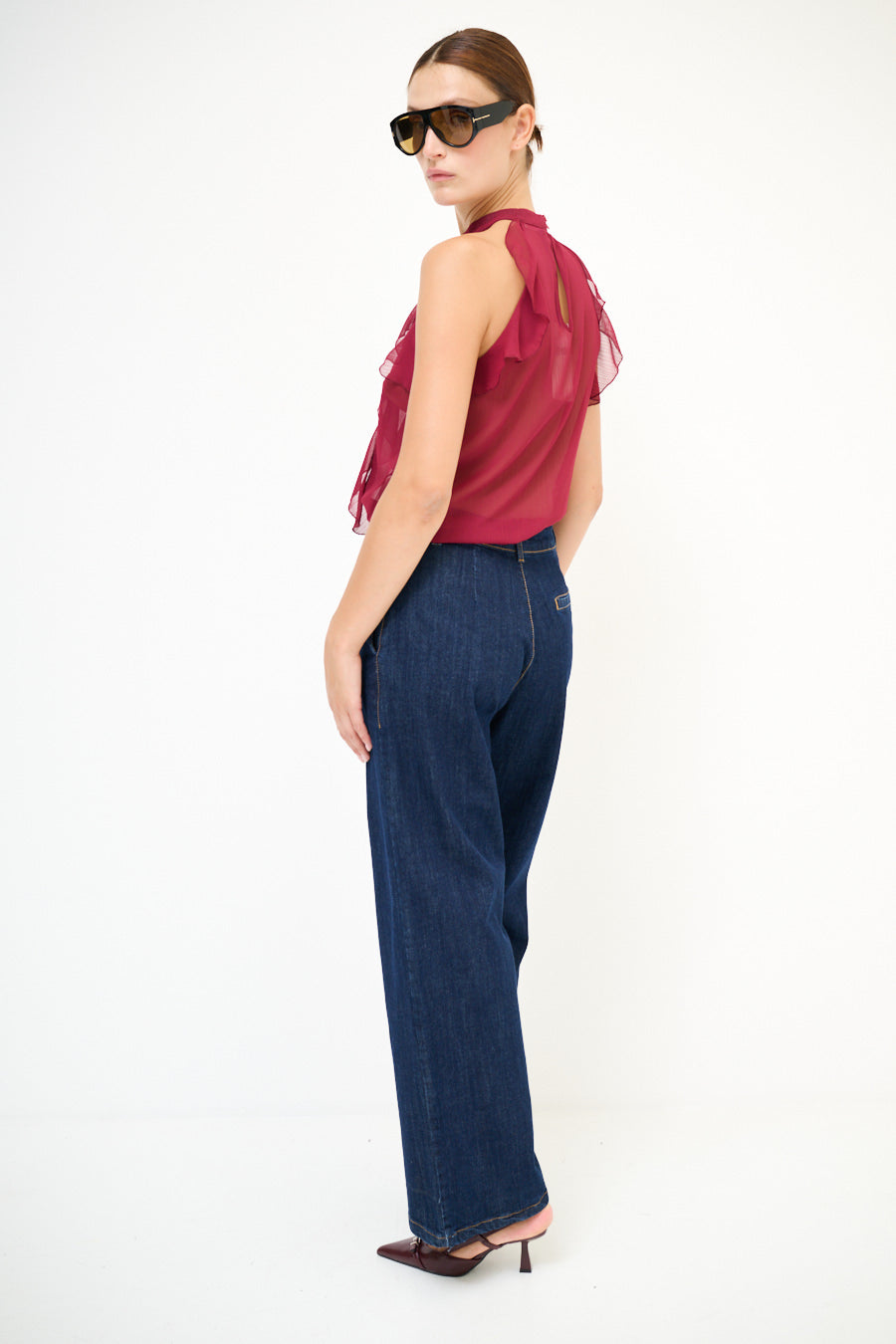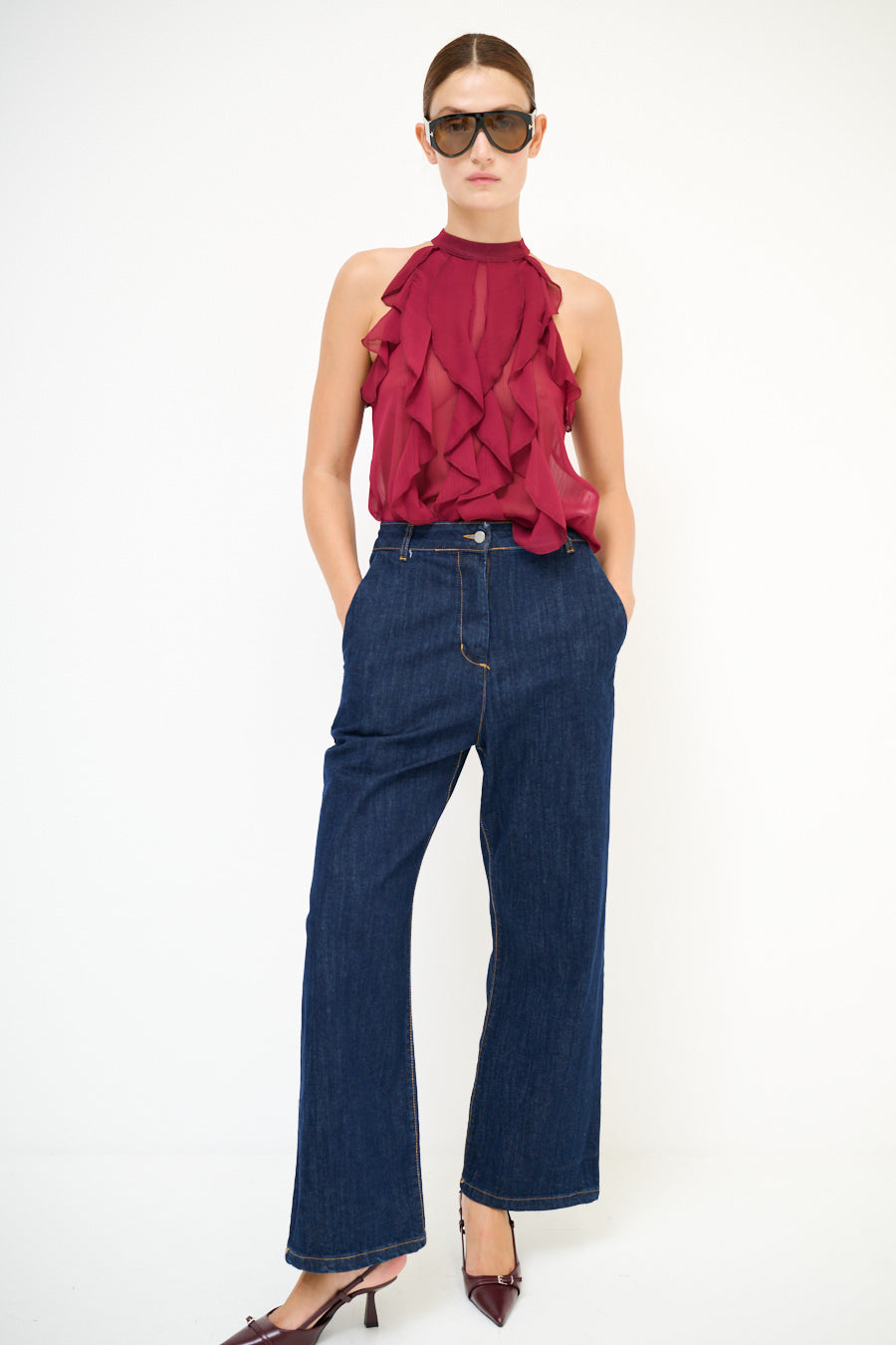 Plata kājas džinsa bikses ar pielāgotu šuvju vairumtirdzniecību