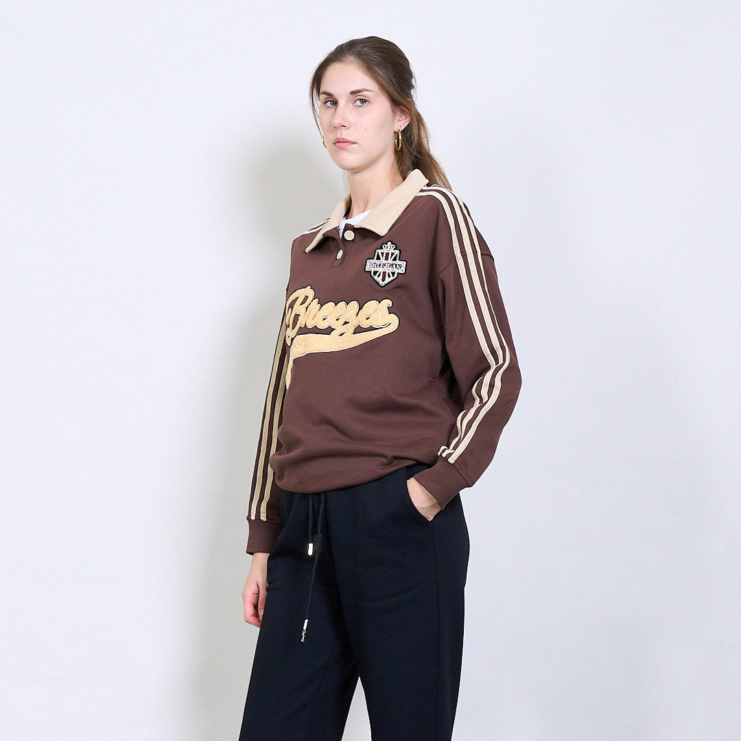 - Polo stila džemperis ar kontrasta apkakli un pogu plaku