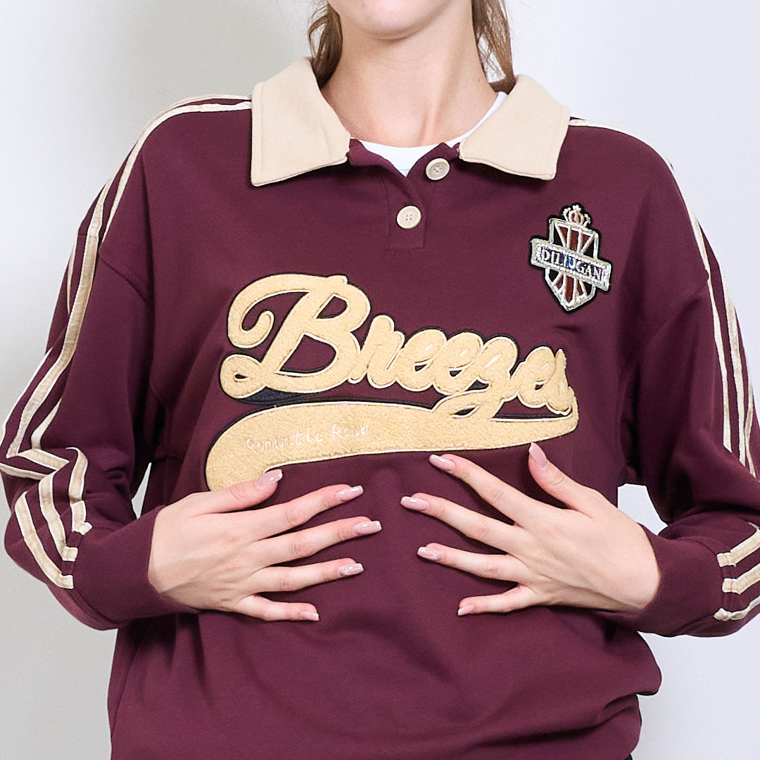 Varsity Polo sporta krekls ar izšūtu "Breeze" plāksteri un kontrasta svītru vairumtirdzniecību