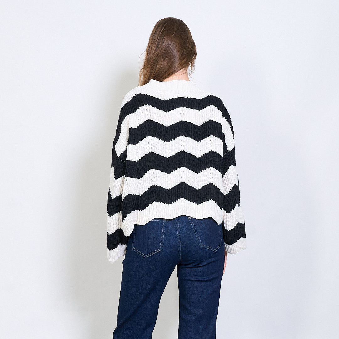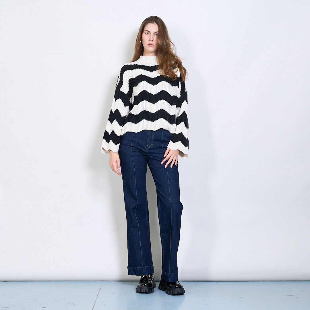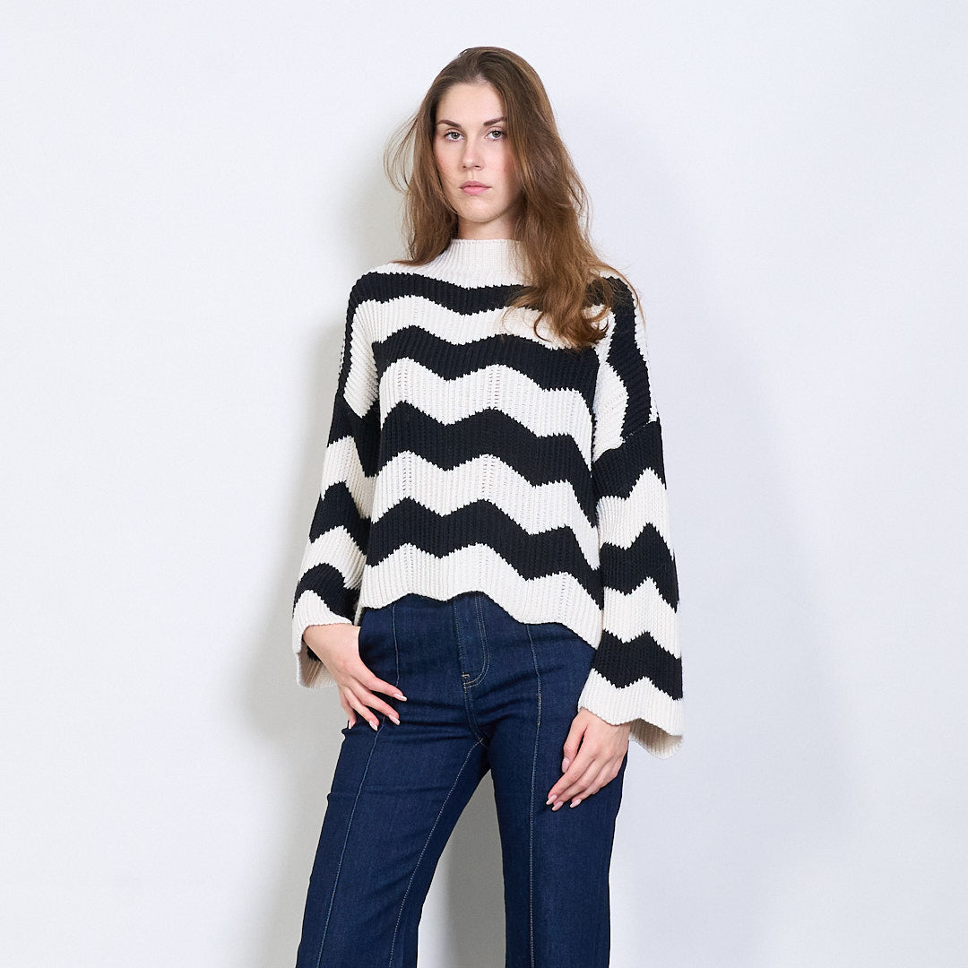 Viļņota svītra rievota adīta pulovera džempera vairumtirdzniecība