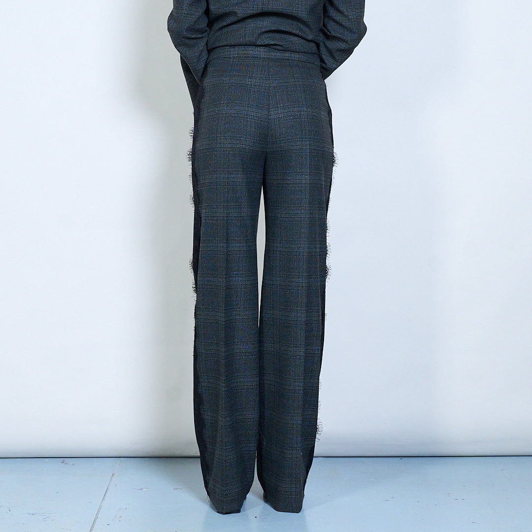 Rūtainas mežģīņu paneļu pielāgotas taisnas bikses vairumtirdzniecība