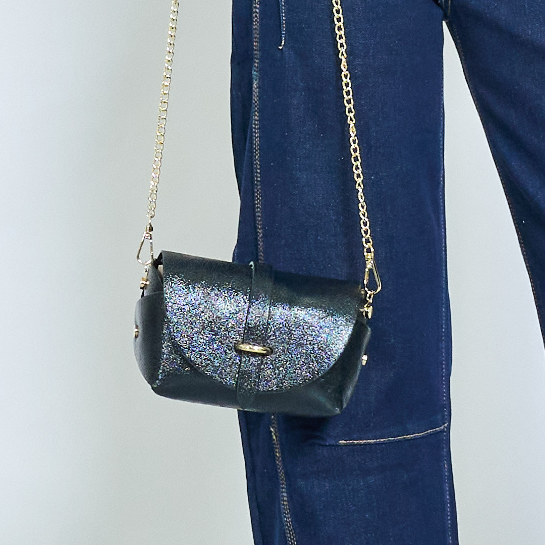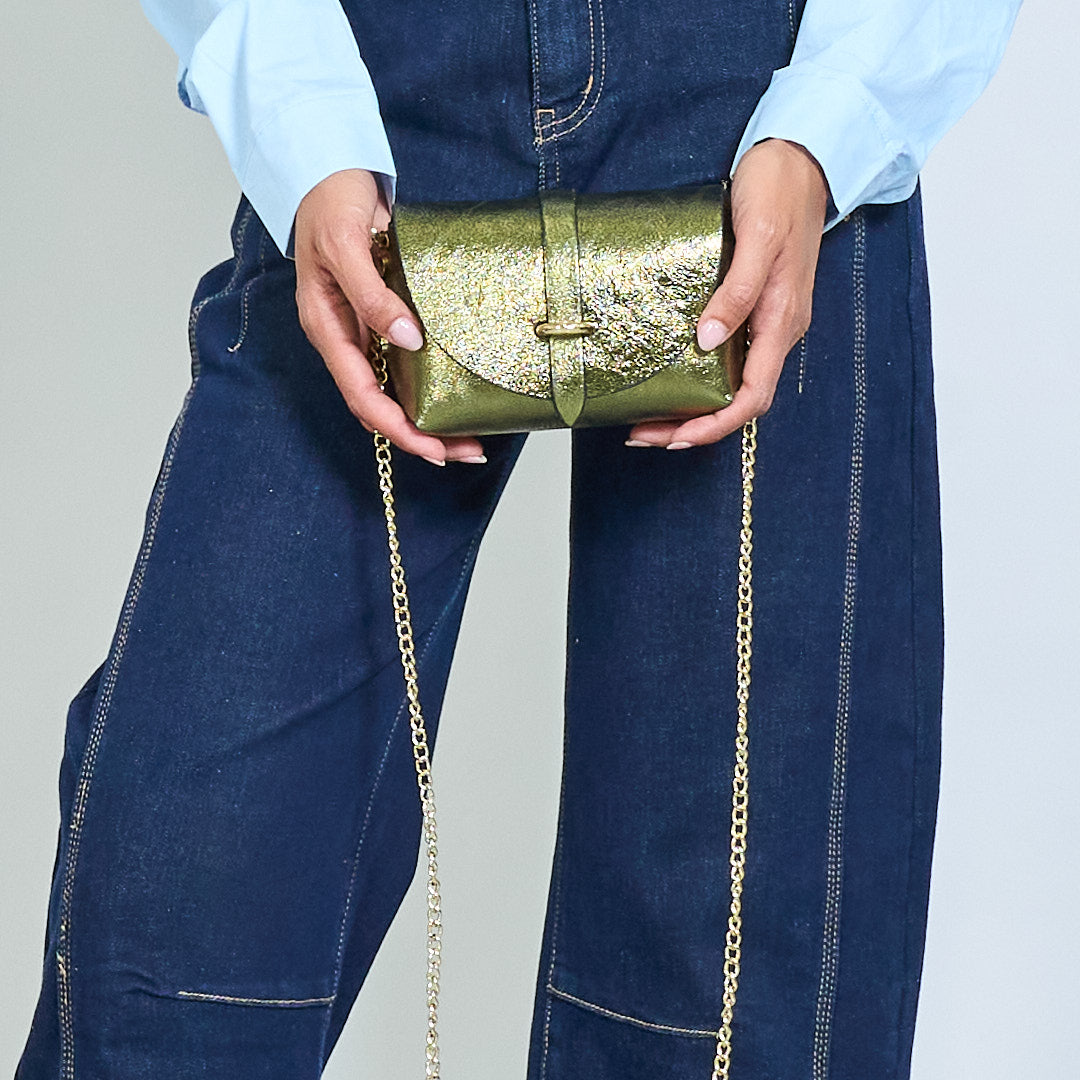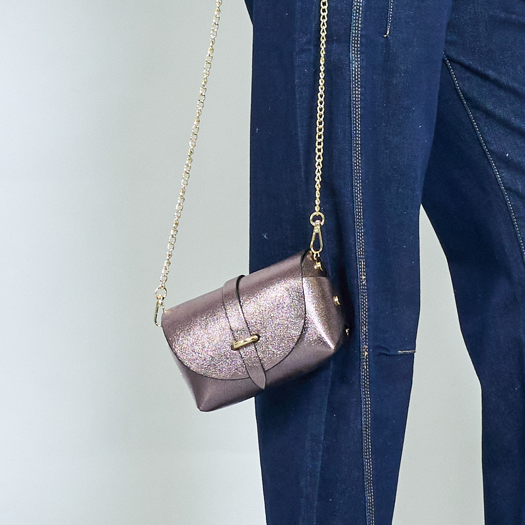 Mini metāliska dzirksteles atloka maiss ar zelta ķēdes vairumtirdzniecību