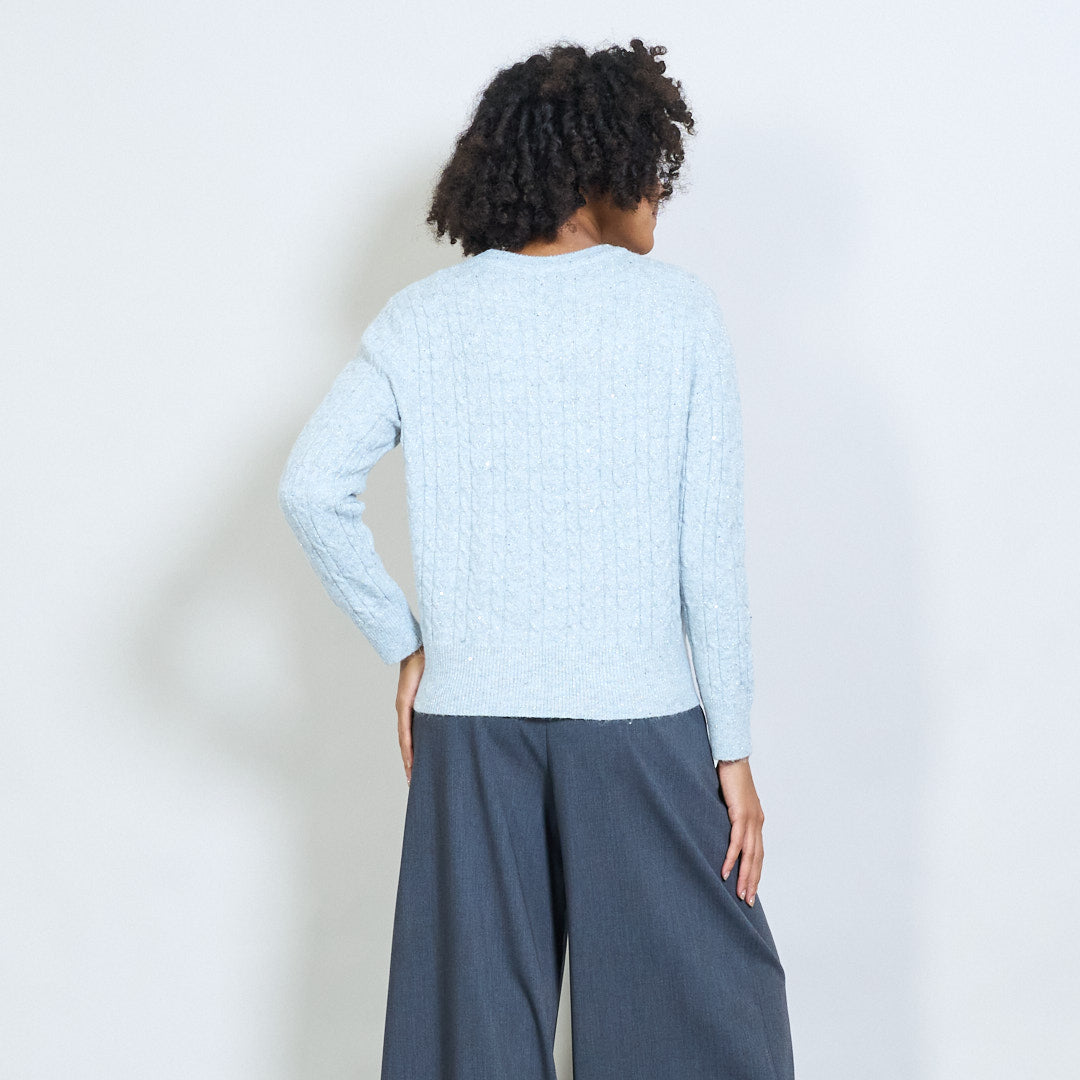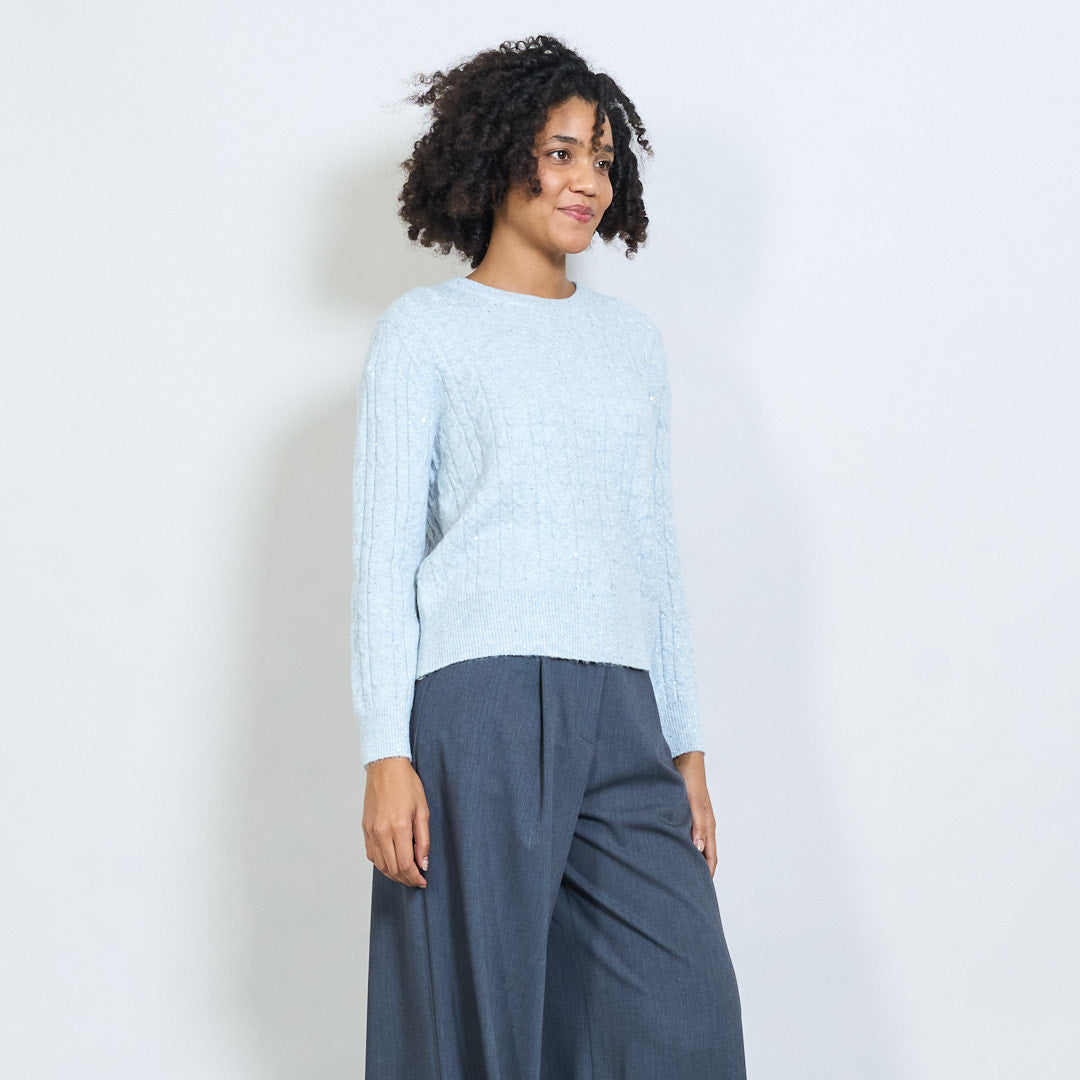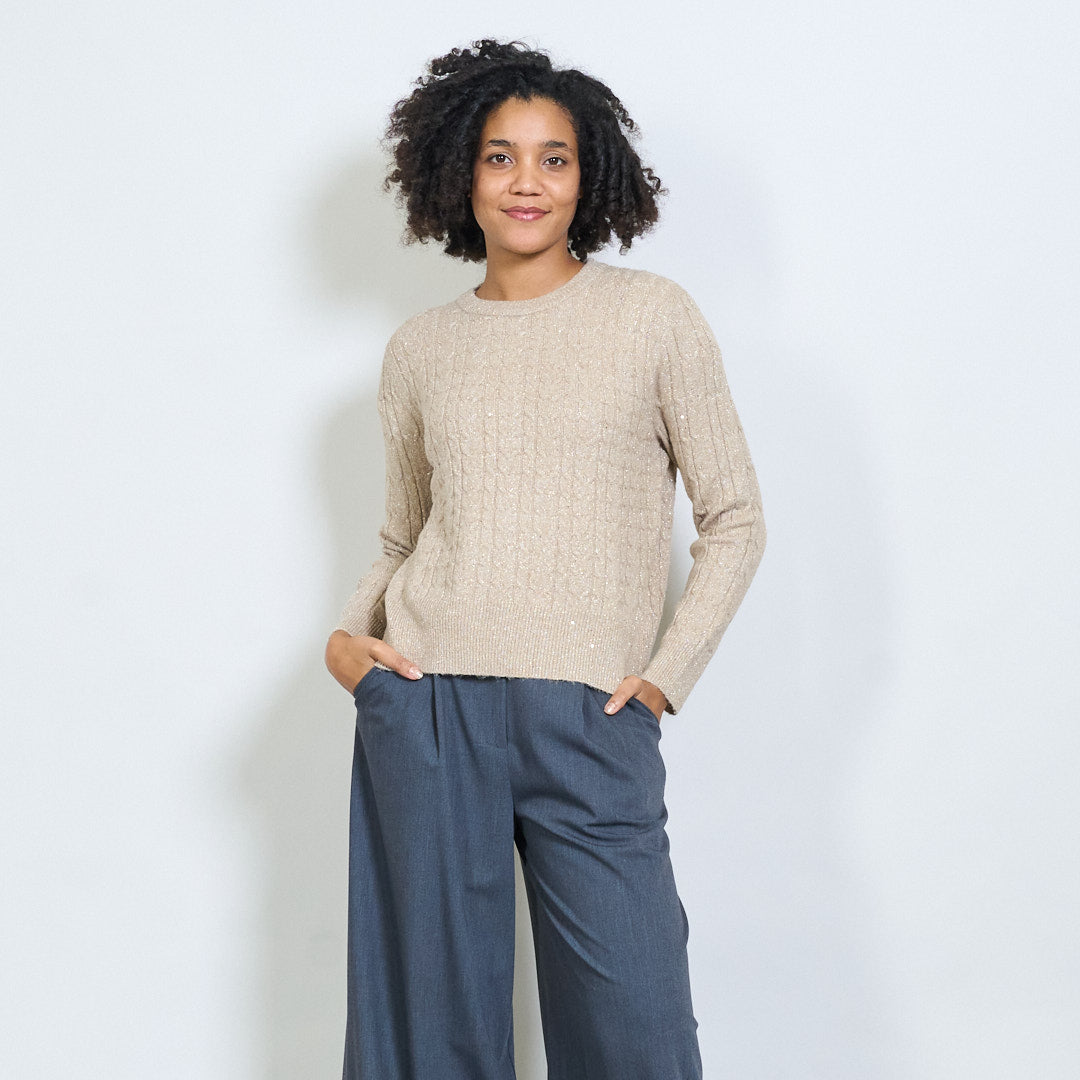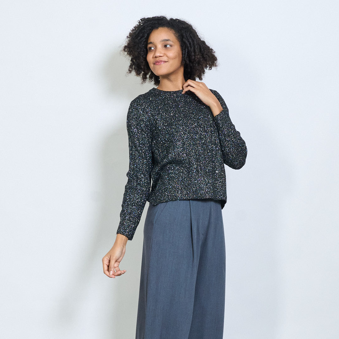 - Šiks adīts džemperis, kas austs ar mirdzošiem lurex diegiem