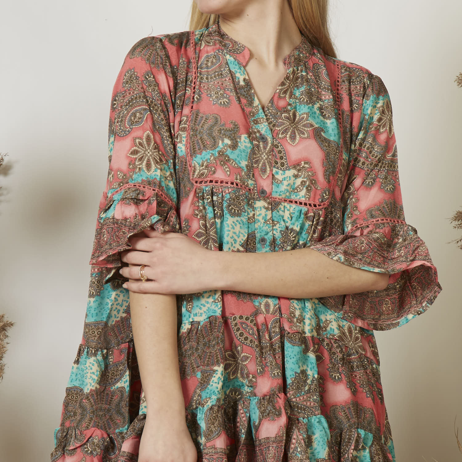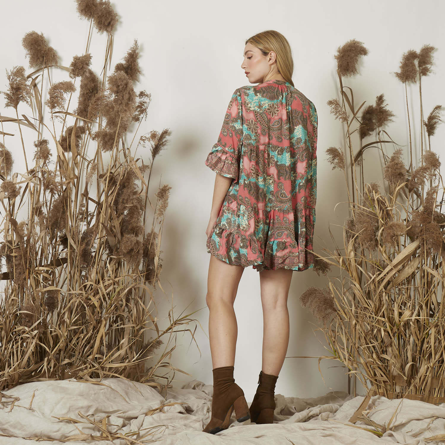 Vairumtirdzniecības statīva apkakles ruffle Hem īsās kleitas ar ziedu drukāšanu