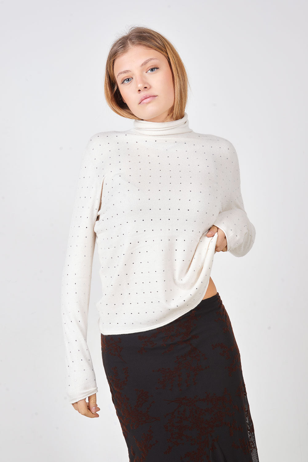 Adīts džemperis ar radzēm ar augstu kakla apkakli, vairumtirdzniecība