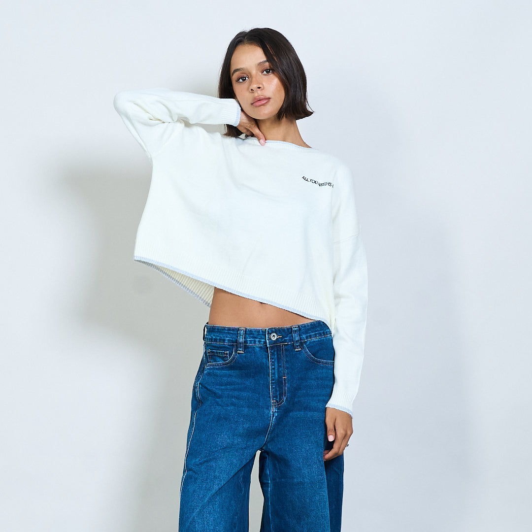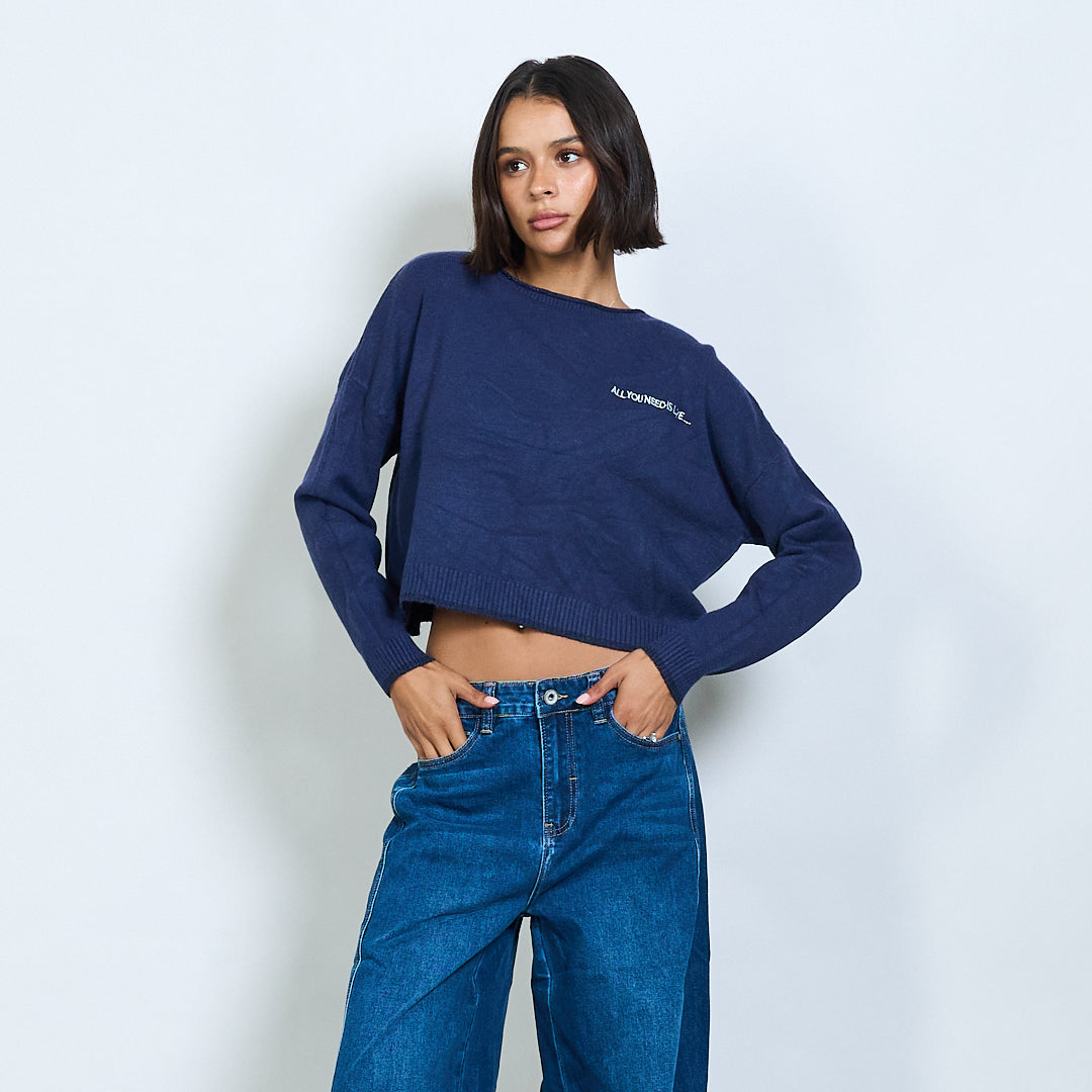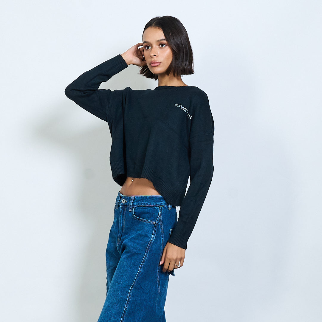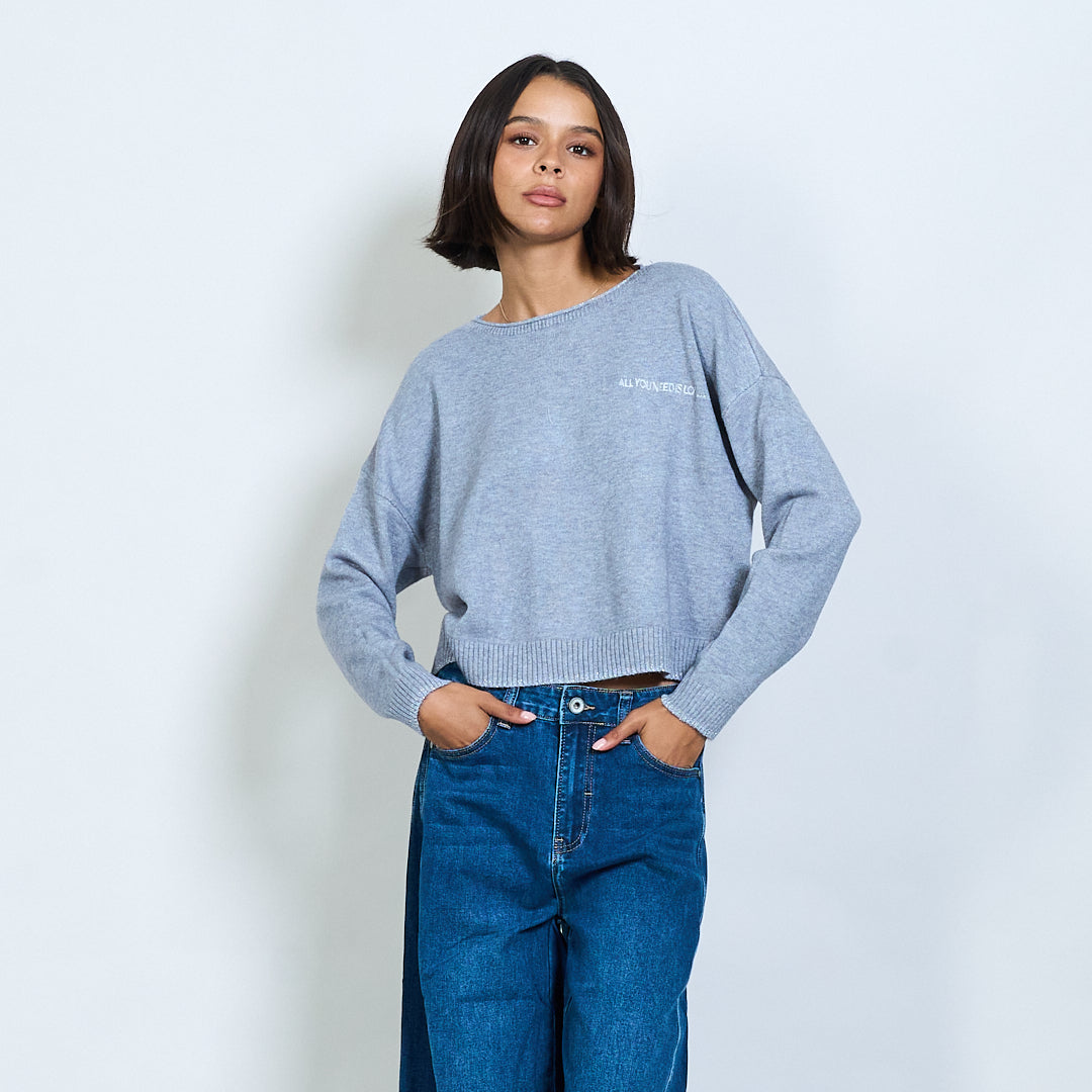 Apgriezts adīts džemperis ar teksta izšuvumu "Viss, kas jums nepieciešams, ir Love" vairumtirdzniecība