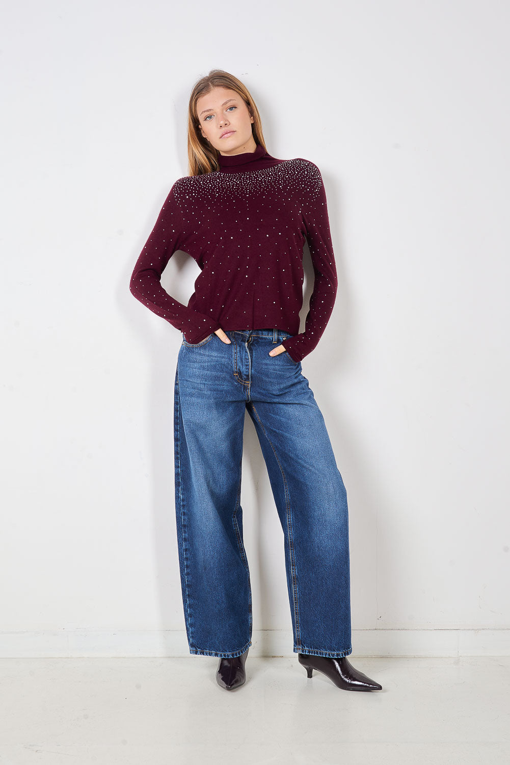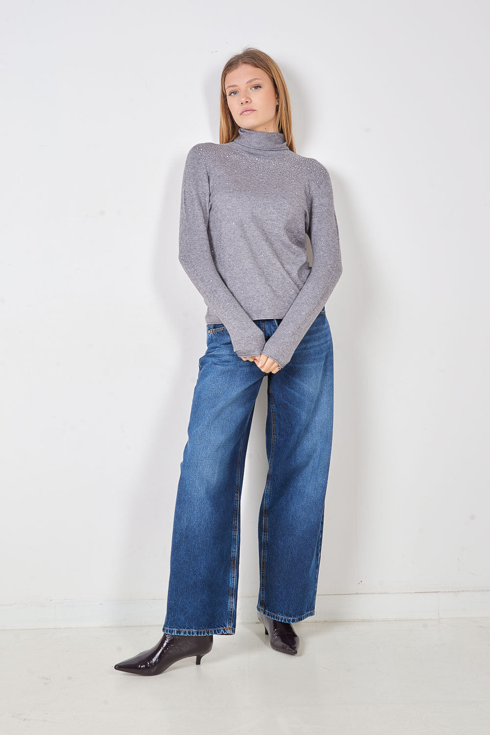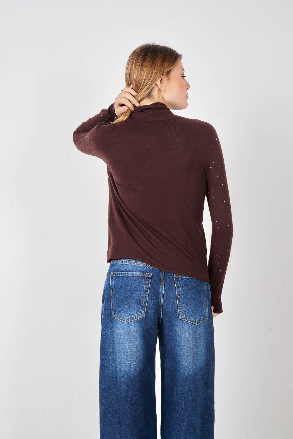 Mikro kniedes izrotātas ar augstu kakla aprīkotu trikotāžas tops vairumtirdzniecība