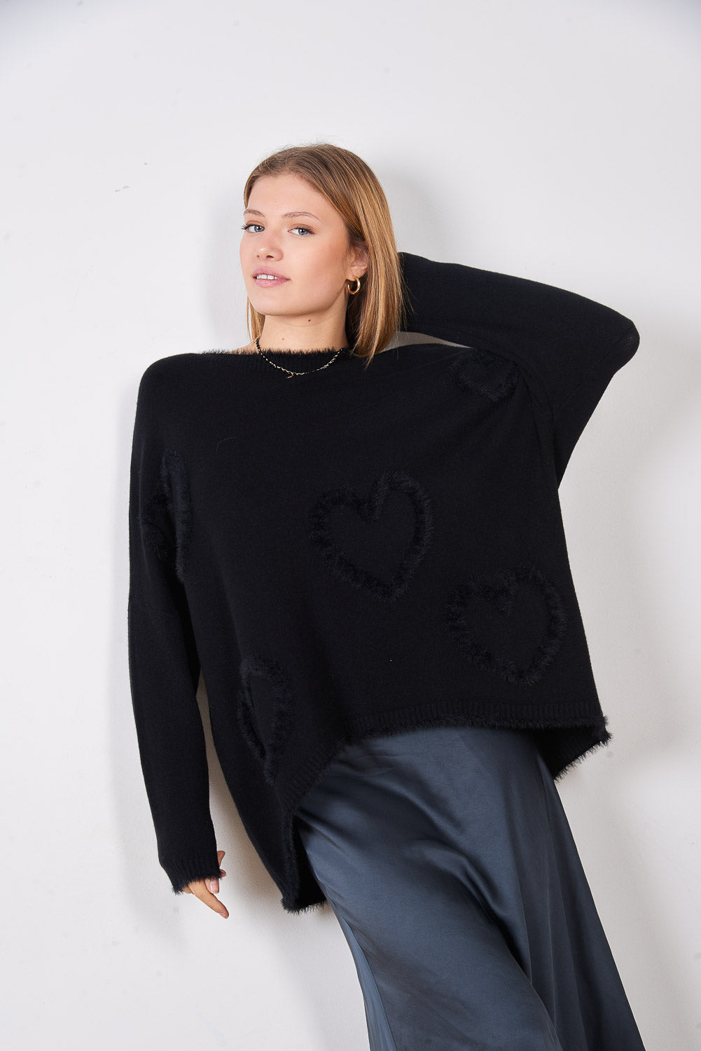 • Trikotāžas džemperis ar izrotājumiem visā priekšpusē un piedurknēs