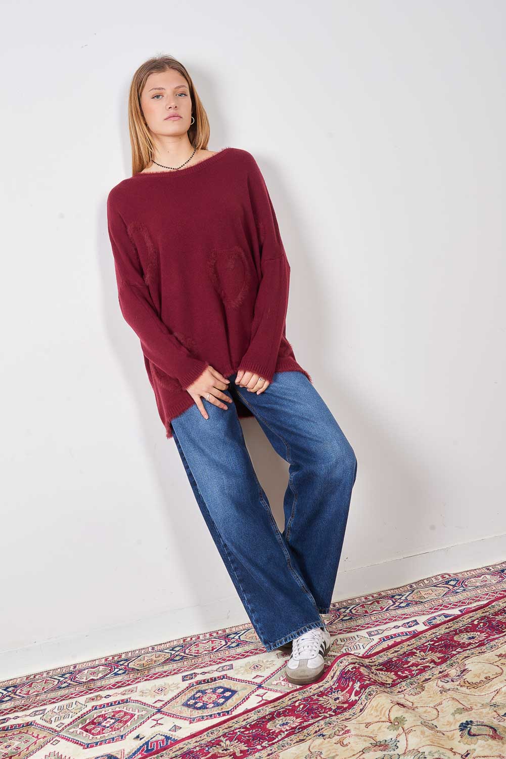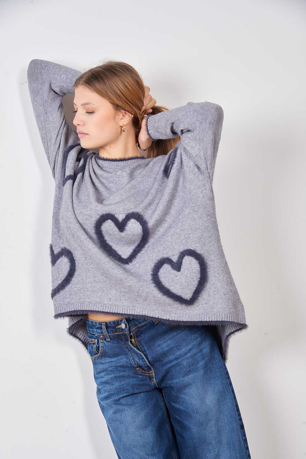 Sirds motīva grafikas lielizmēra adīts džemperis vairumtirdzniecība