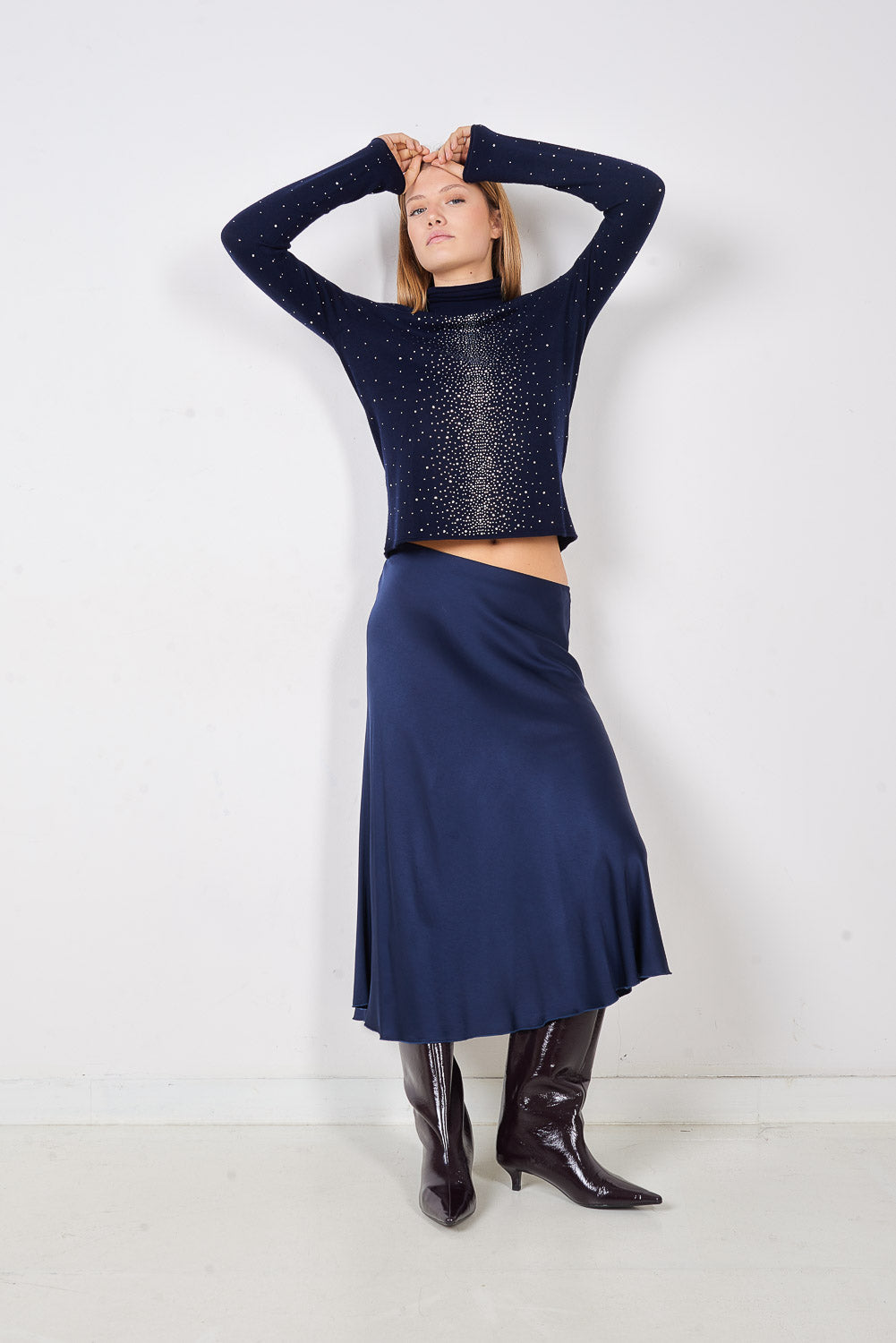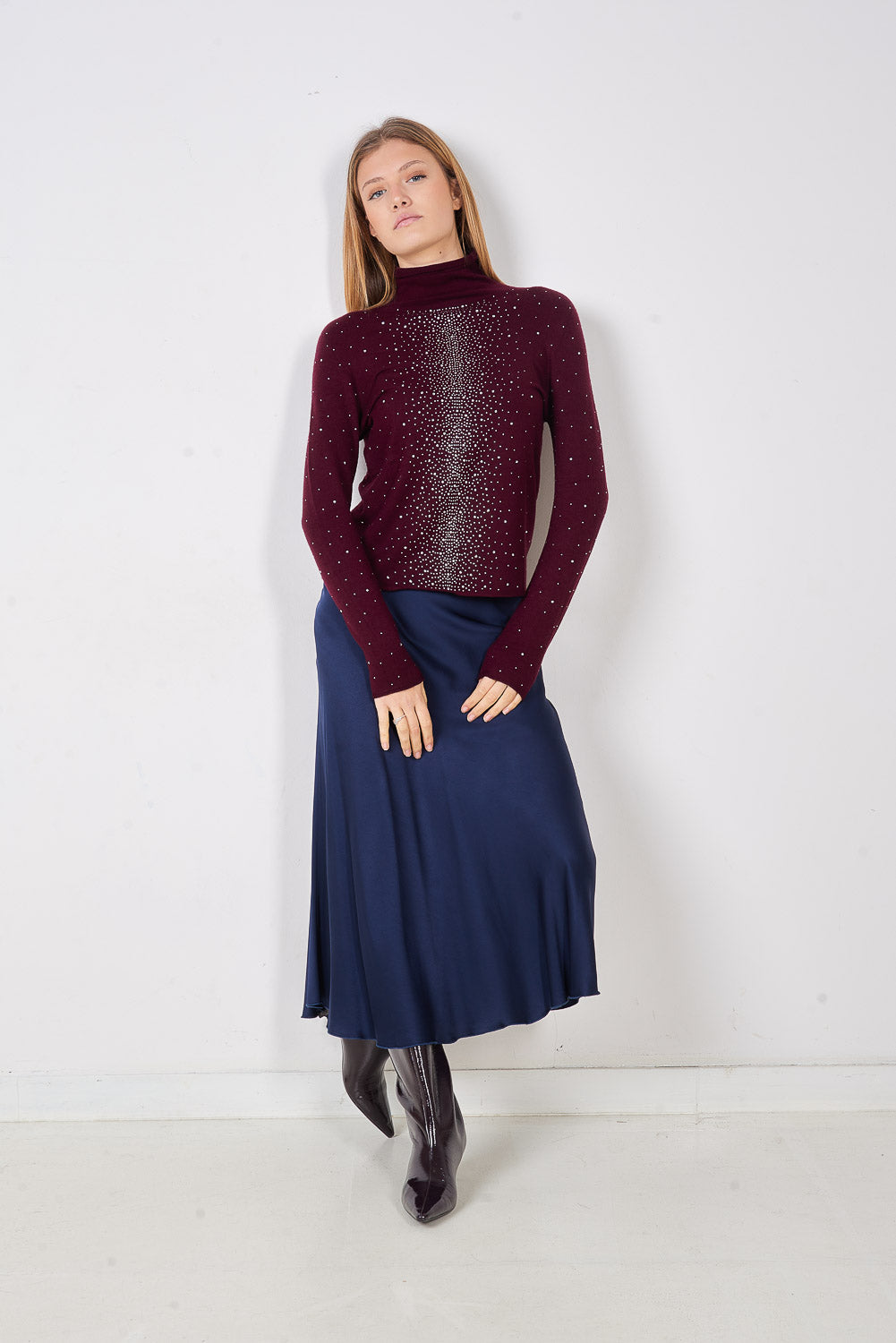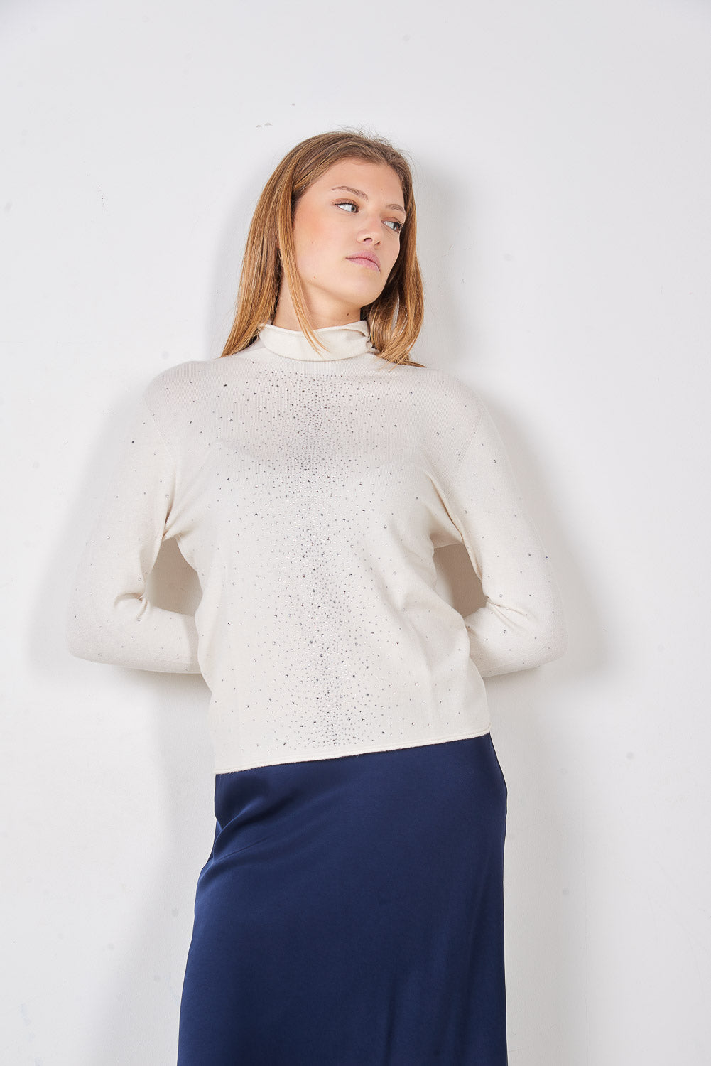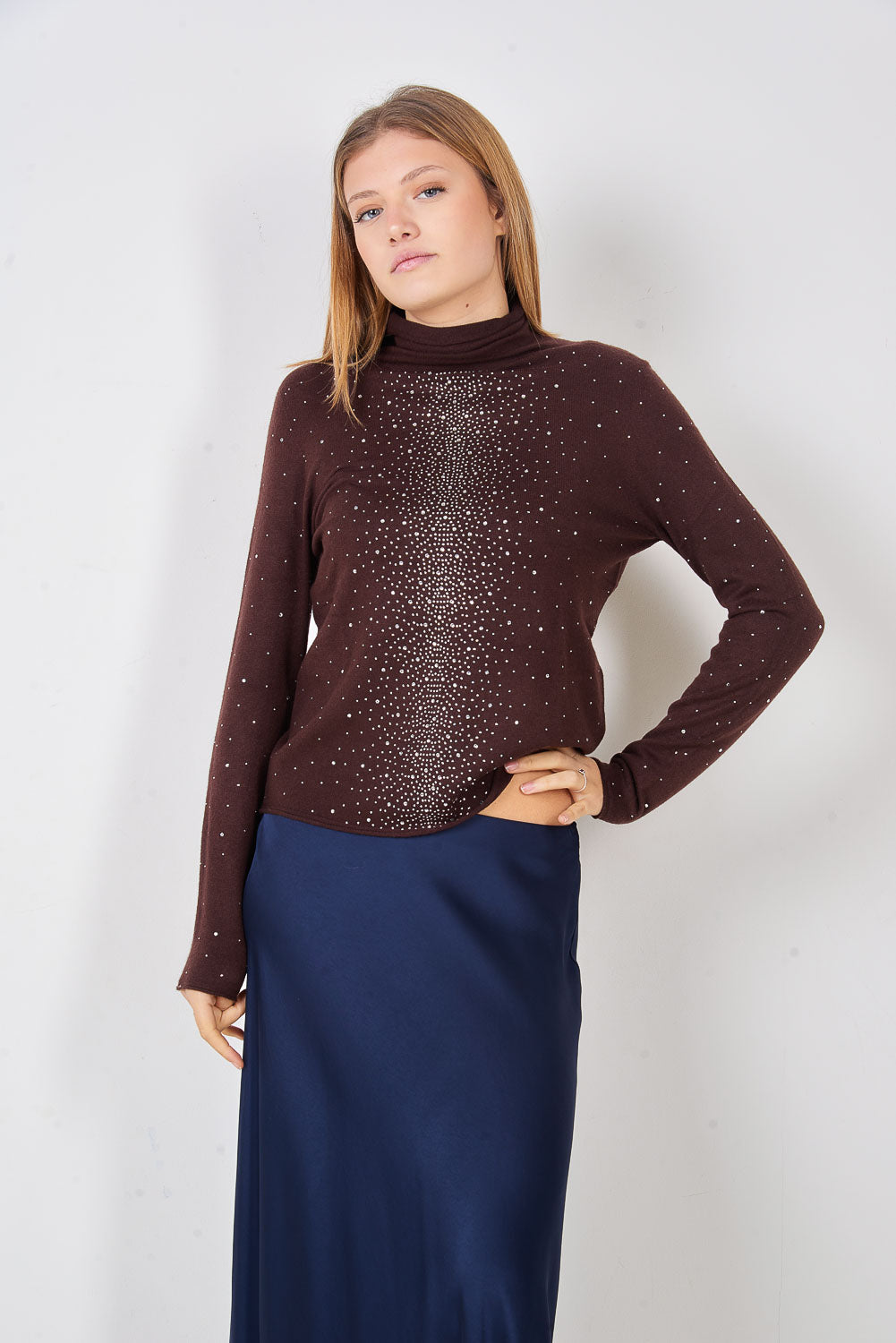 - Pieguļošs trikotāžas džemperis ar viscaur mikro stud rakstu