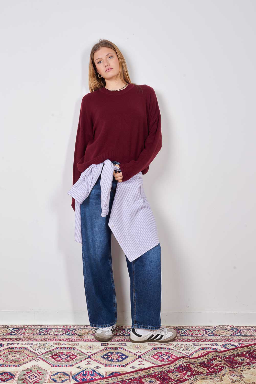 - Adīts džemperis, kas veidots ar relaksētu un ērtu siluetu
