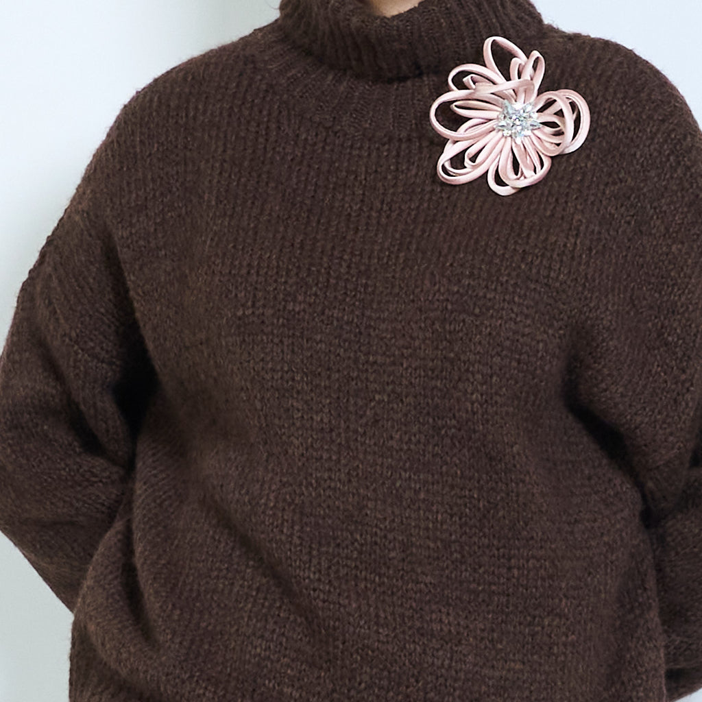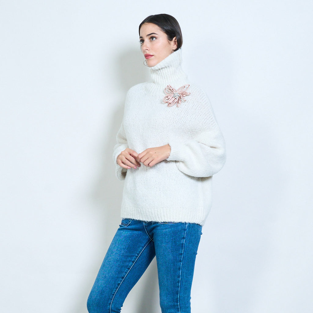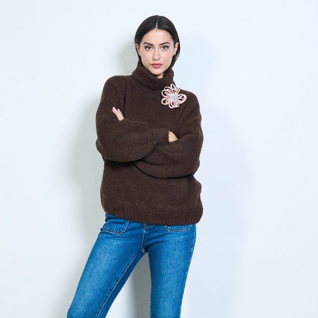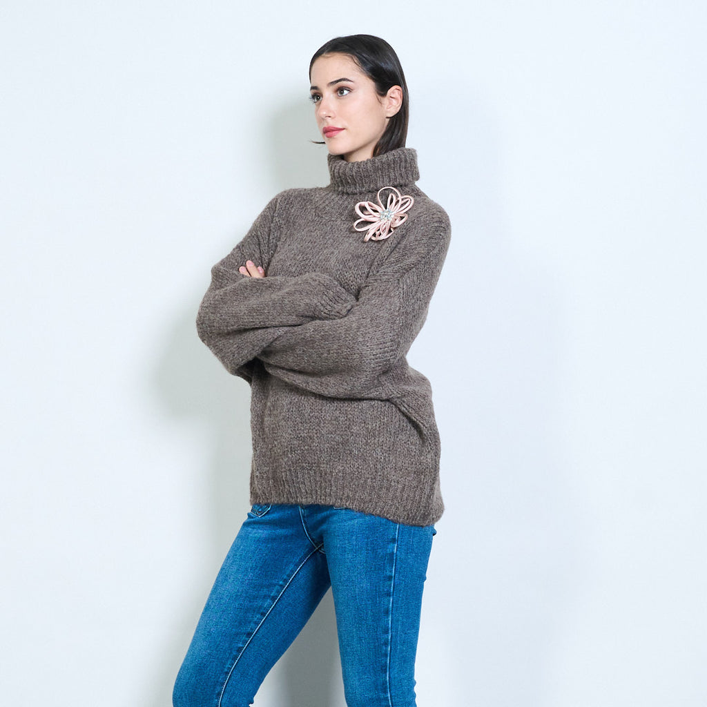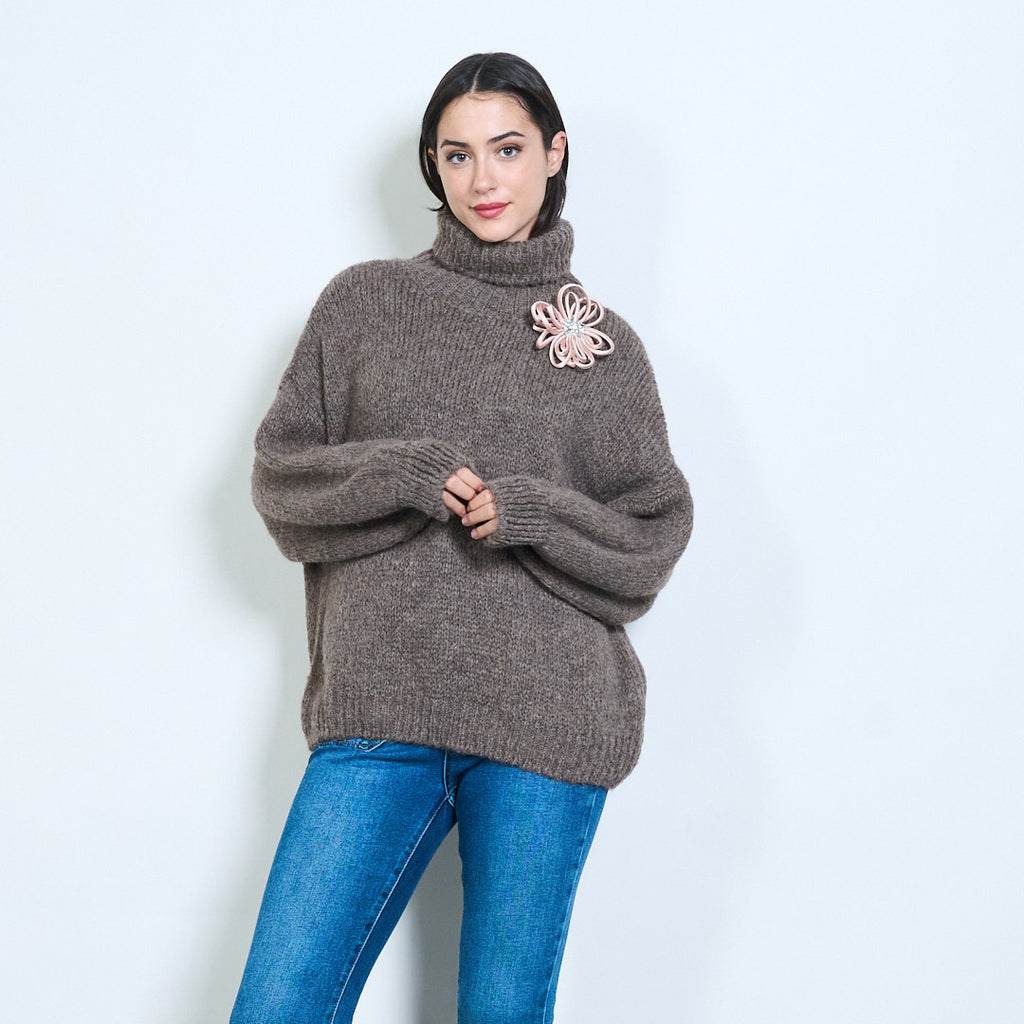 Ziedu saktas detaļas ar augstu kaklu lielizmēra džemperis vairumtirdzniecība