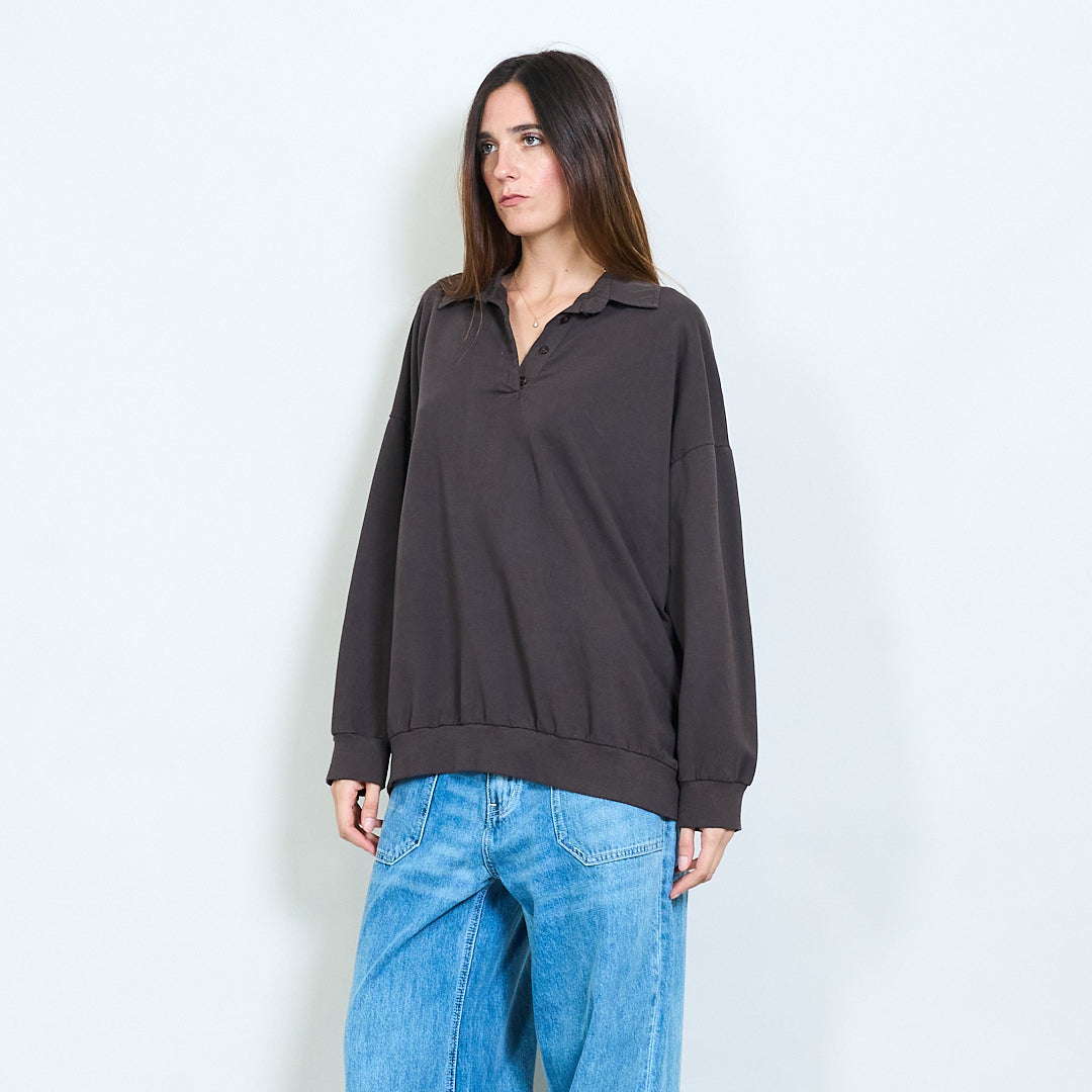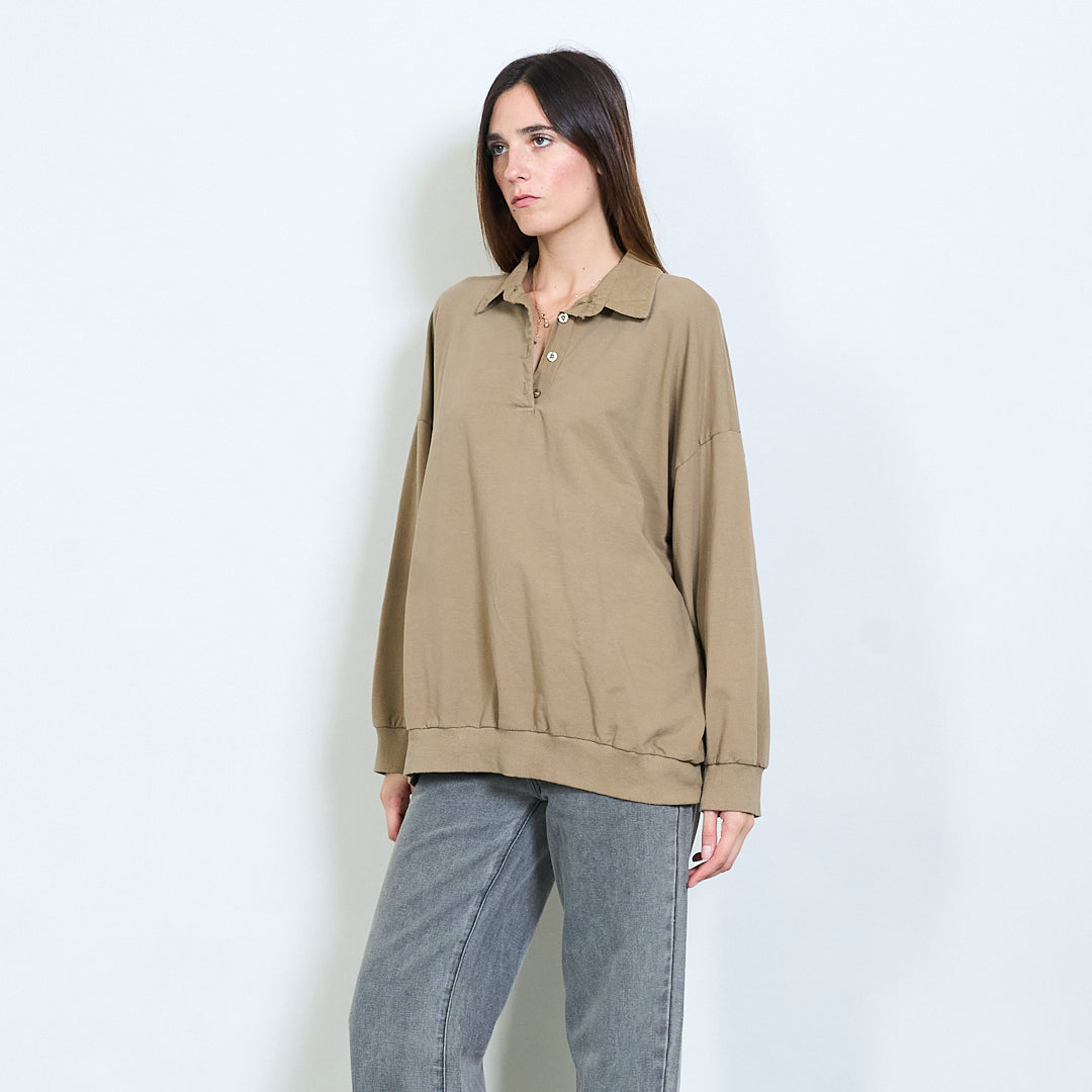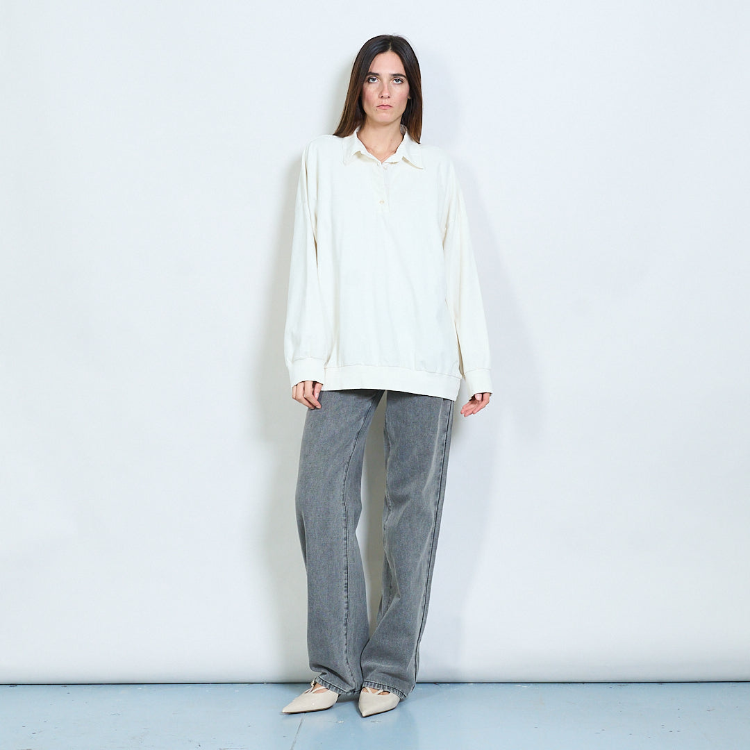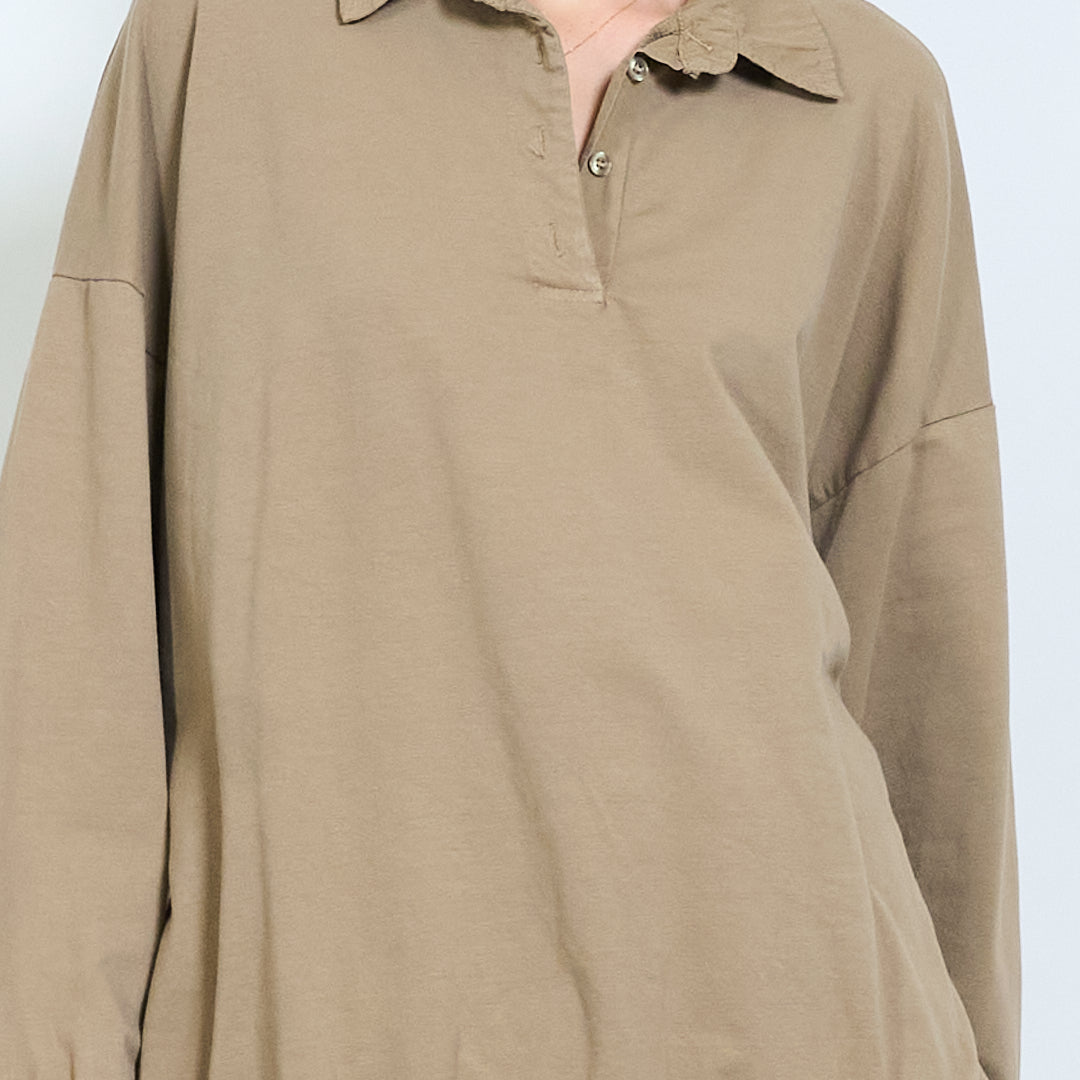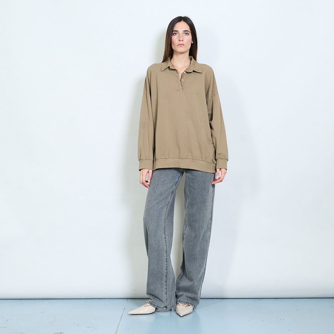 Loose Fit polo apkakle ar garām piedurknēm lielizmēra kreklu vairumtirdzniecība
