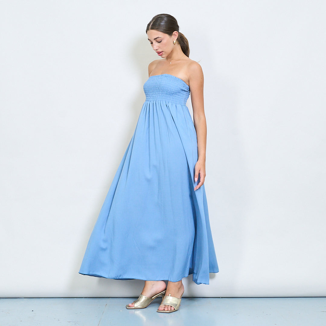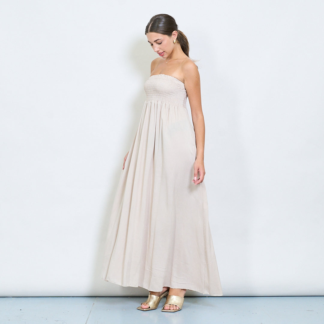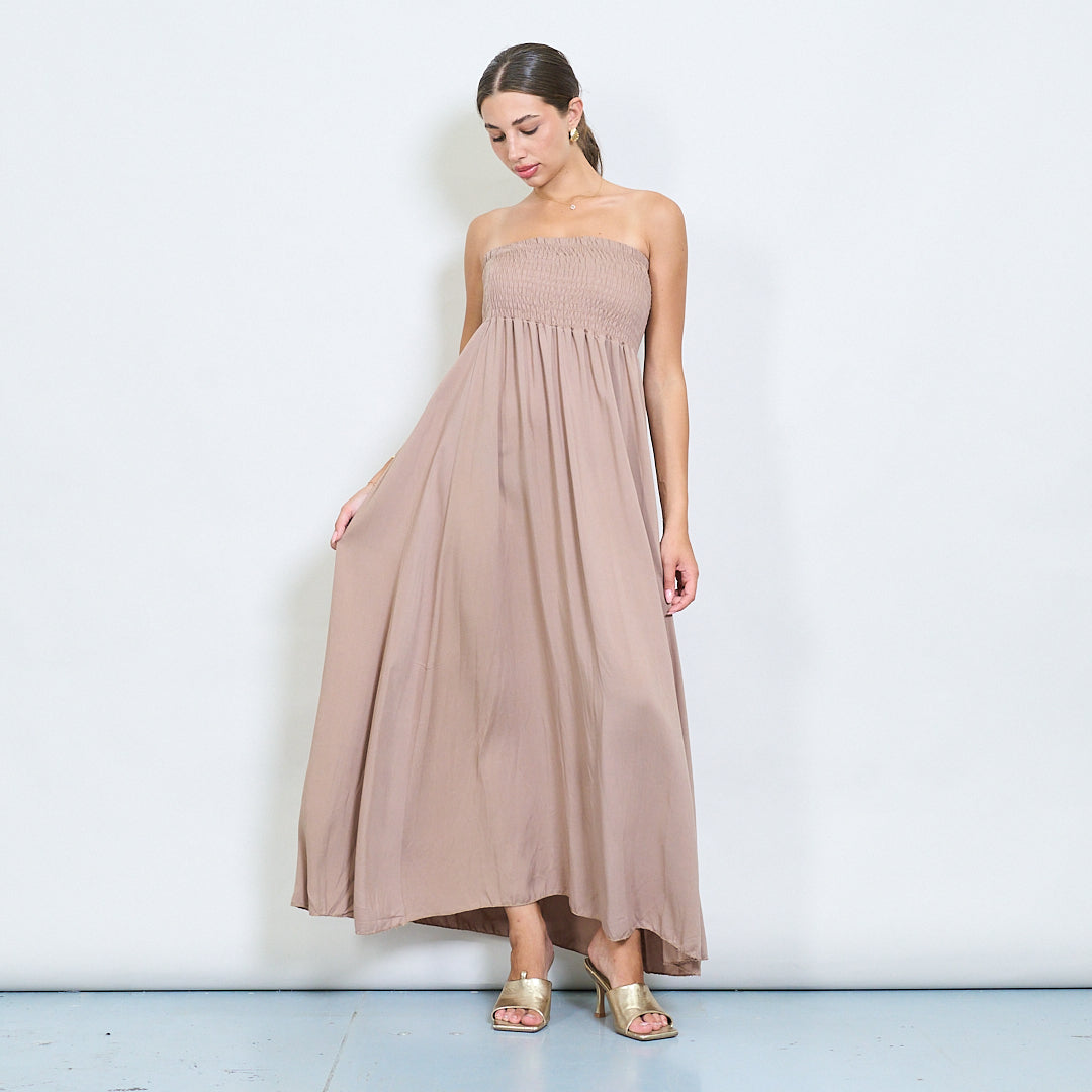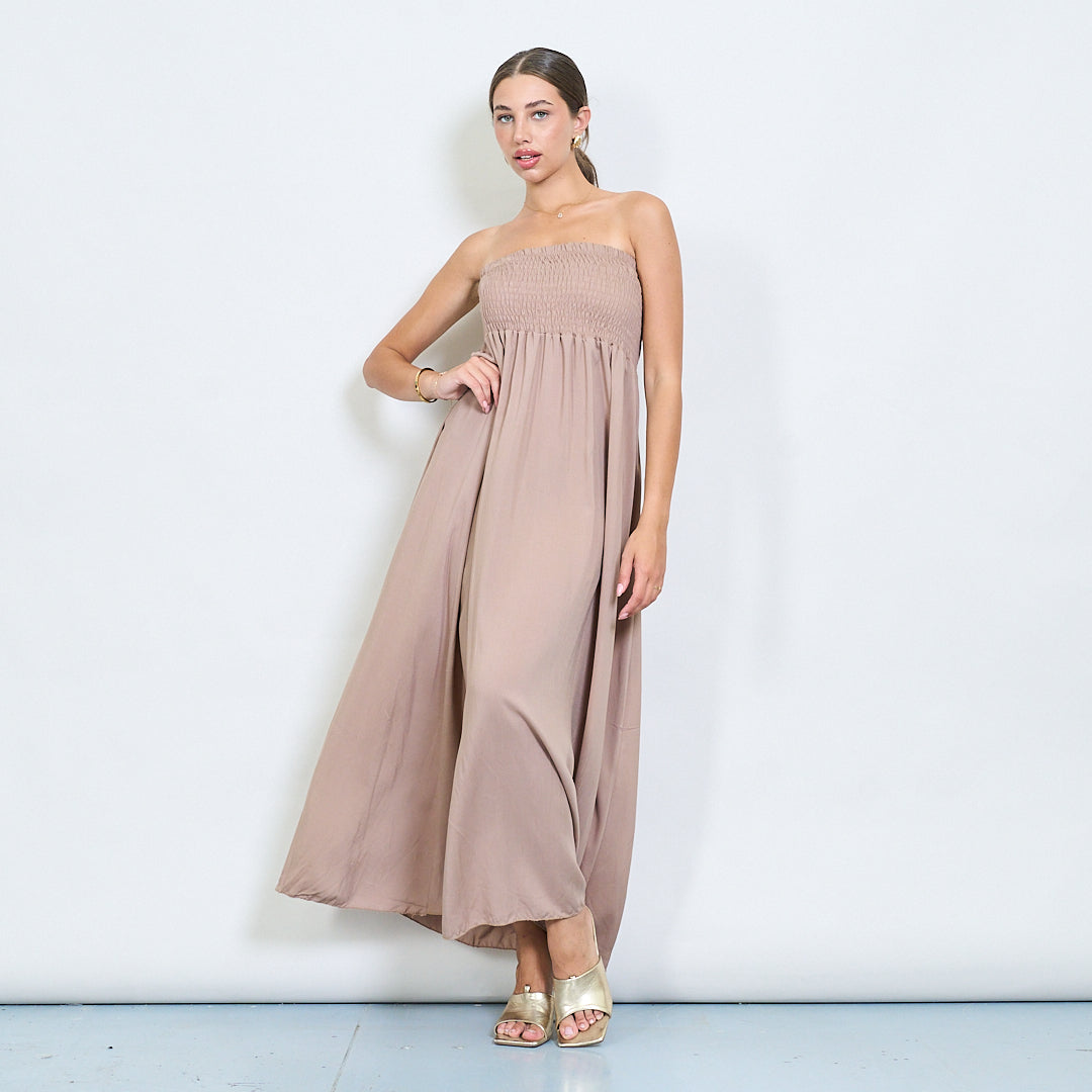 - Plūstošs maxi garuma dizains ar mīkstu, elegantu drapējumu