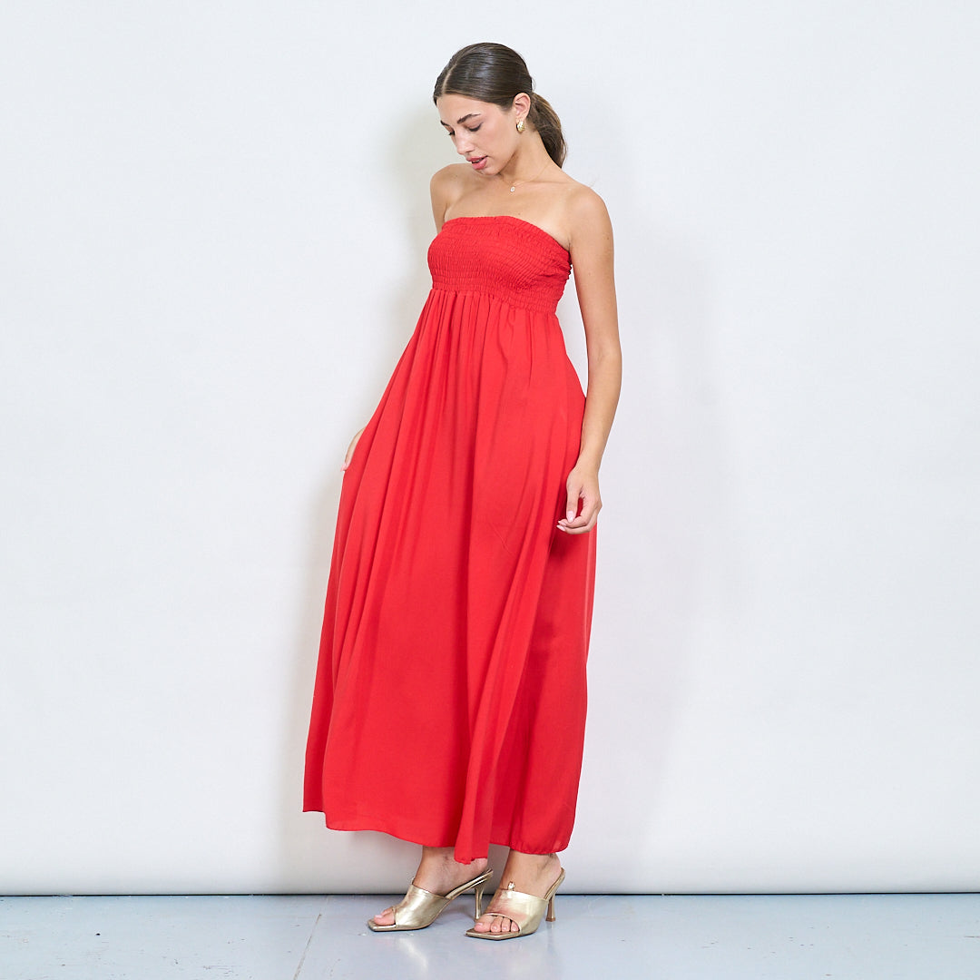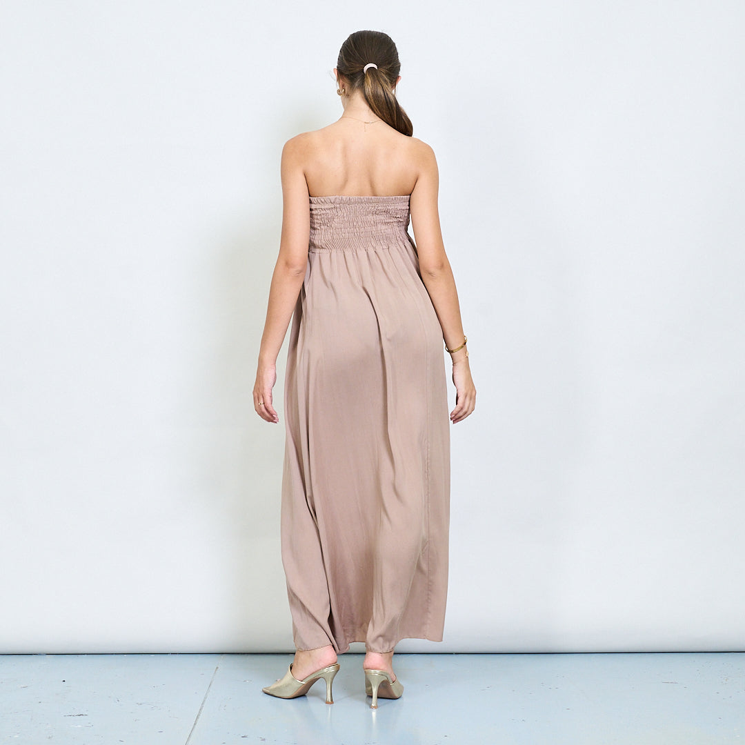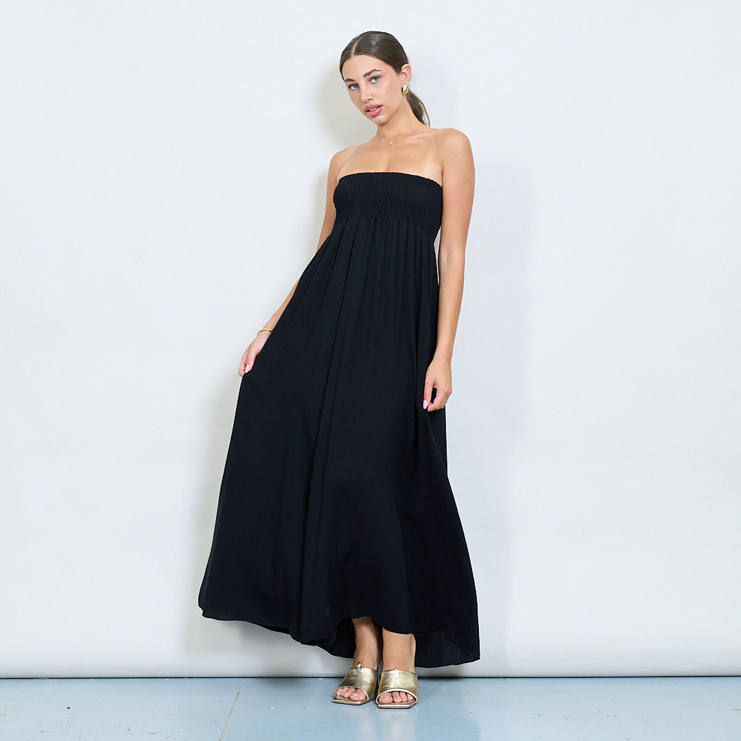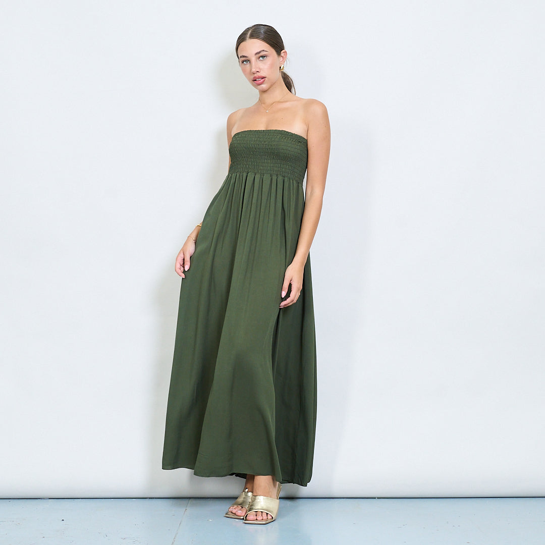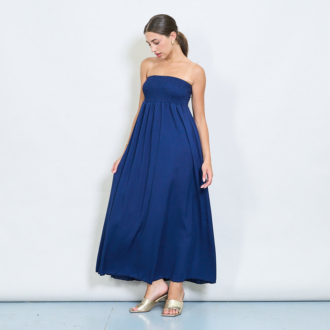 - Plūstošs maxi garuma dizains ar mīkstu, elegantu drapējumu