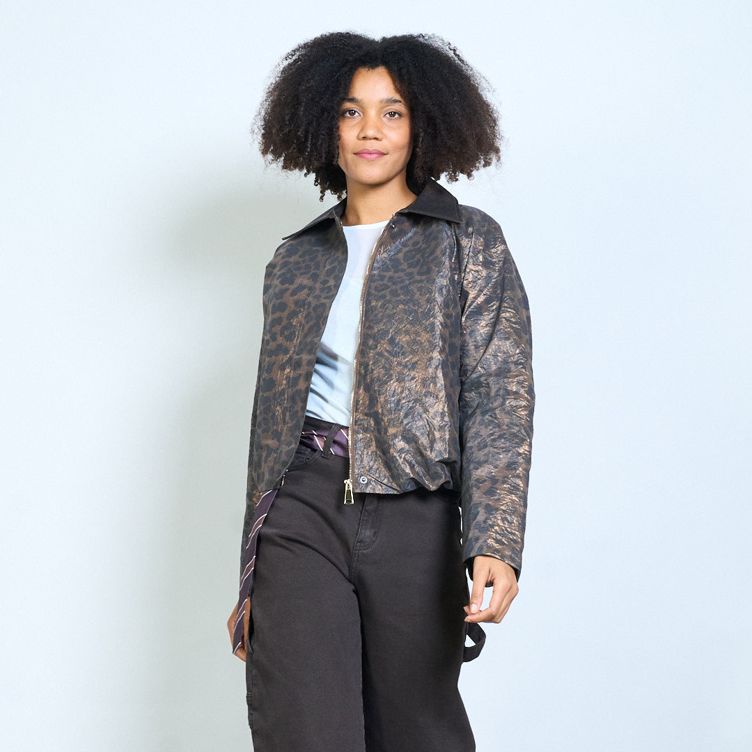 Dzīvnieku apdruka apgriezta jaka ar strukturētu apkakli vairumtirdzniecība