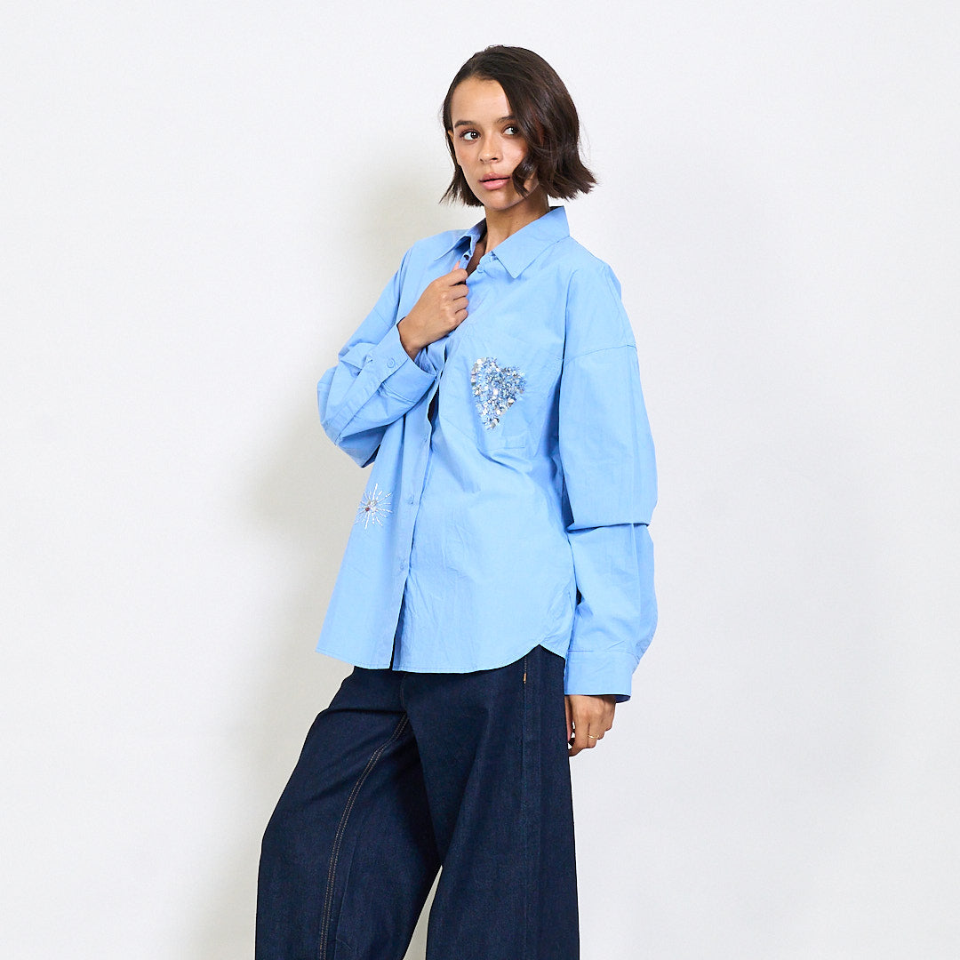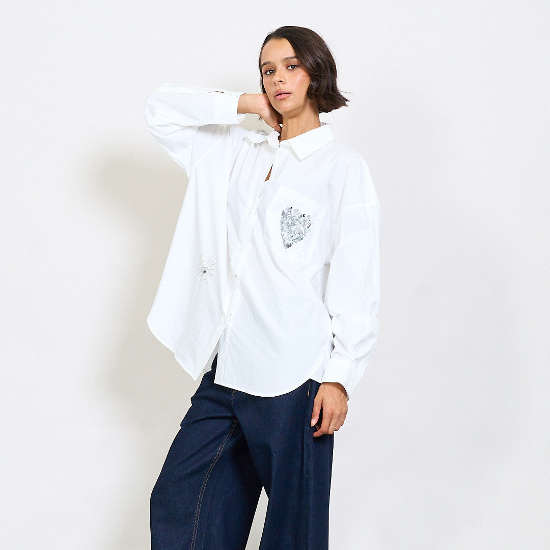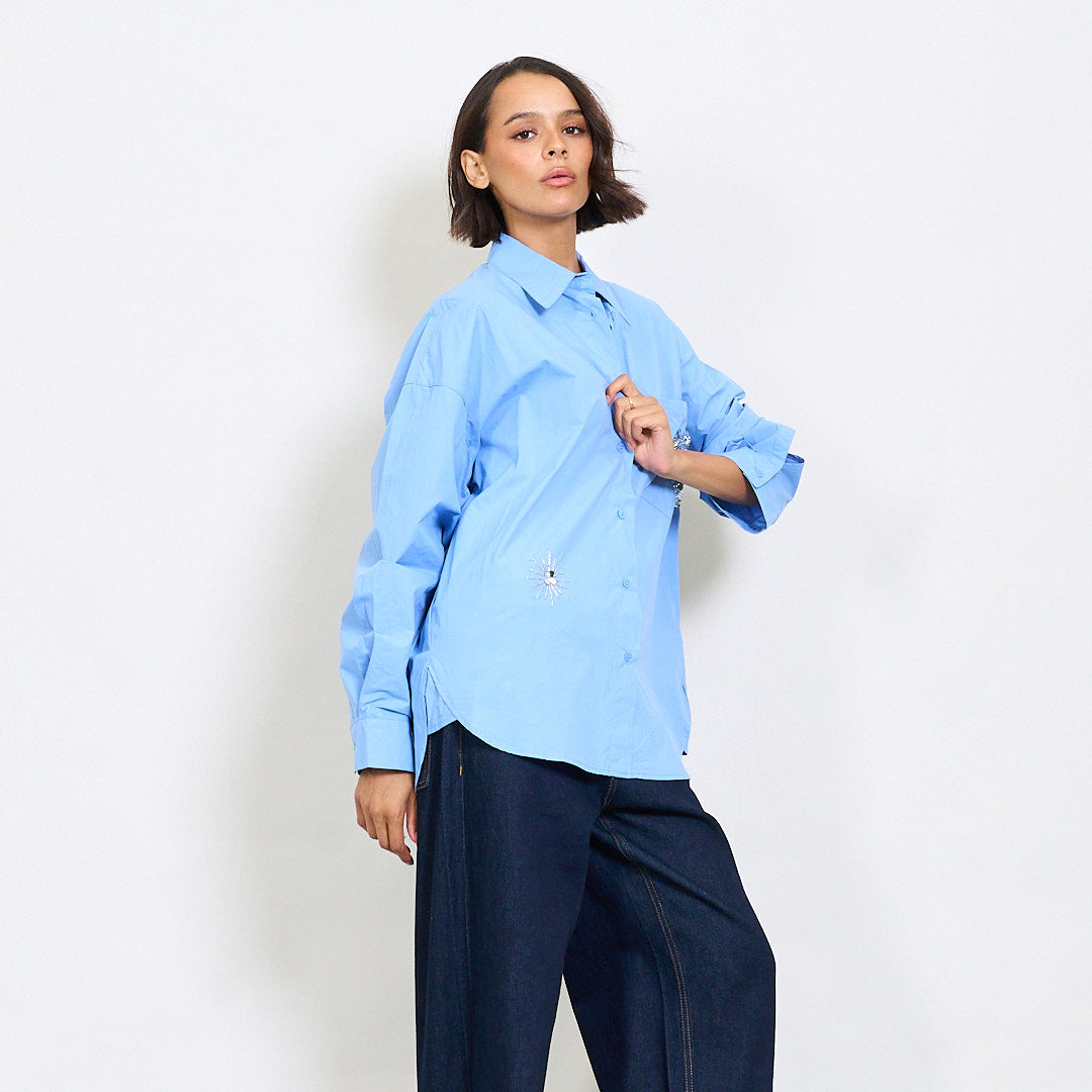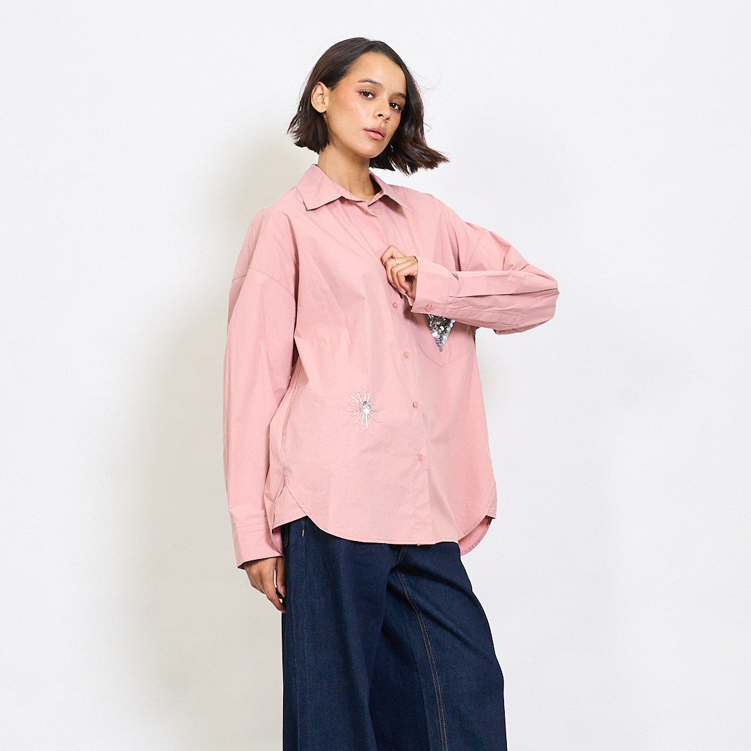 Lielizmēra krekls ar fliteru un lodīšu izrotājumu vairumtirdzniecību