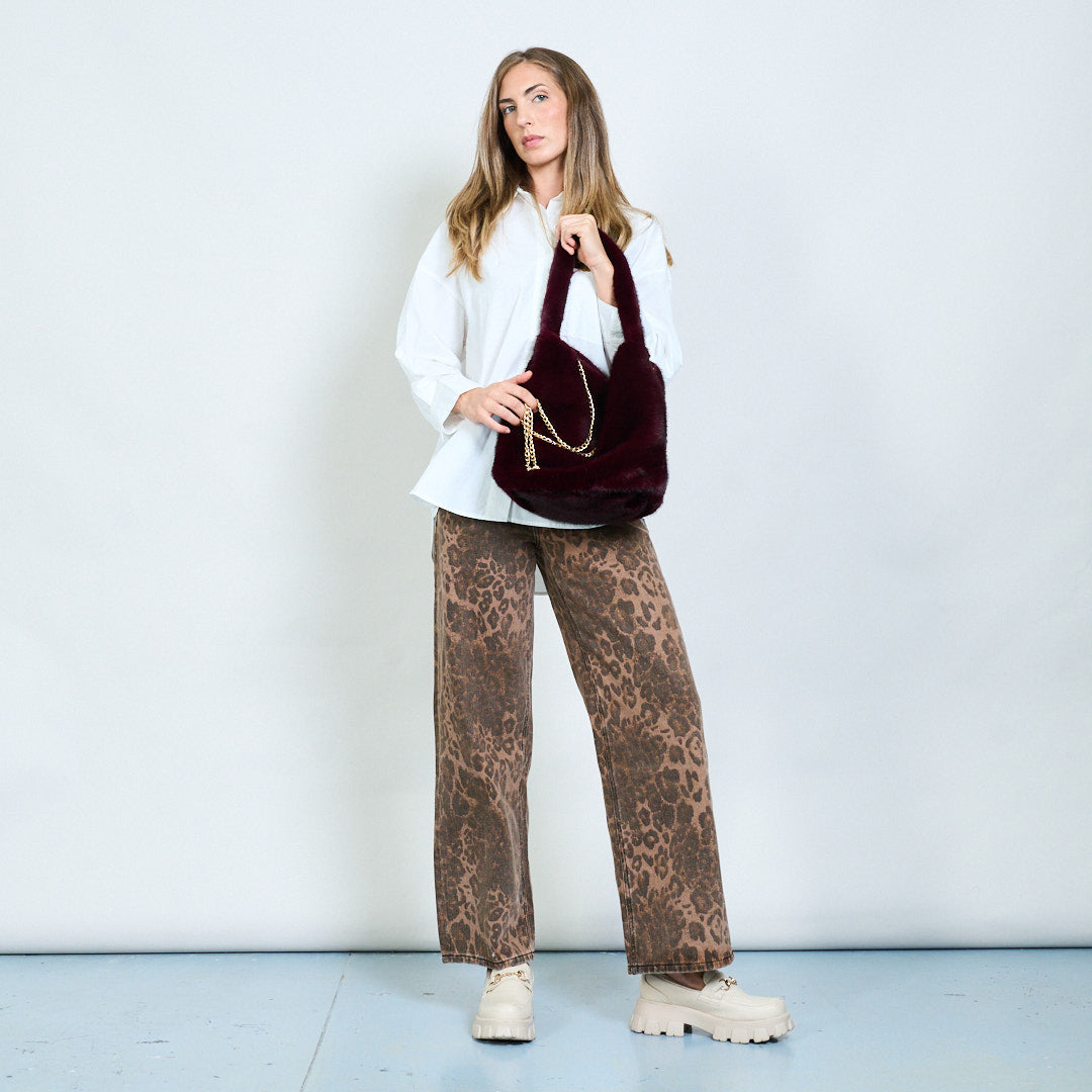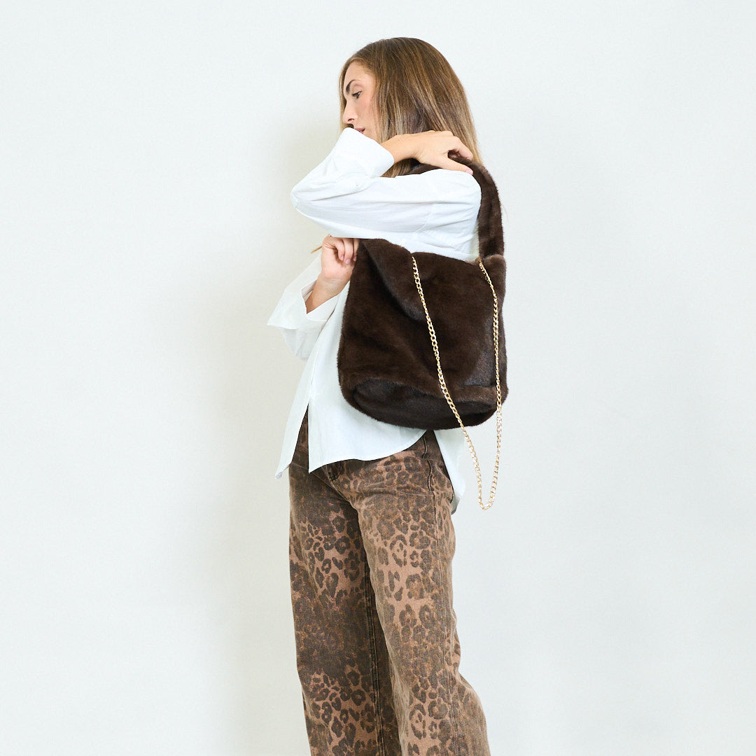 Mīkstā mākslīgā kažokādu bagetes soma ar ķēdes detaļu vairumtirdzniecību