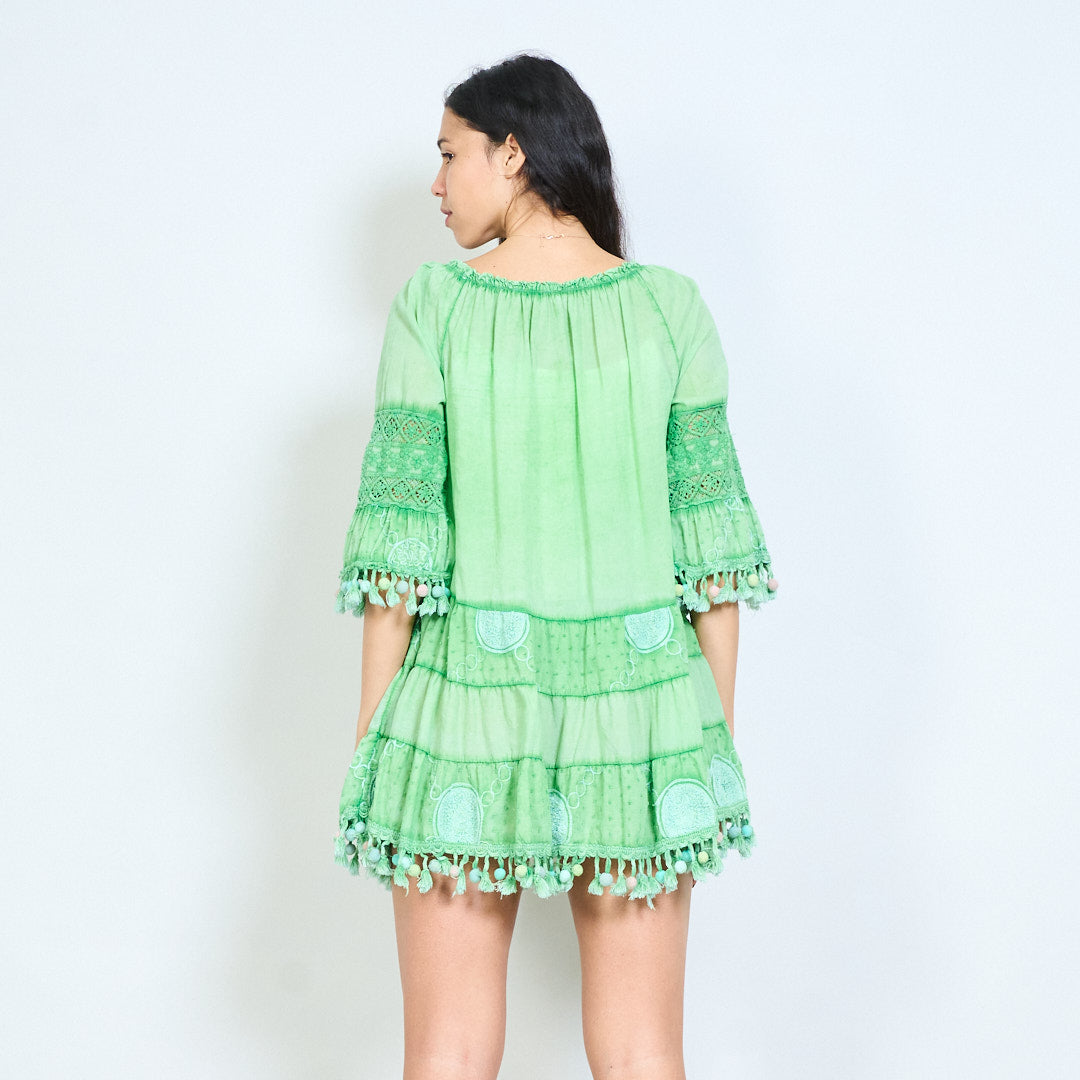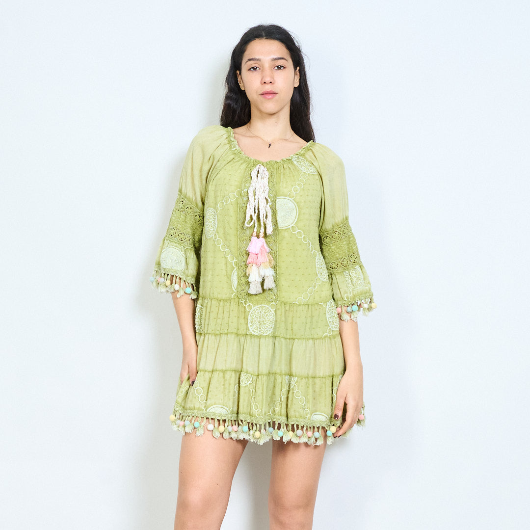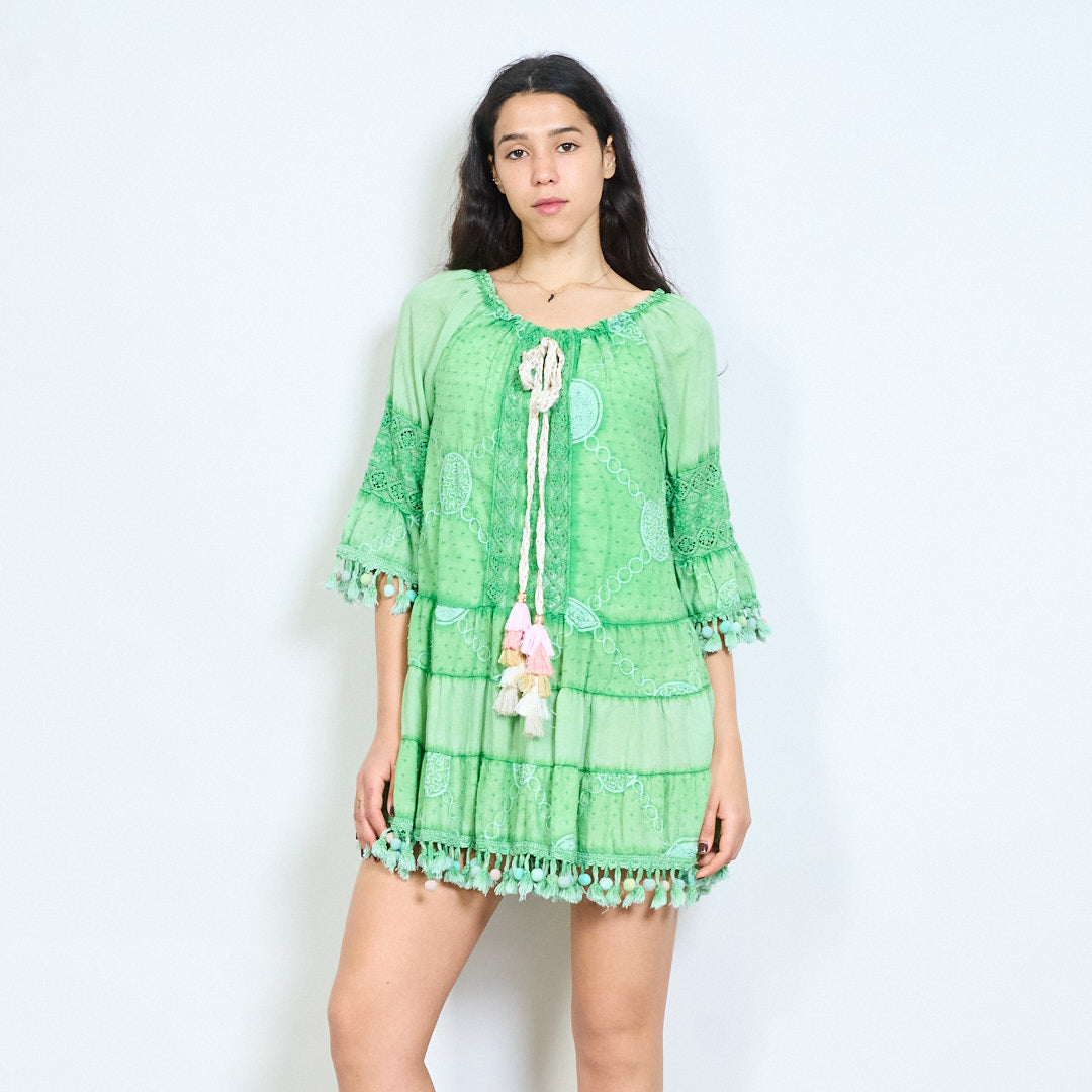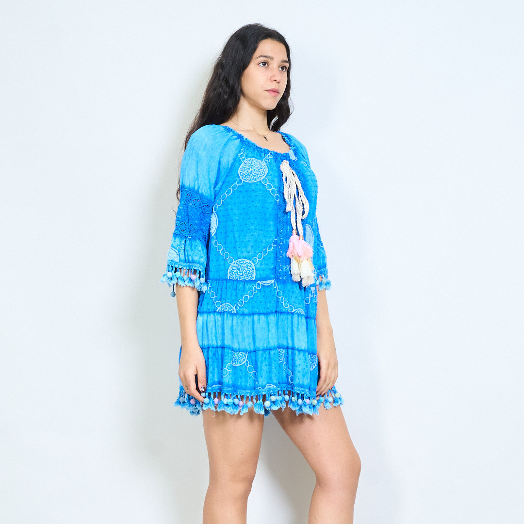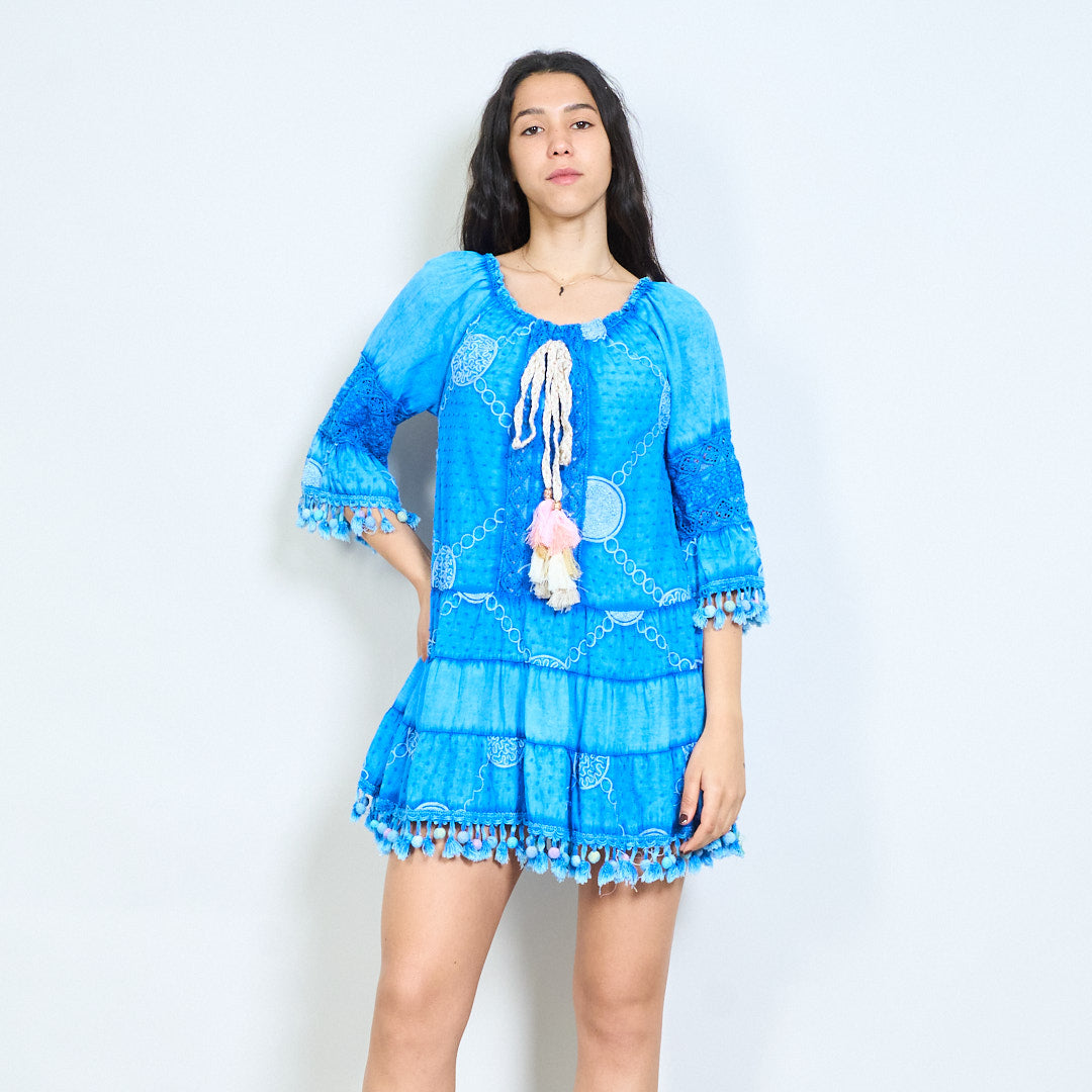 Bohēmiski apdrukāta pušķu līmeņu mini kleita vairumtirdzniecība