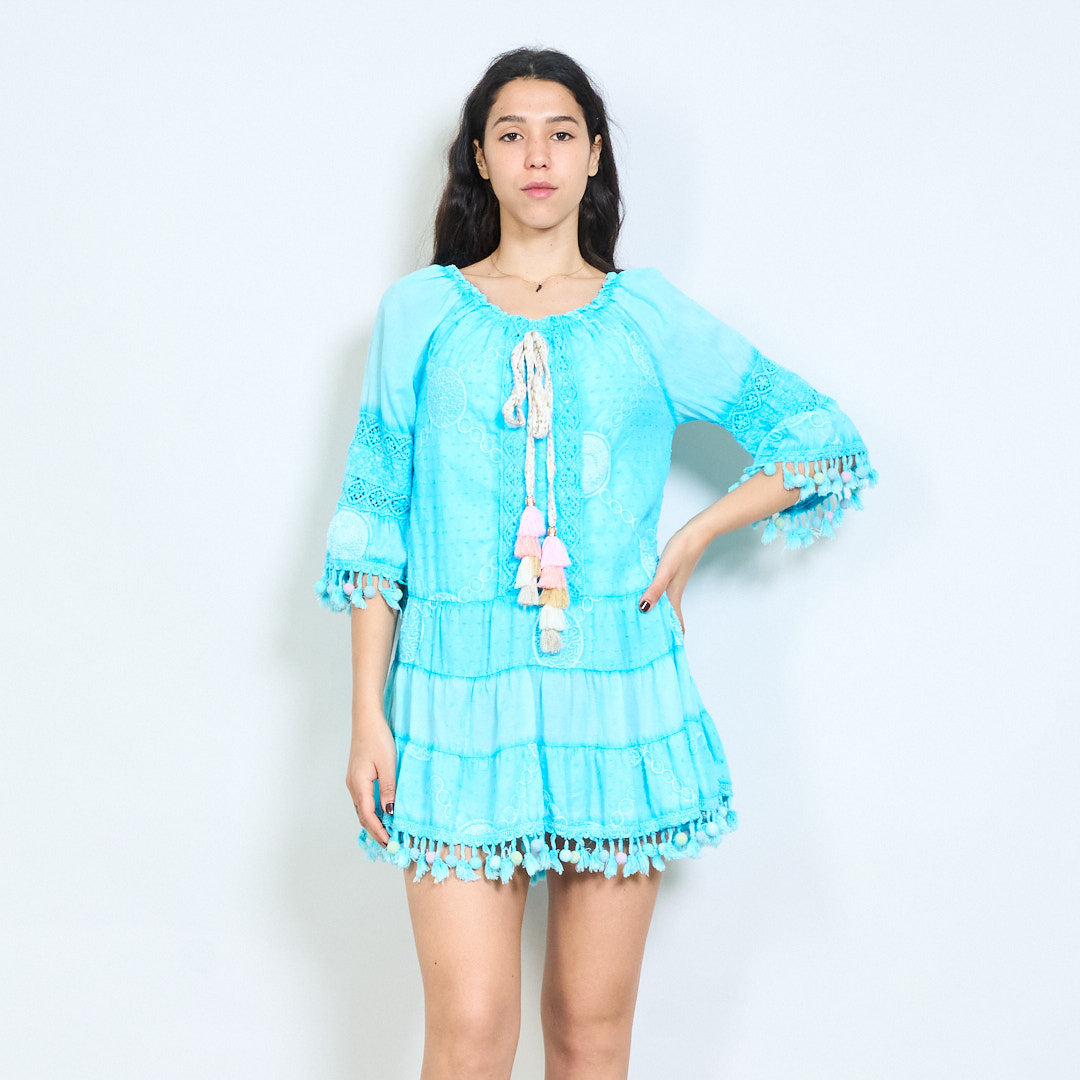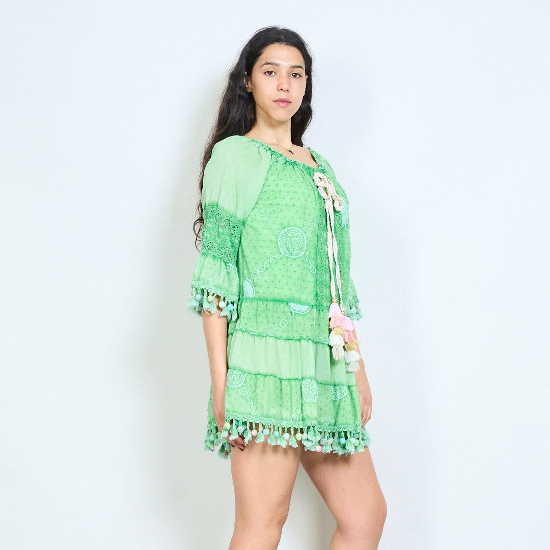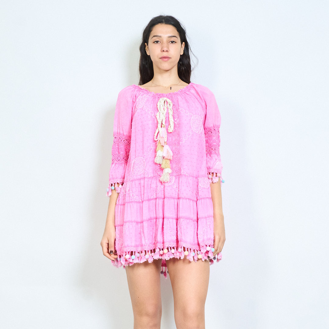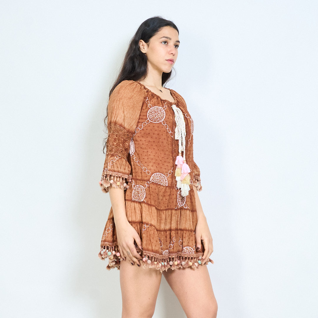 Bohēmiski apdrukāta pušķu līmeņu mini kleita vairumtirdzniecība