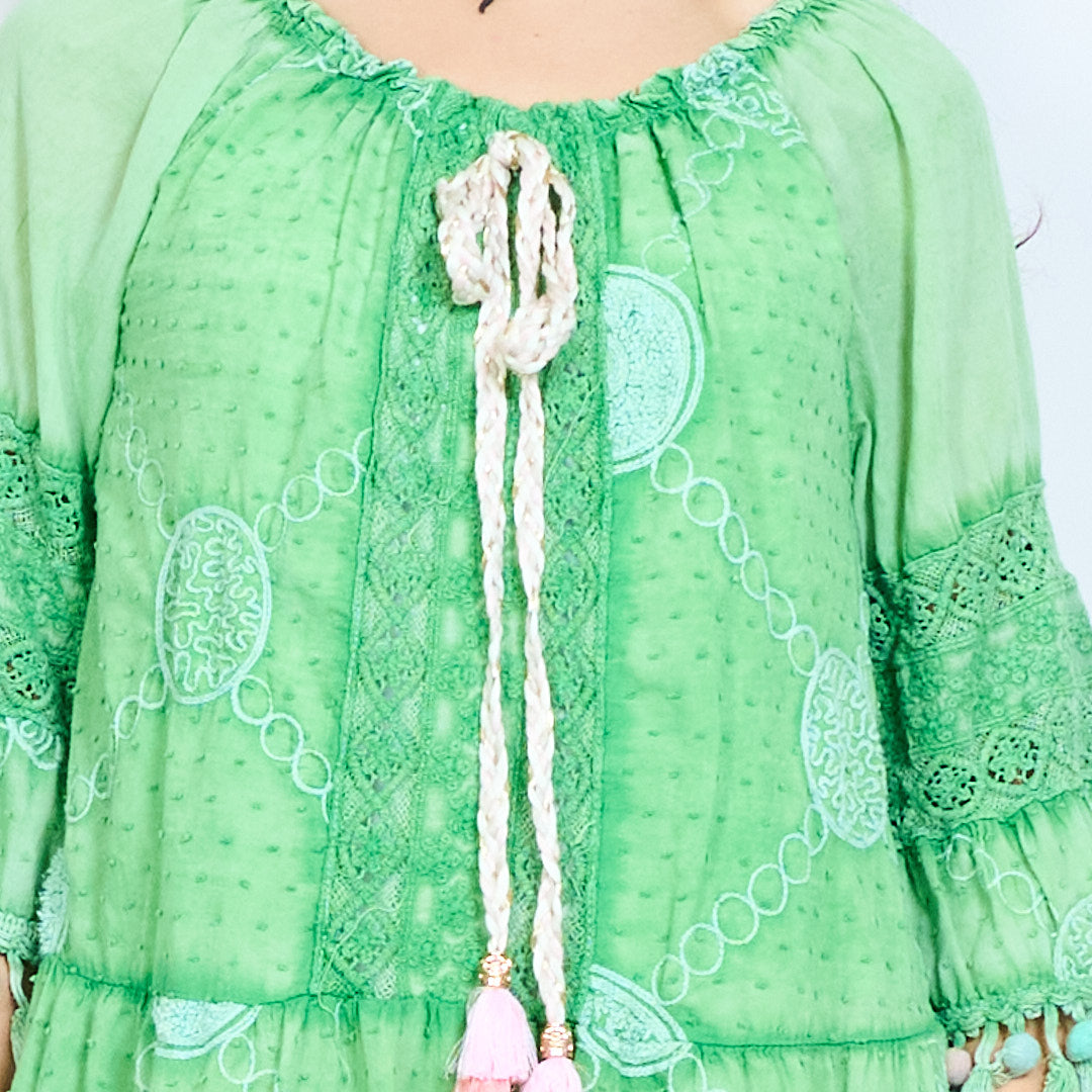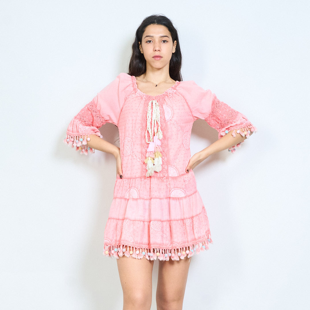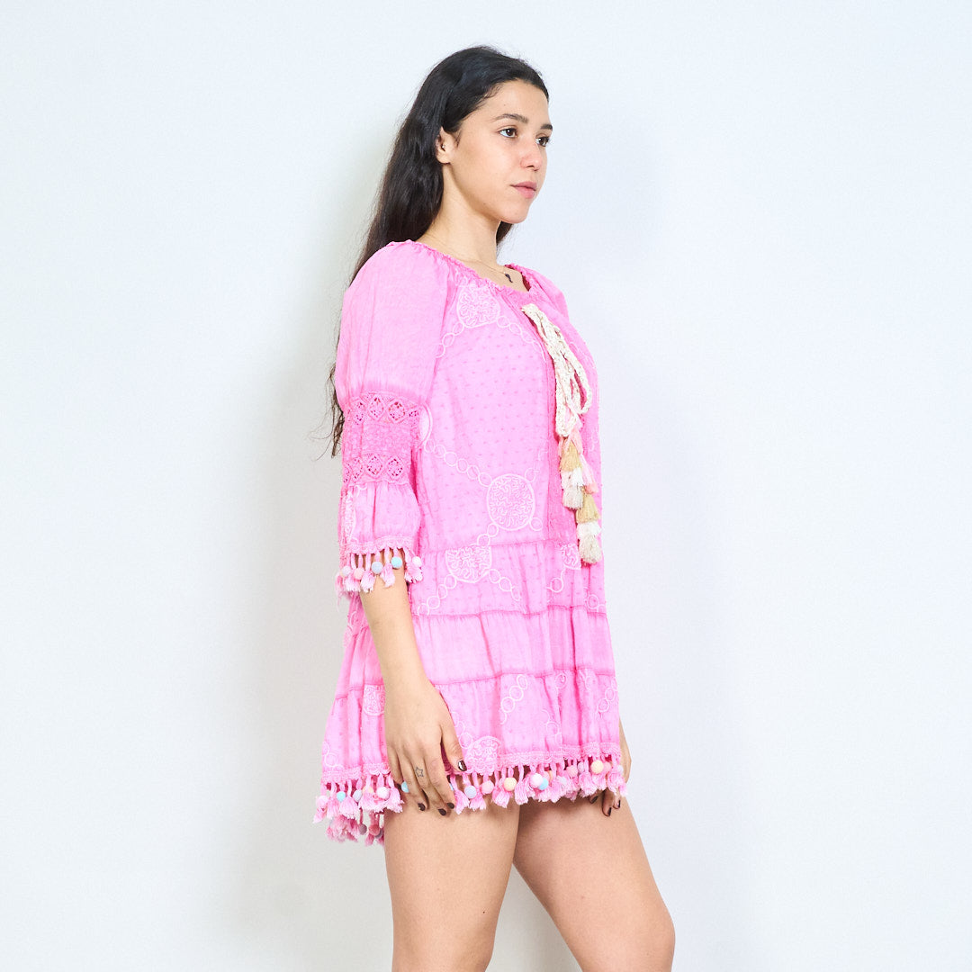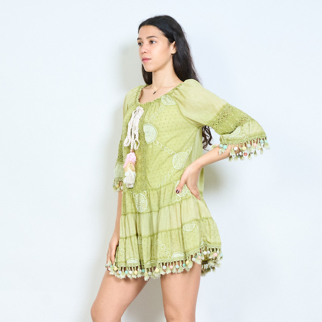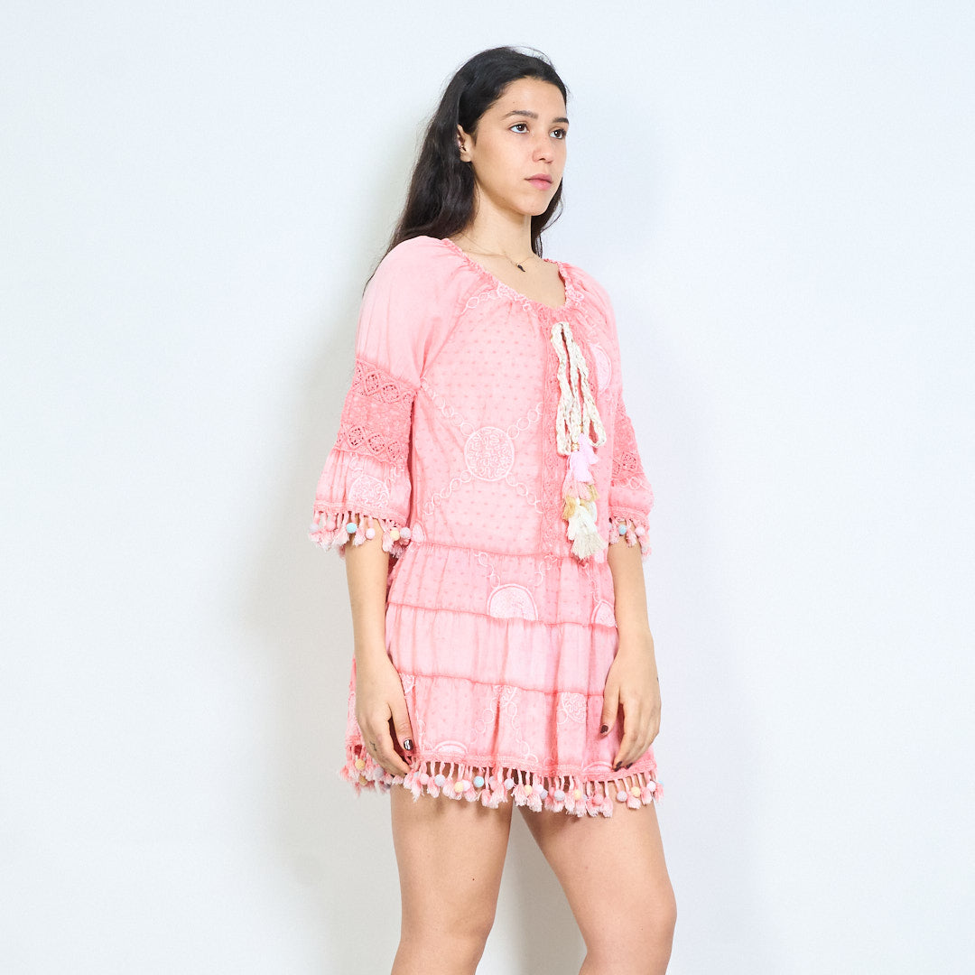 Bohēmiski apdrukāta pušķu līmeņu mini kleita vairumtirdzniecība