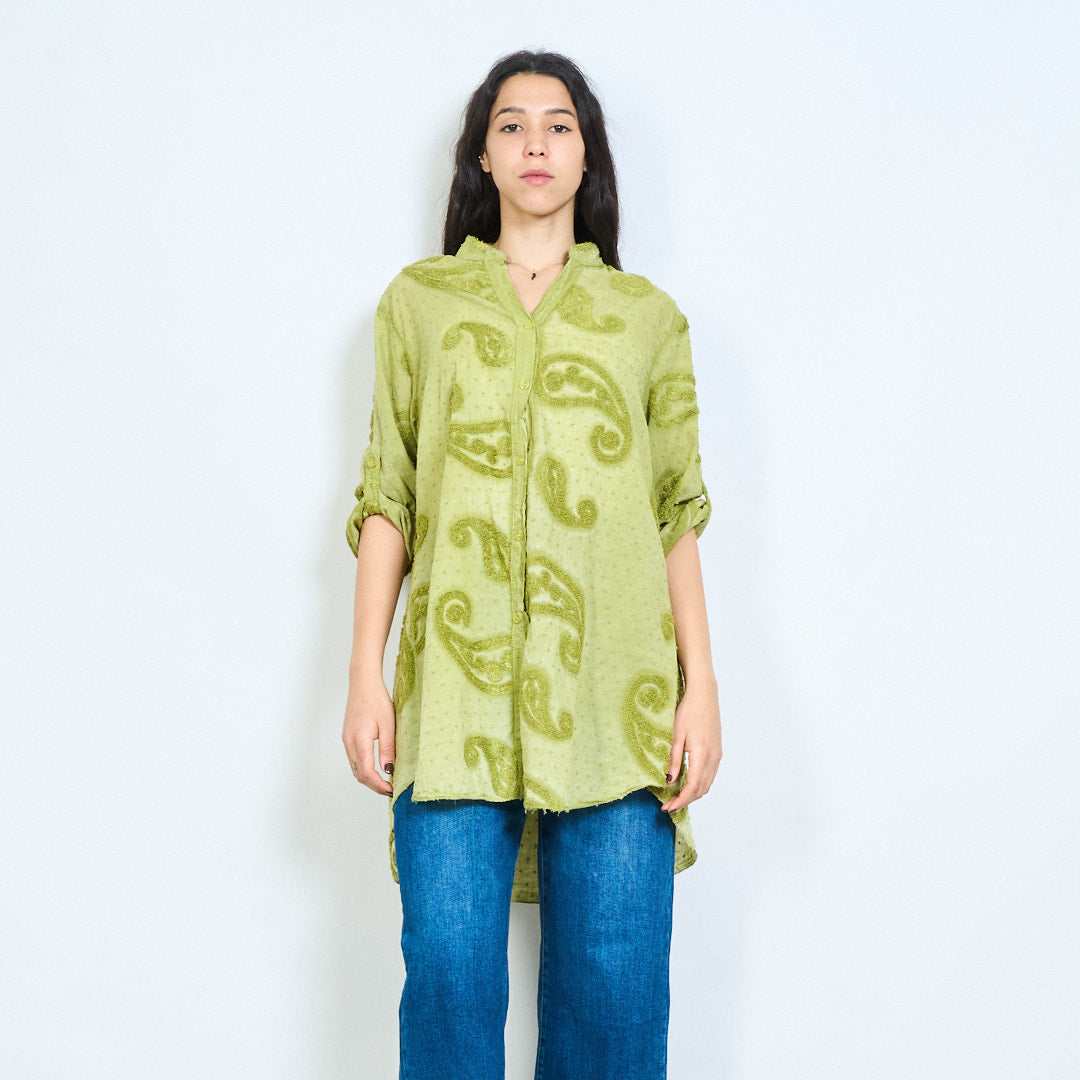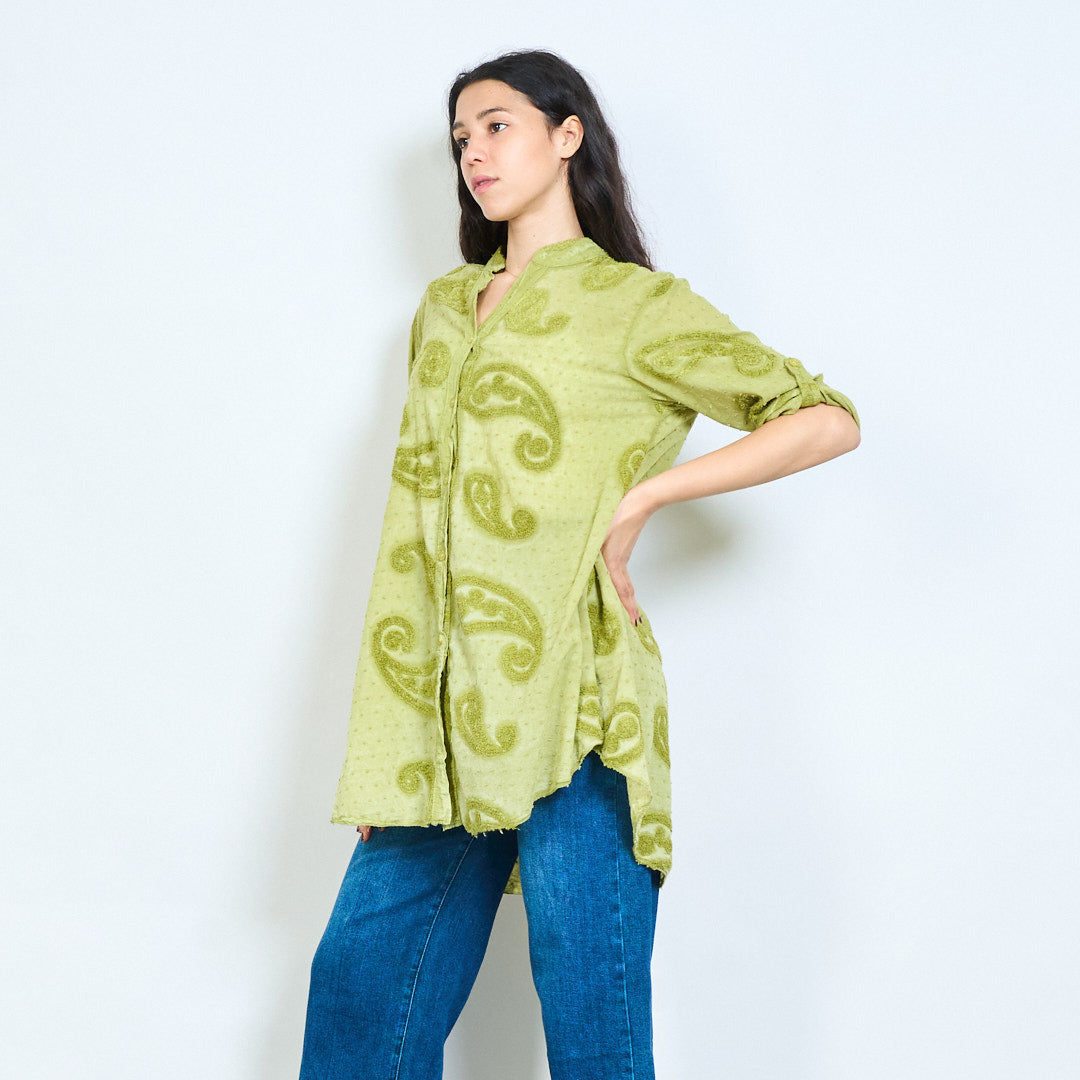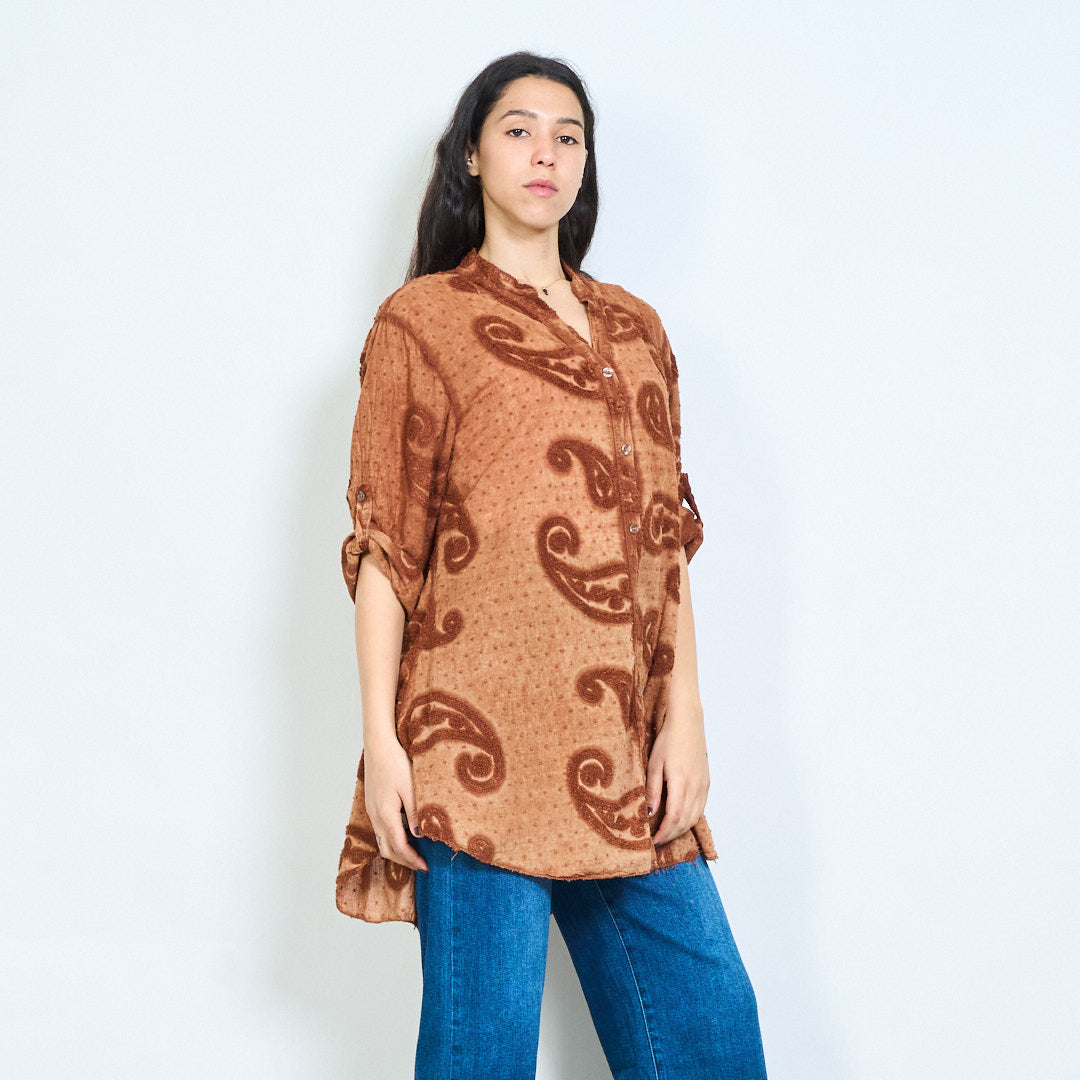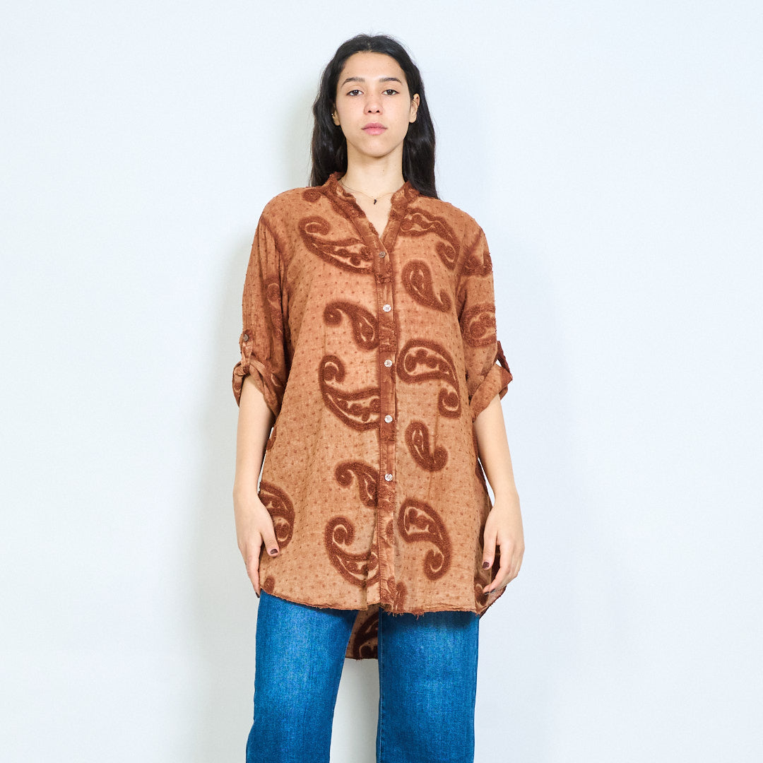 Caurspīdīga Paisley izšūta pogām midi kleita vairumtirdzniecība