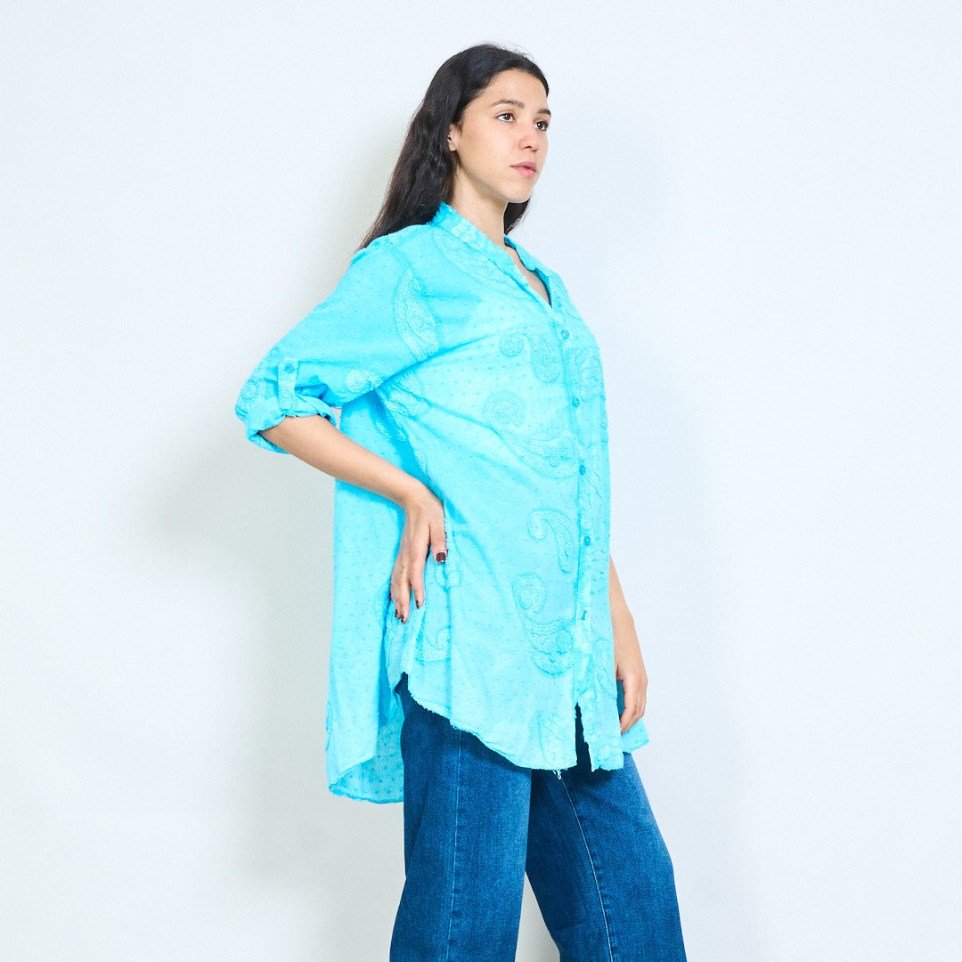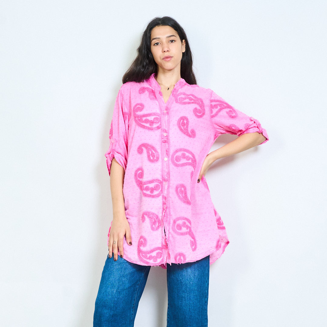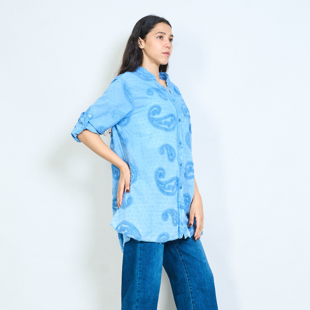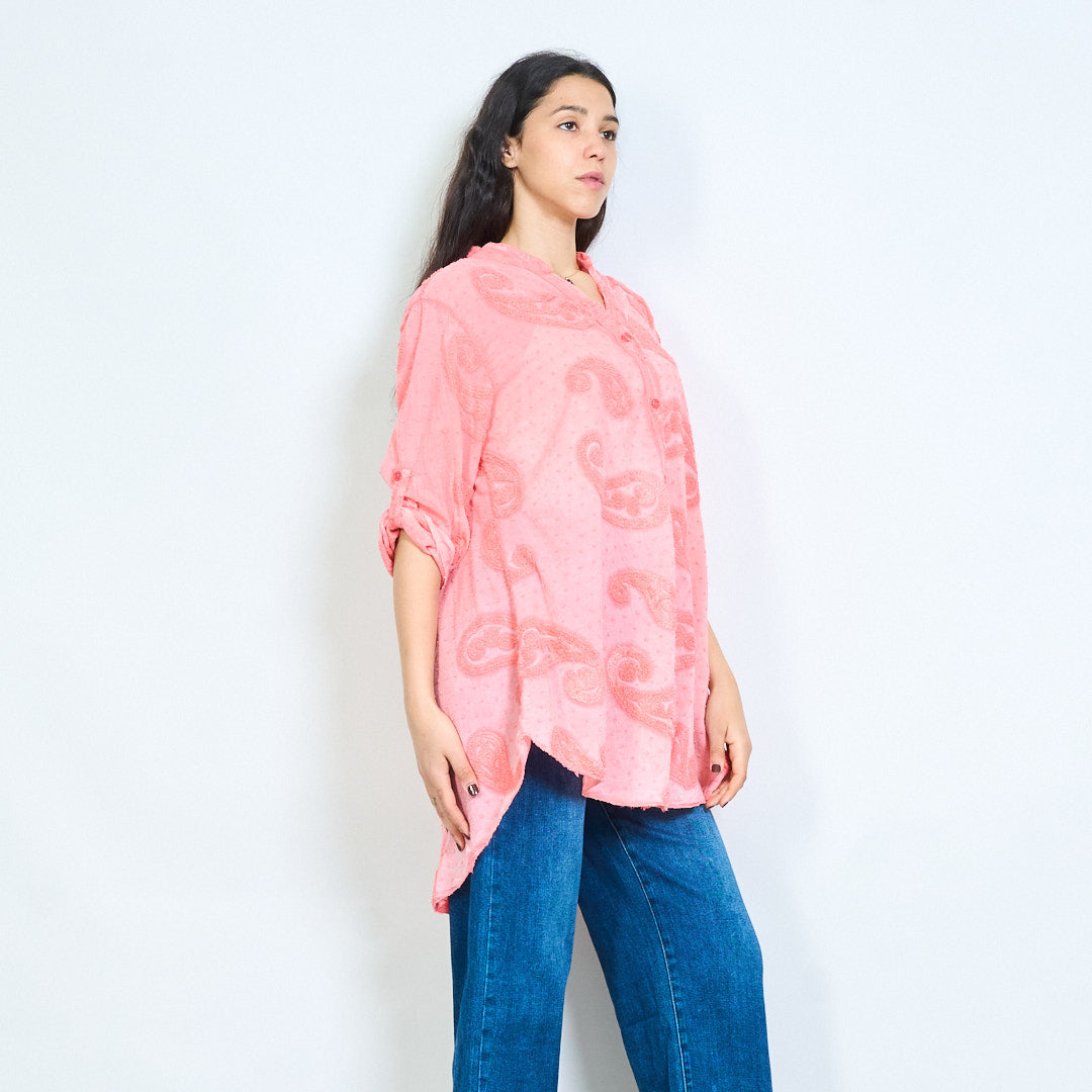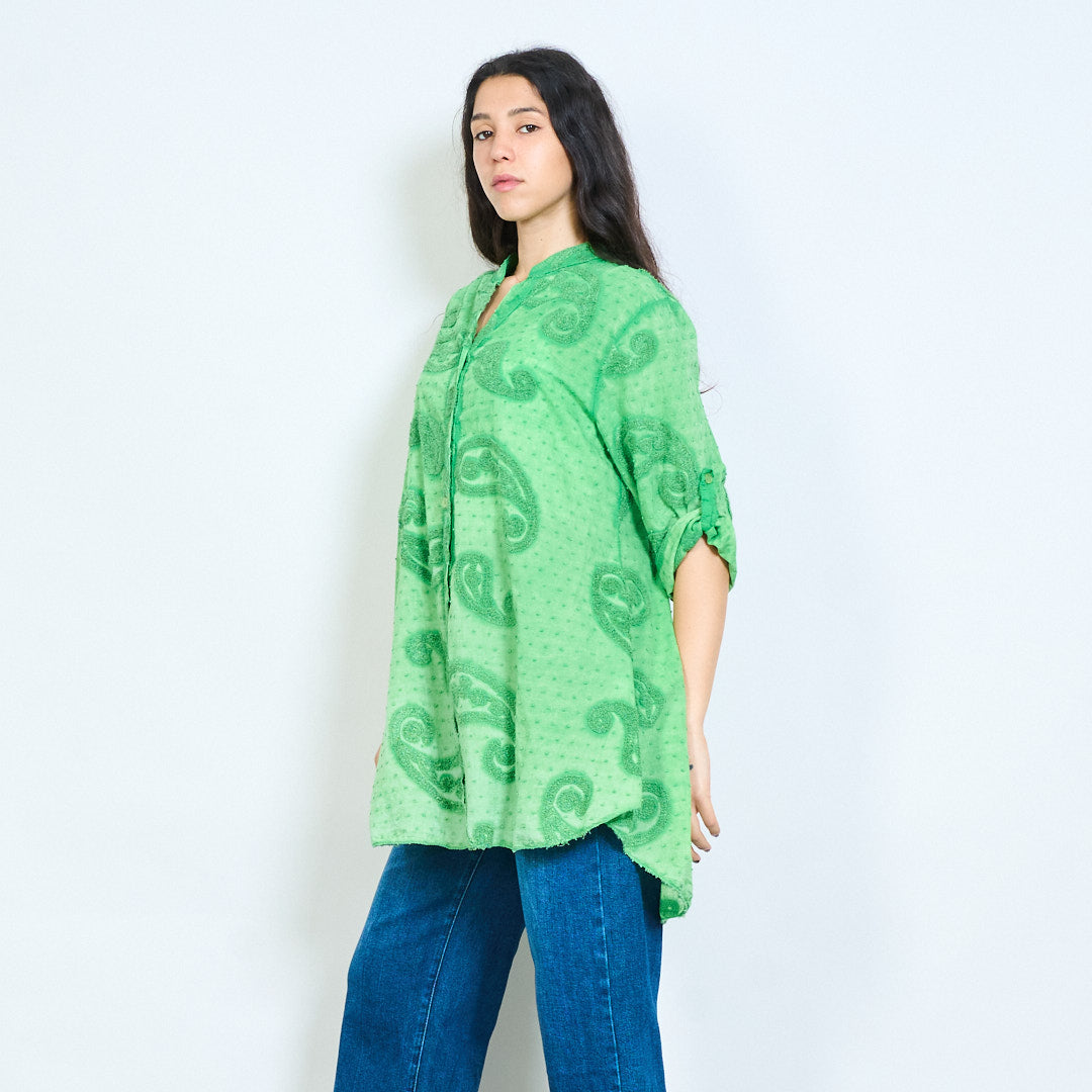 Caurspīdīga Paisley izšūta pogām midi kleita vairumtirdzniecība