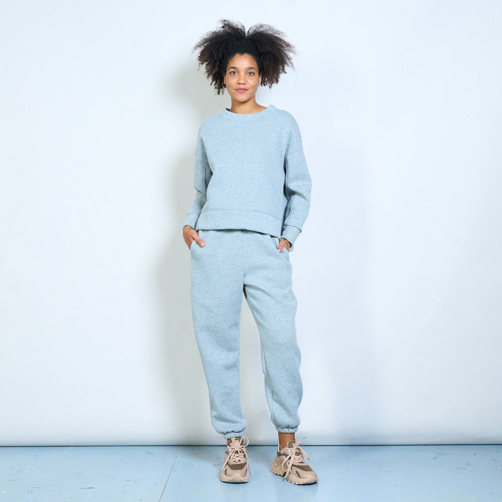 - Tīrs un moderns sporta krekls ar smalku priekšējo šuvju detaļu struktūrai