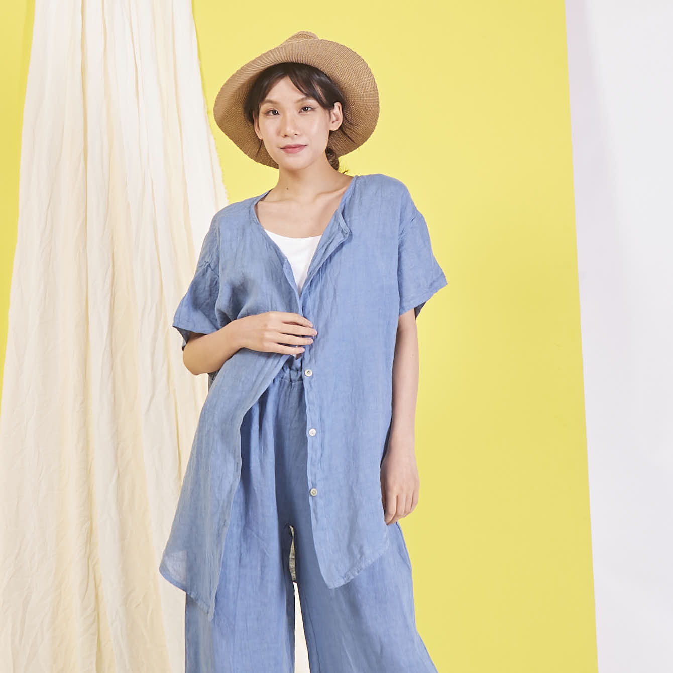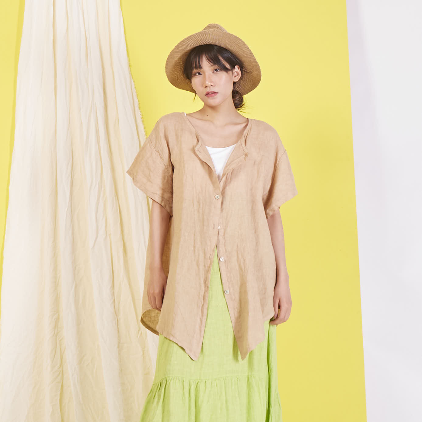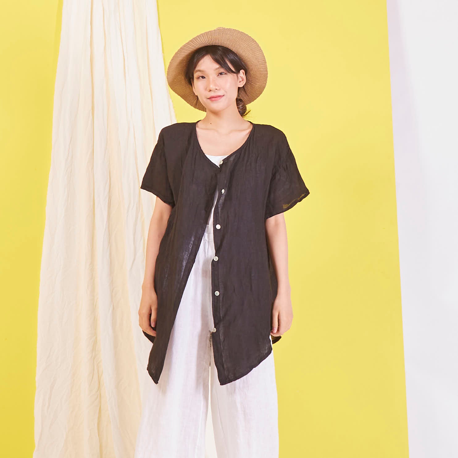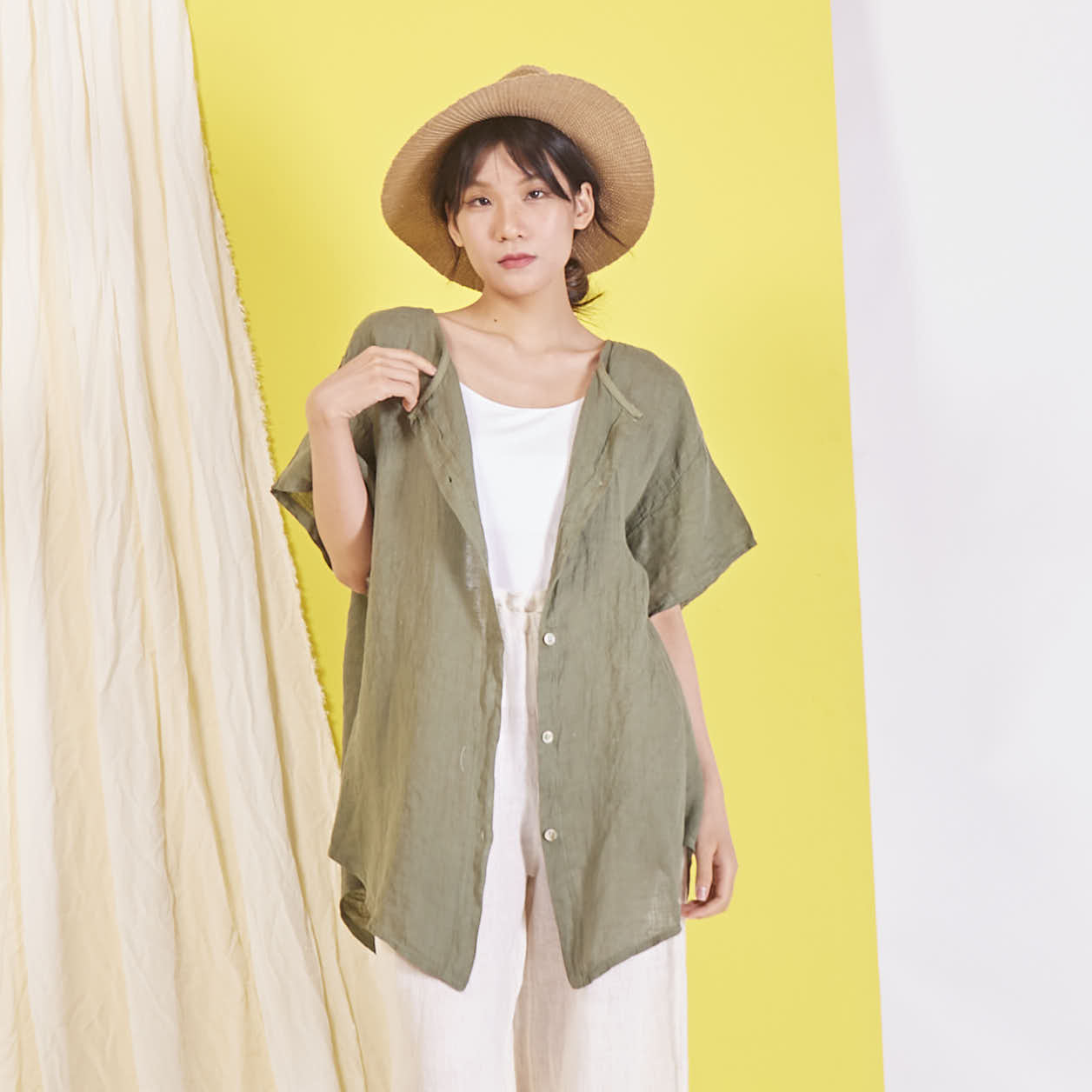 Vairumtirdzniecības veļas blūze ar īsām piedurknēm lina