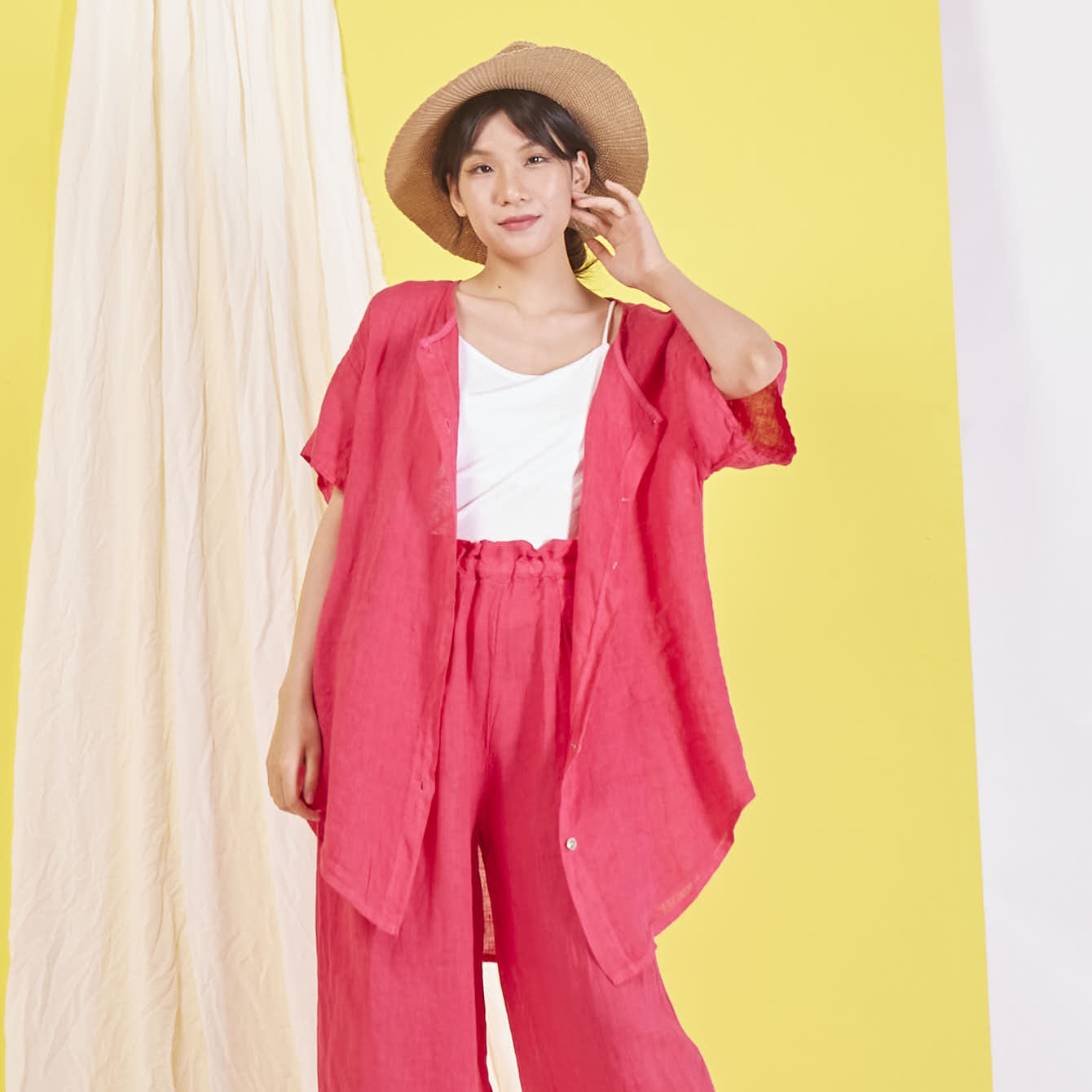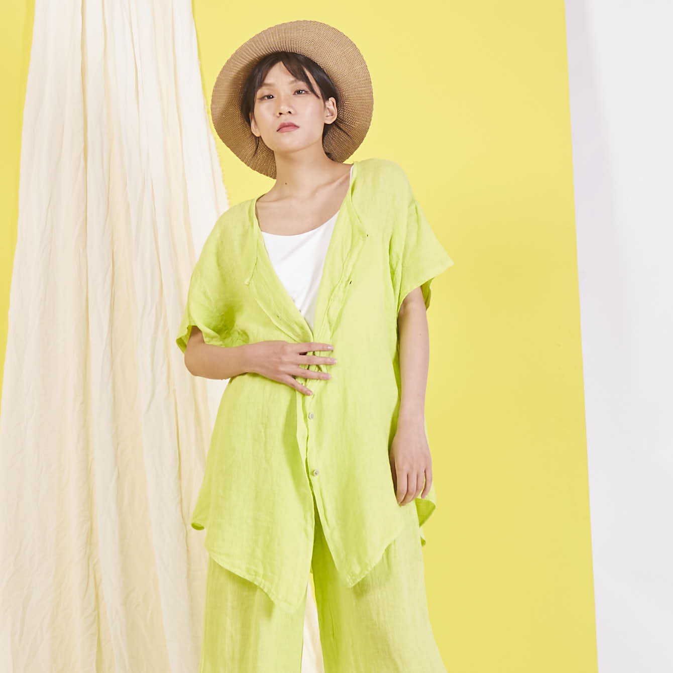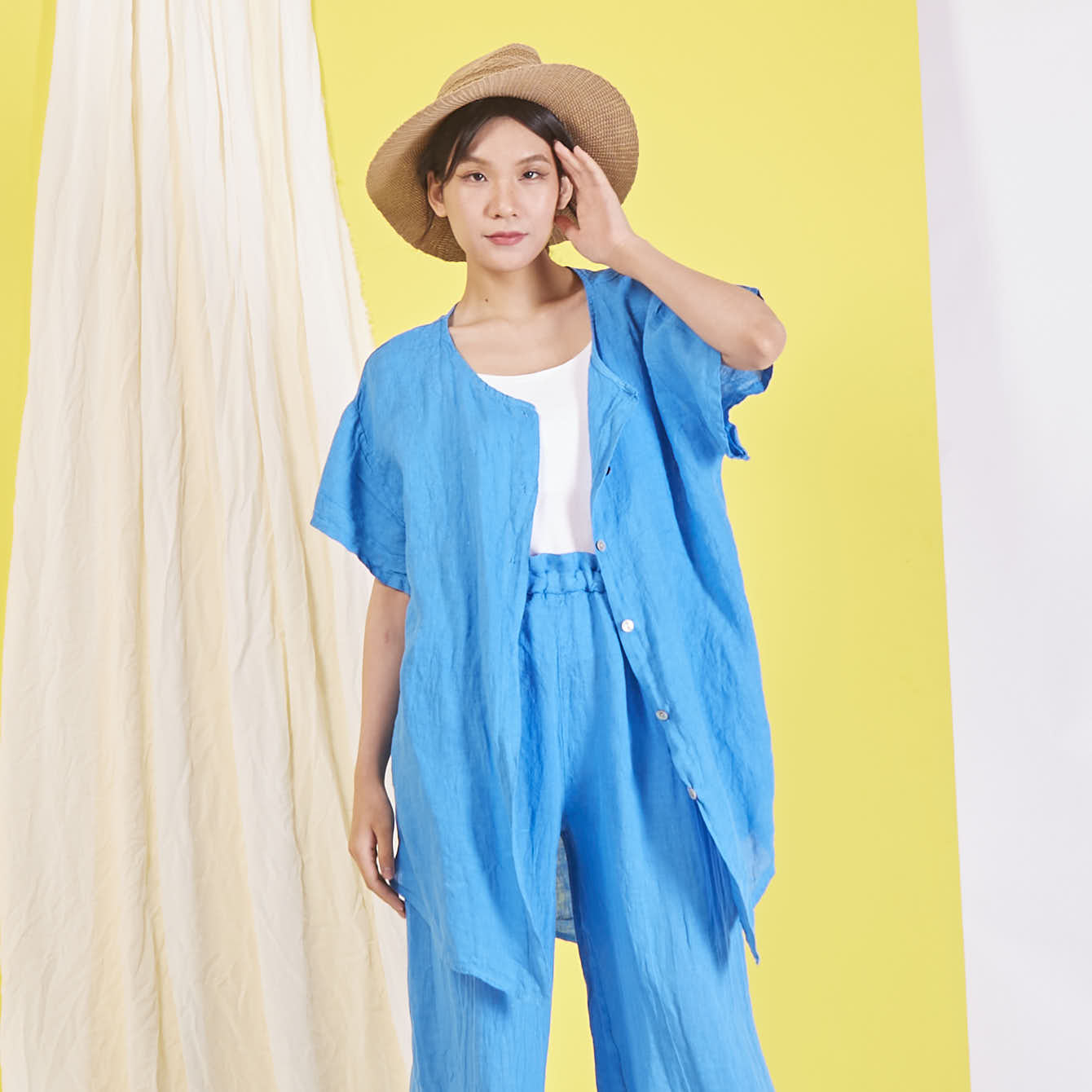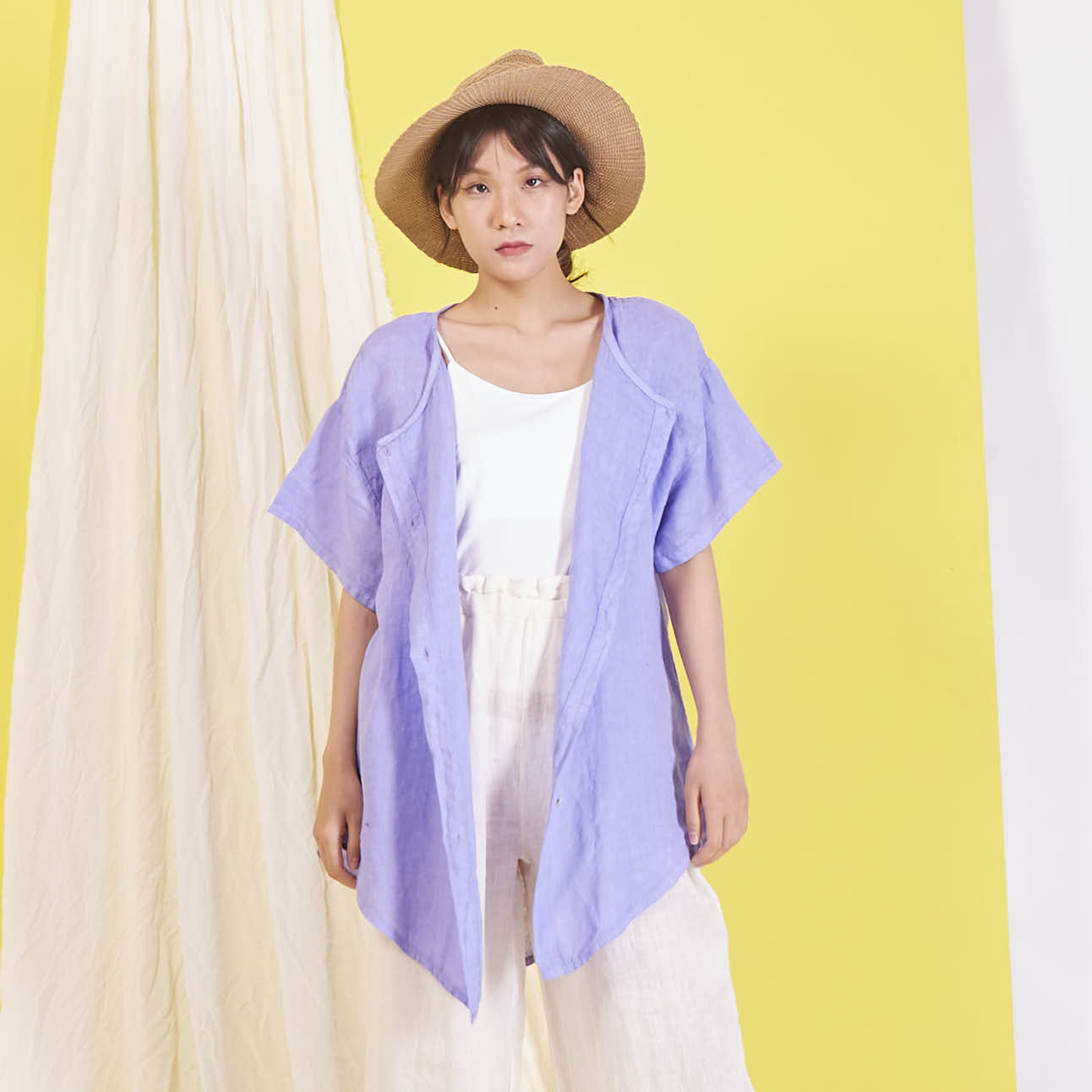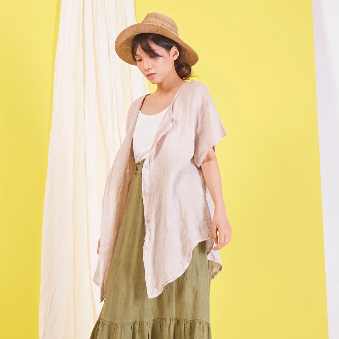 Vairumtirdzniecības veļas blūze ar īsām piedurknēm lina