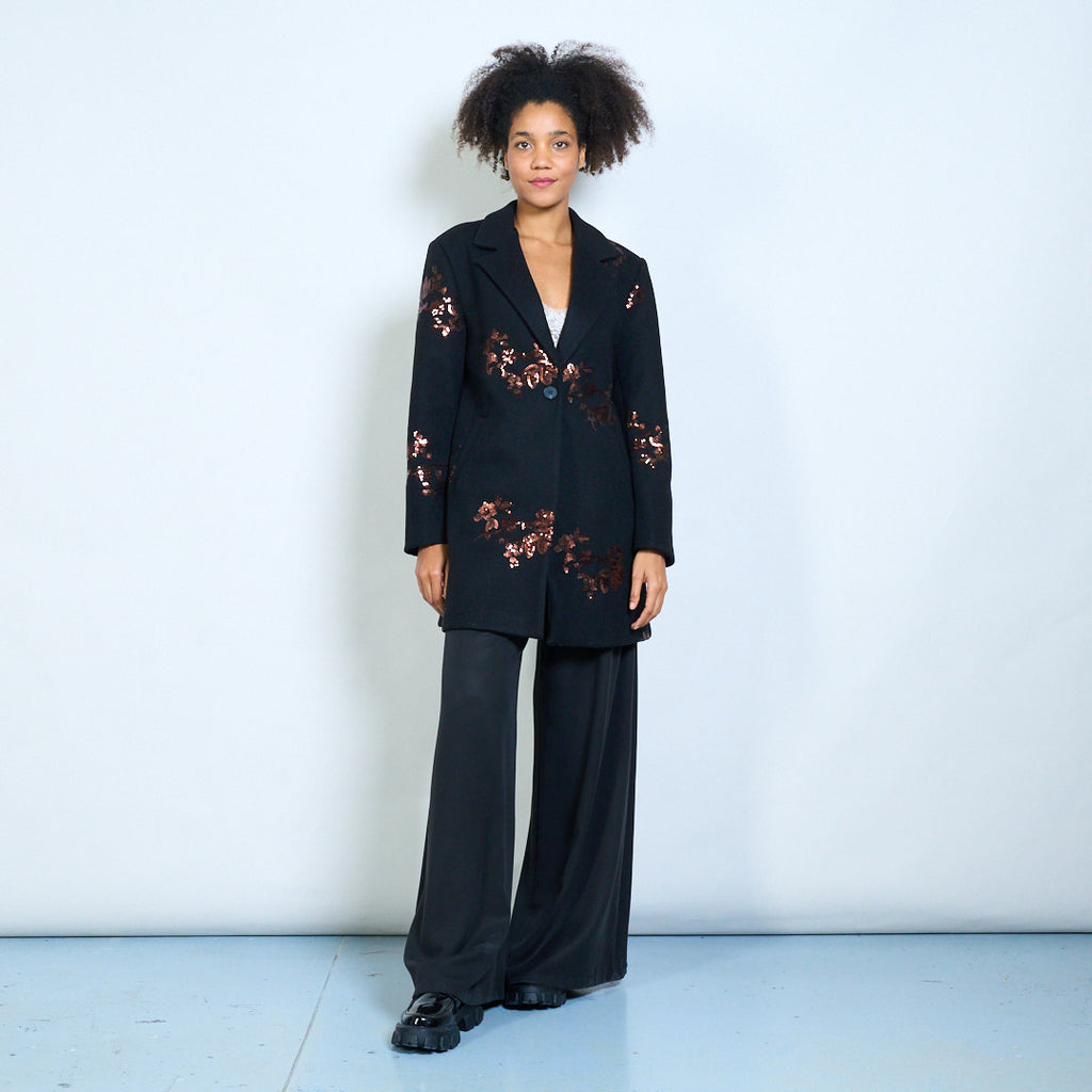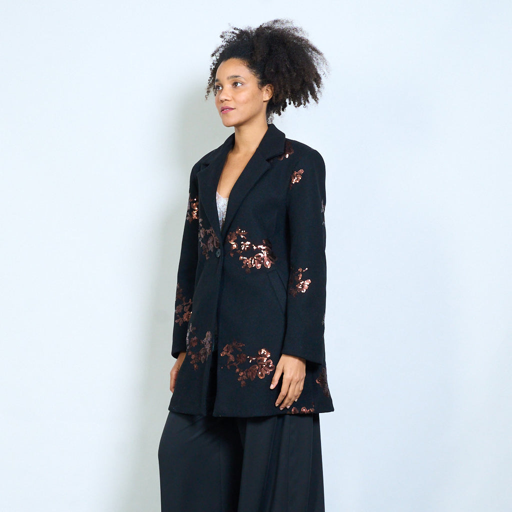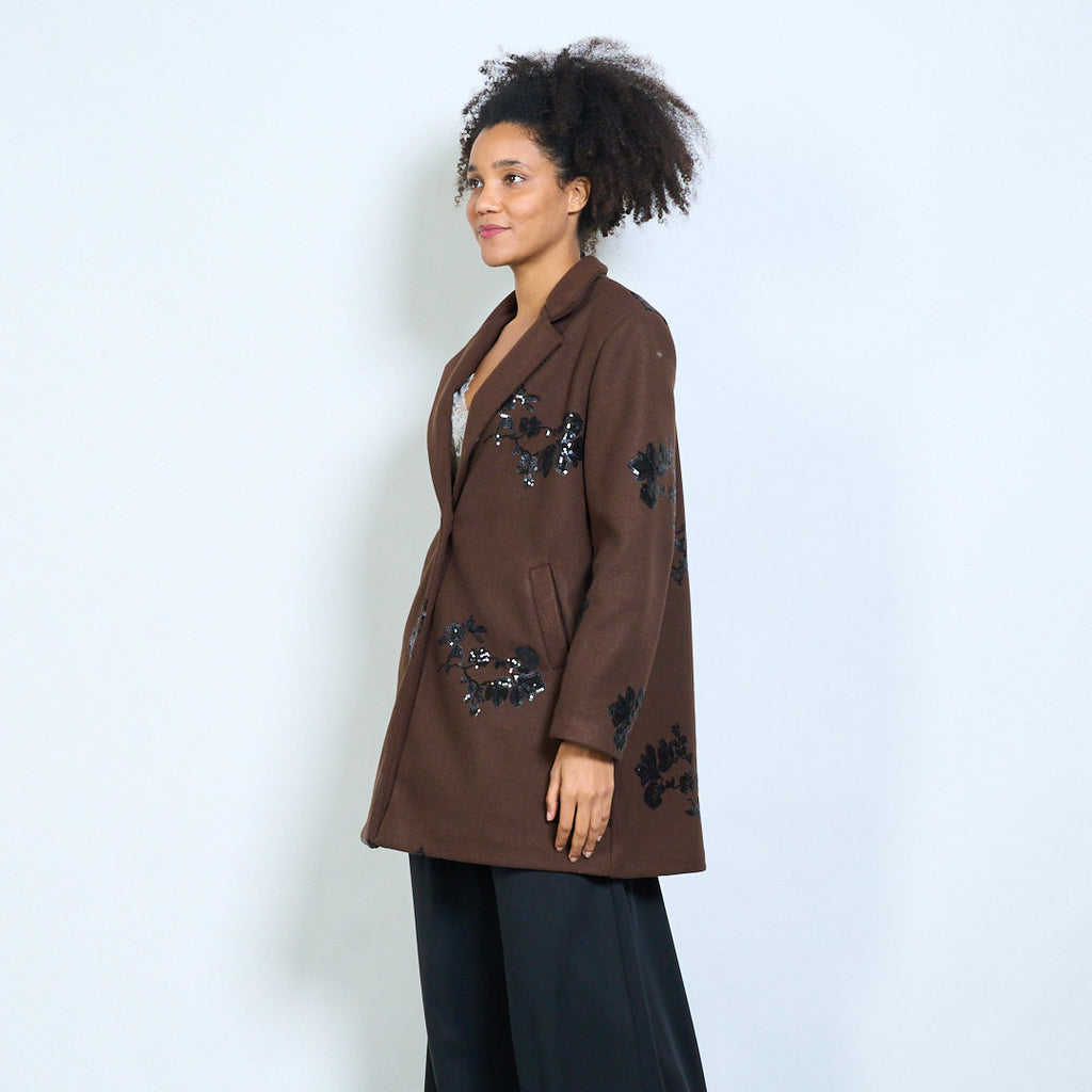 Ziedu fliteriem izrotāts āķu jedu mētelis vairumtirdzniecība