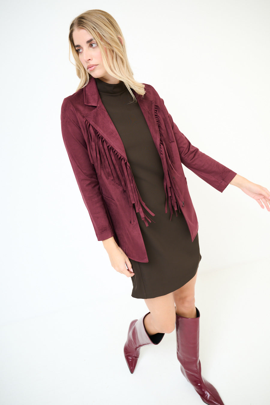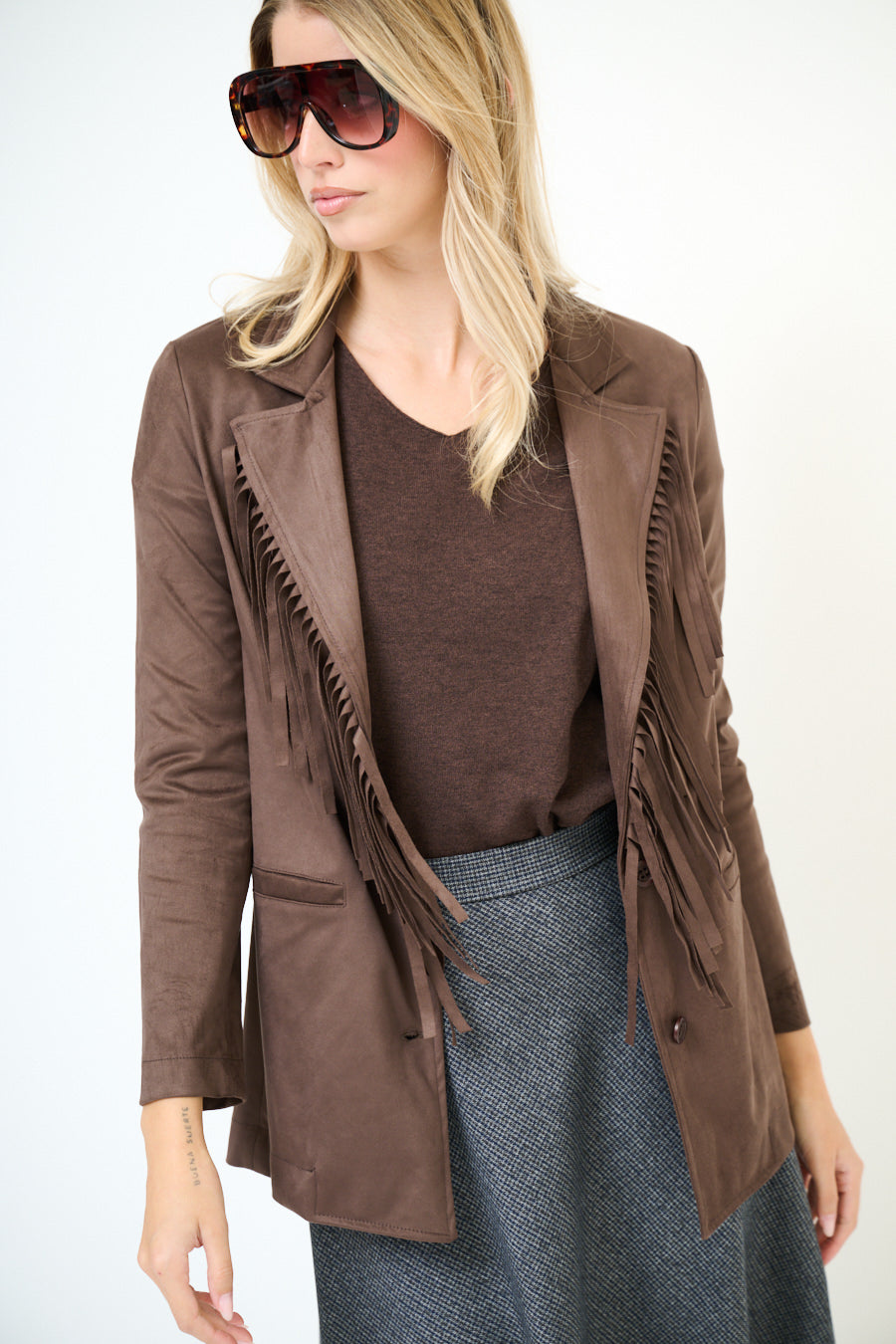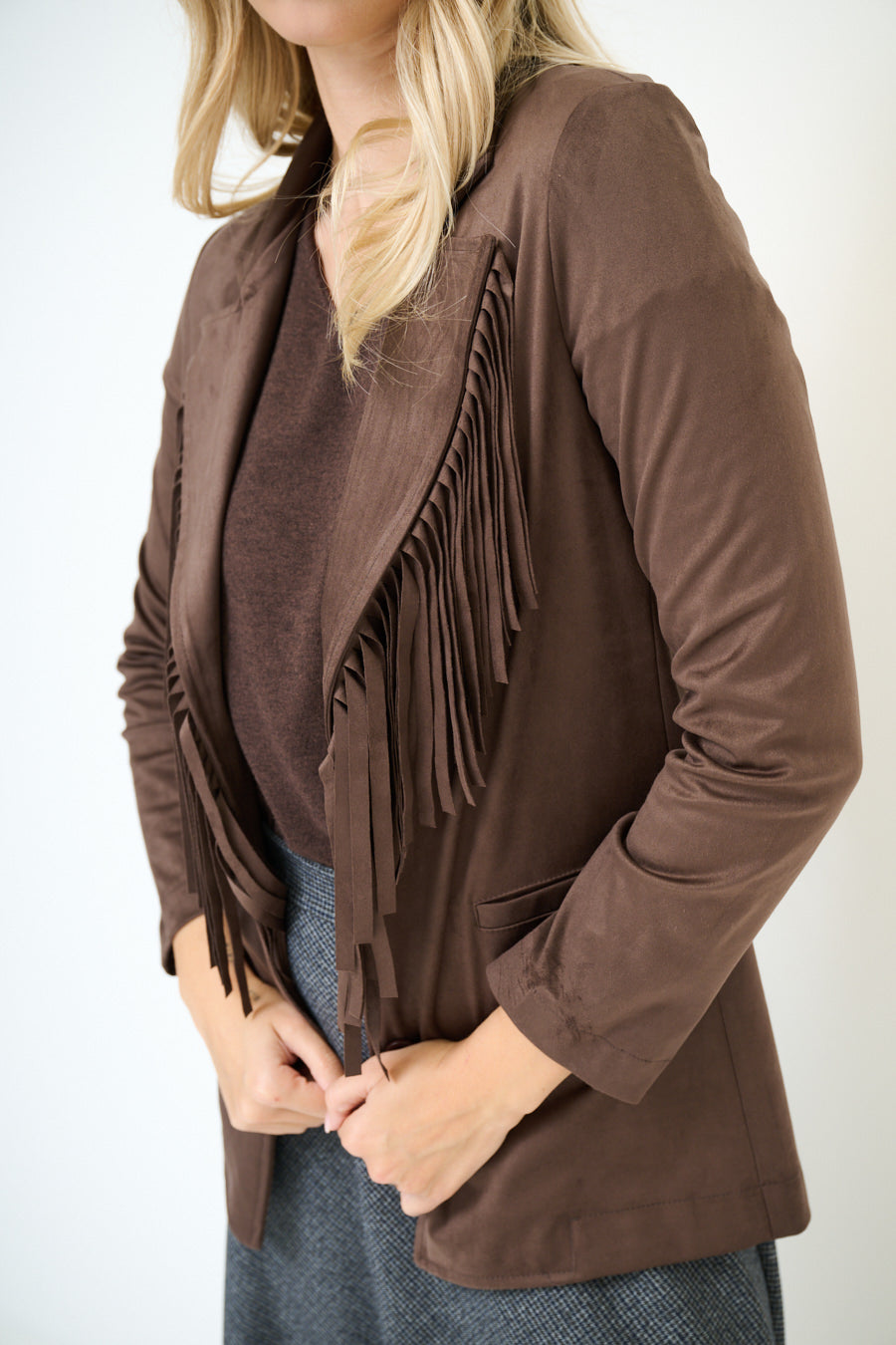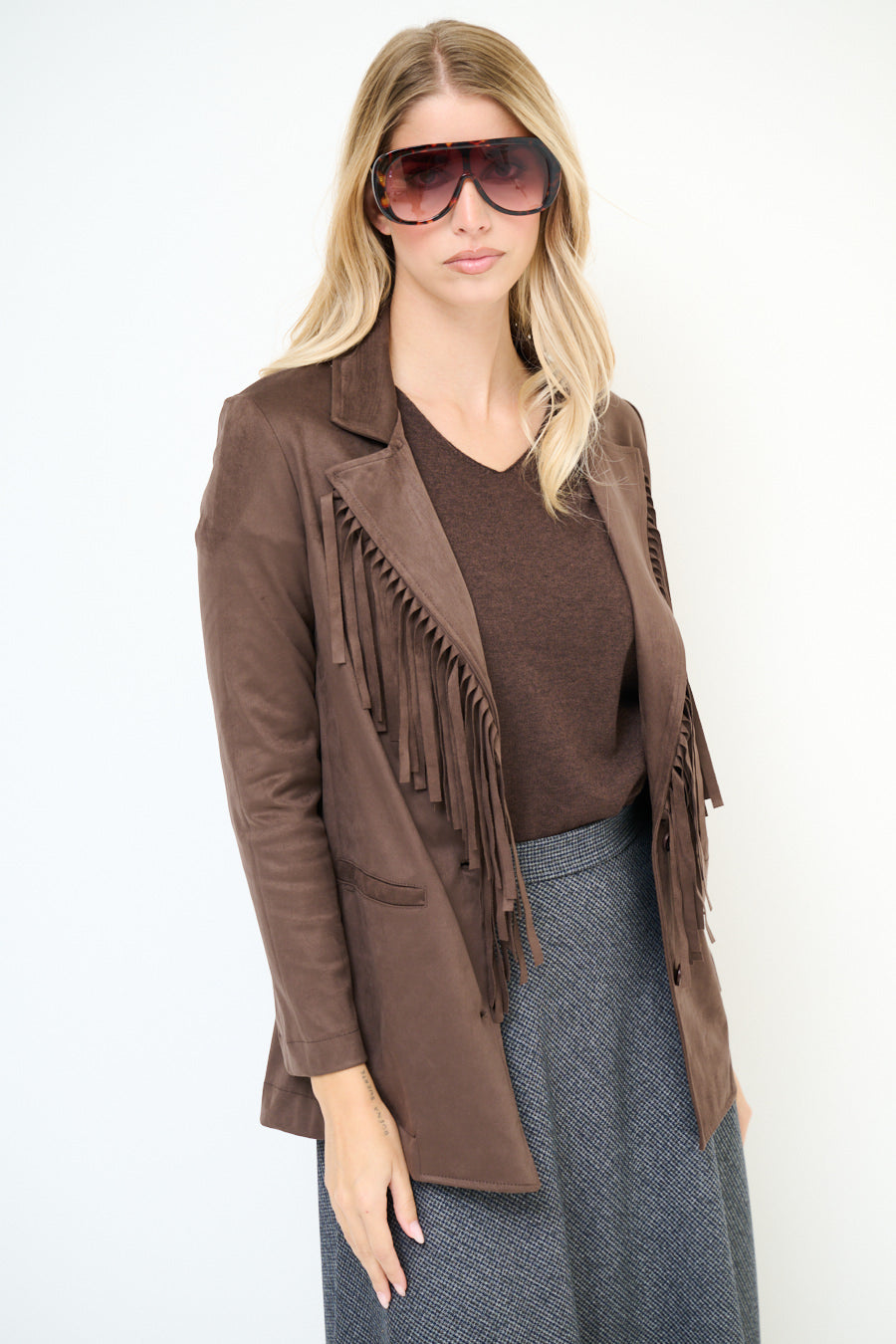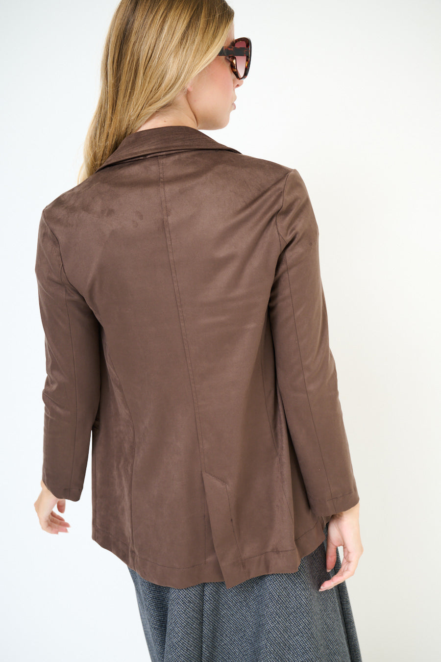 Atvērts priekšējais bārkstis detaļas zamšādas efekta jaka Vairumtirdzniecība