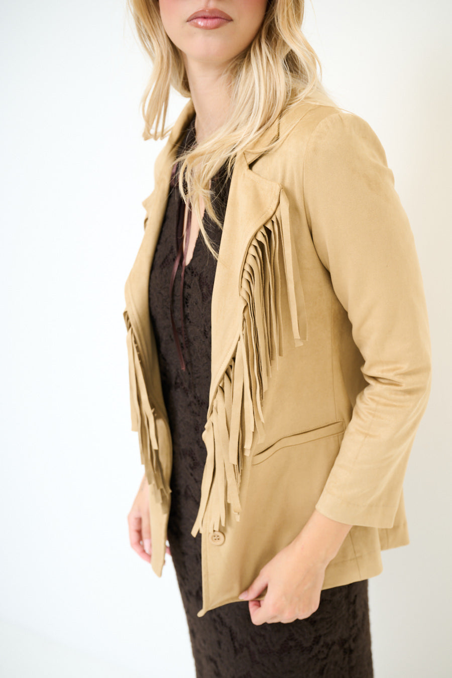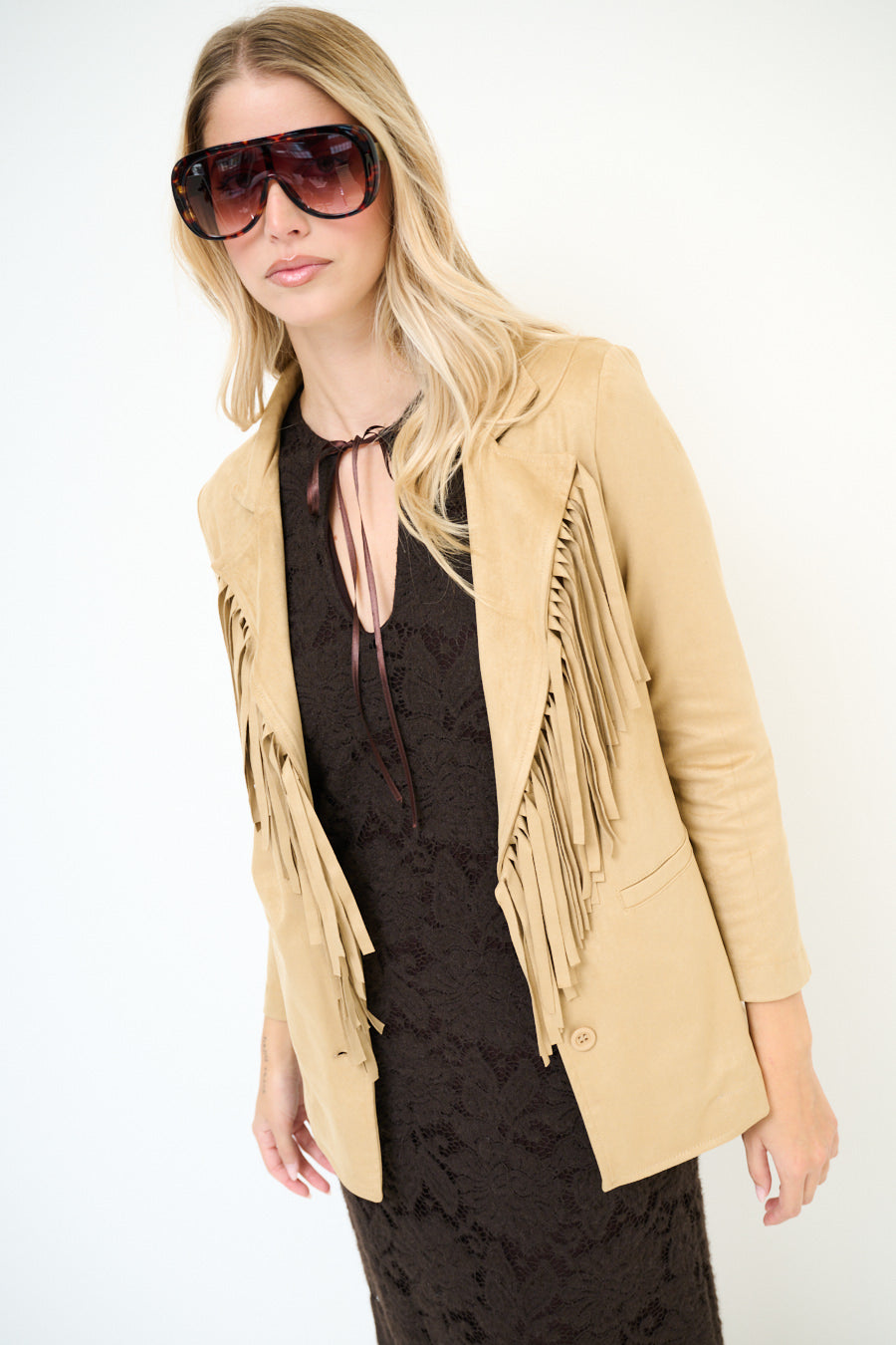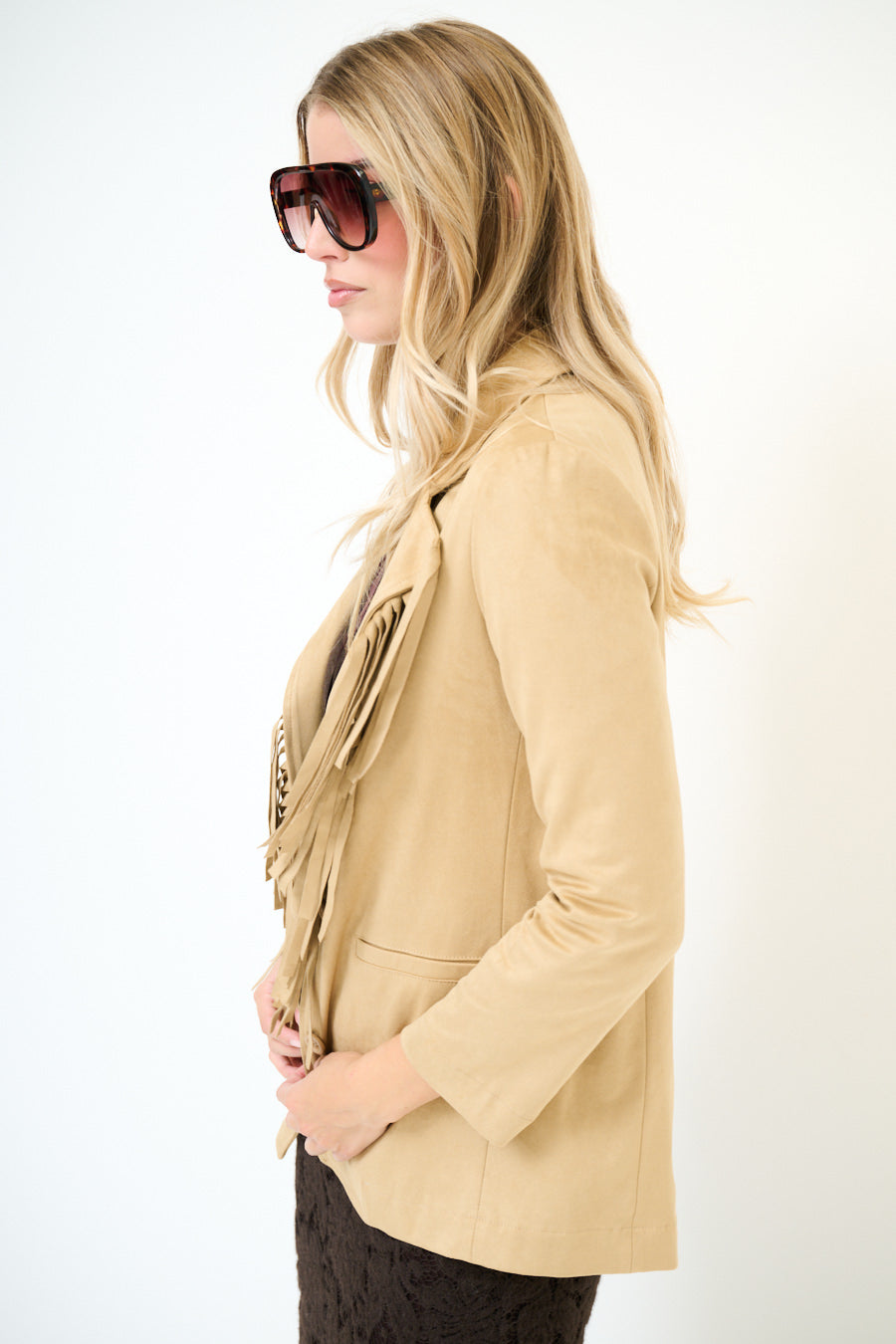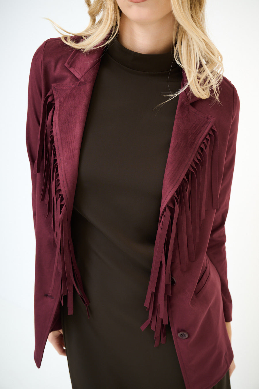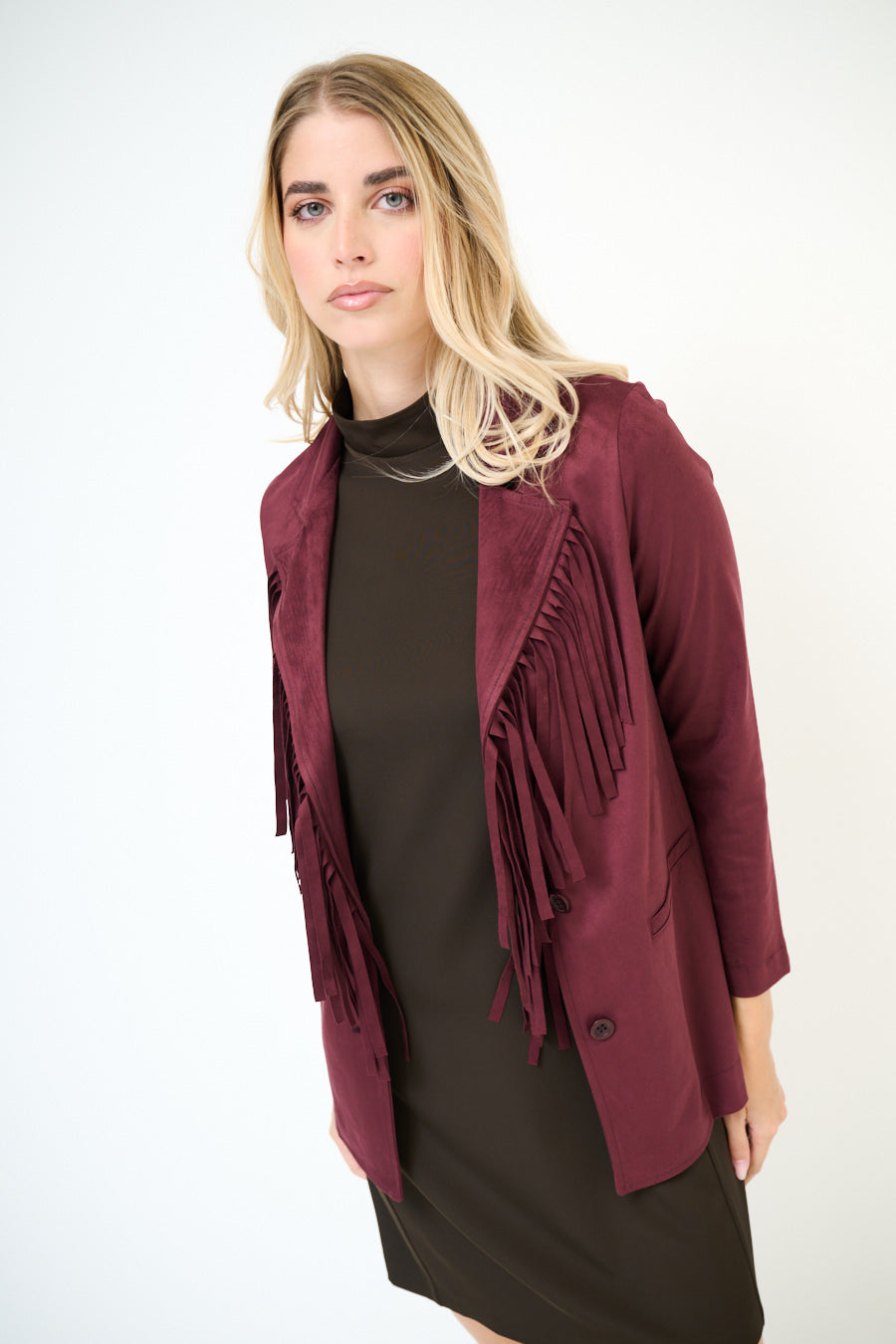 Atvērts priekšējais bārkstis detaļas zamšādas efekta jaka Vairumtirdzniecība