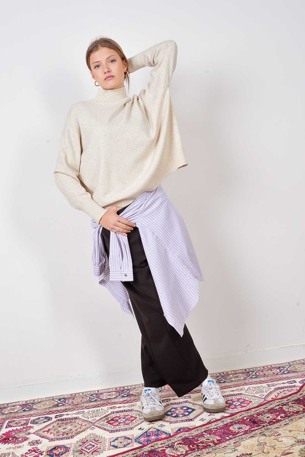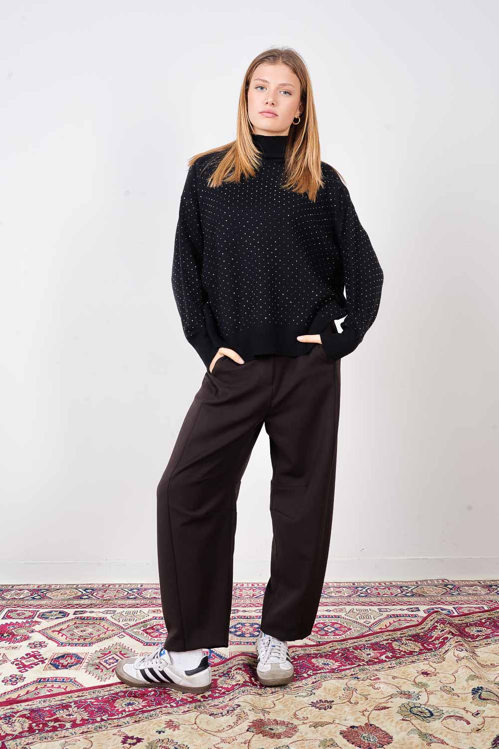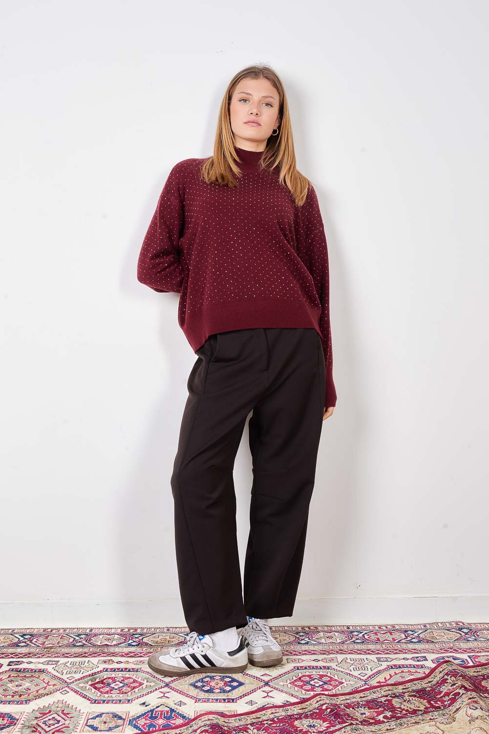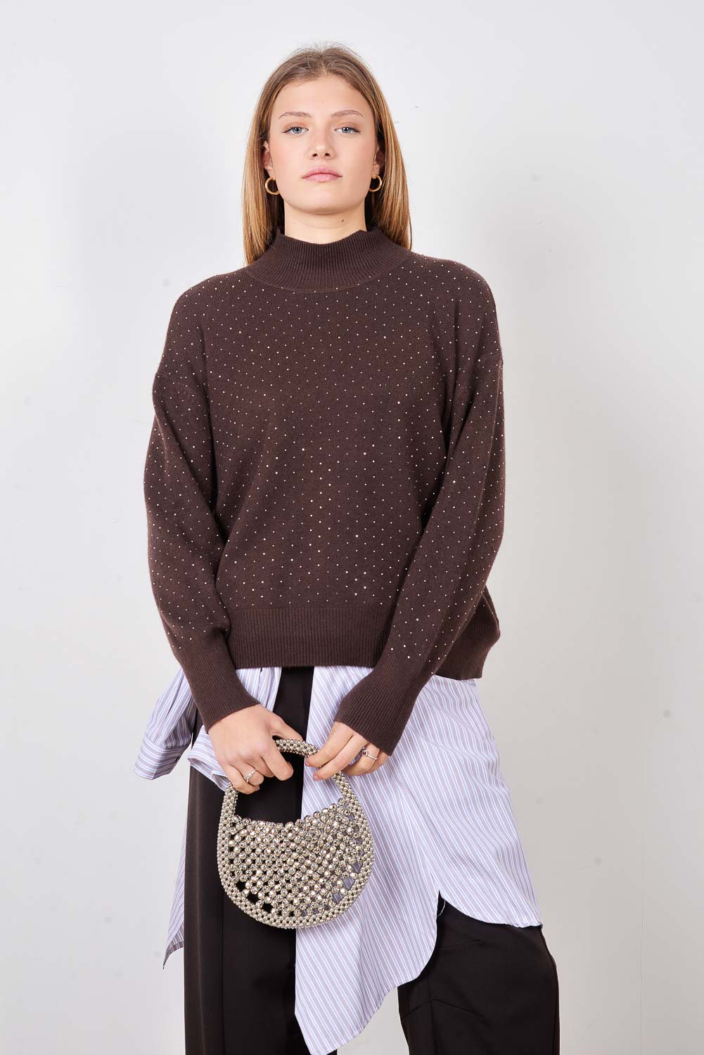 - Adīts džemperis ar kniedes rotājumiem priekšpusē un plecos