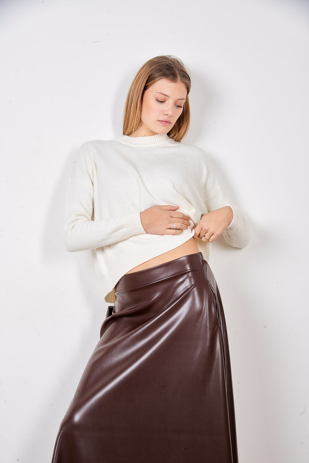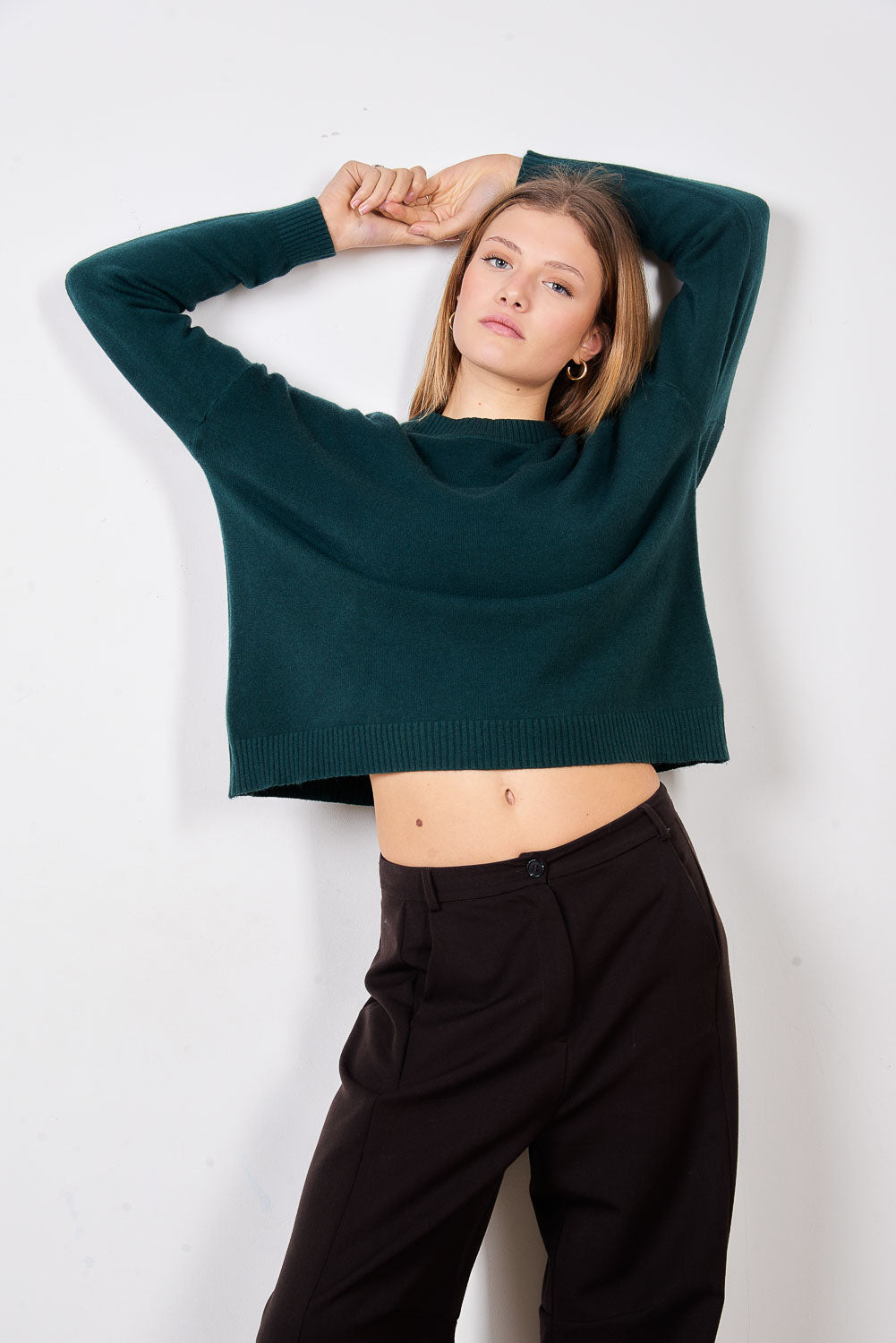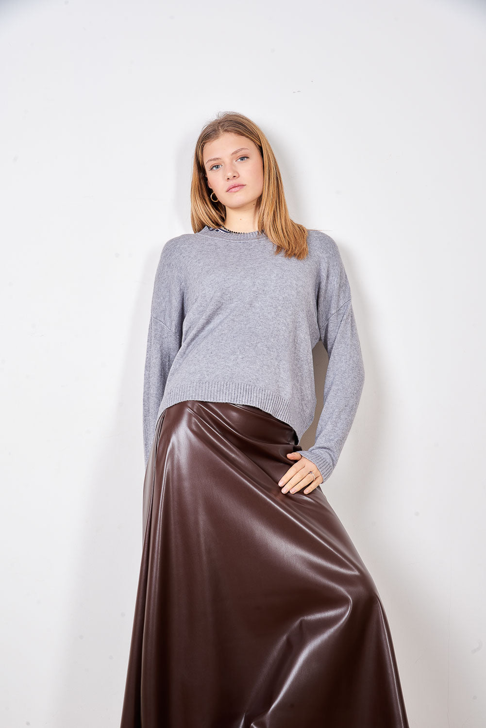 Trikotāžas džemperis ar minimālu apcirptu apkakli