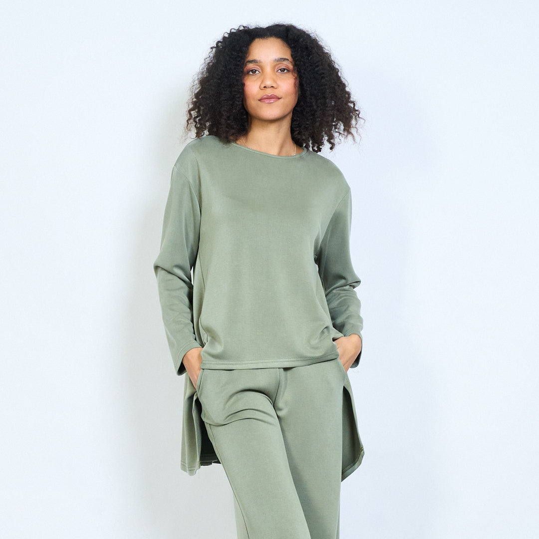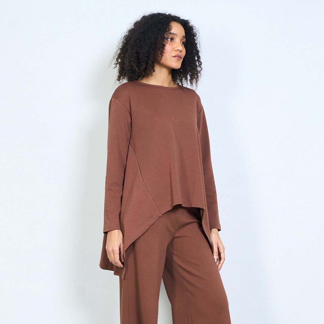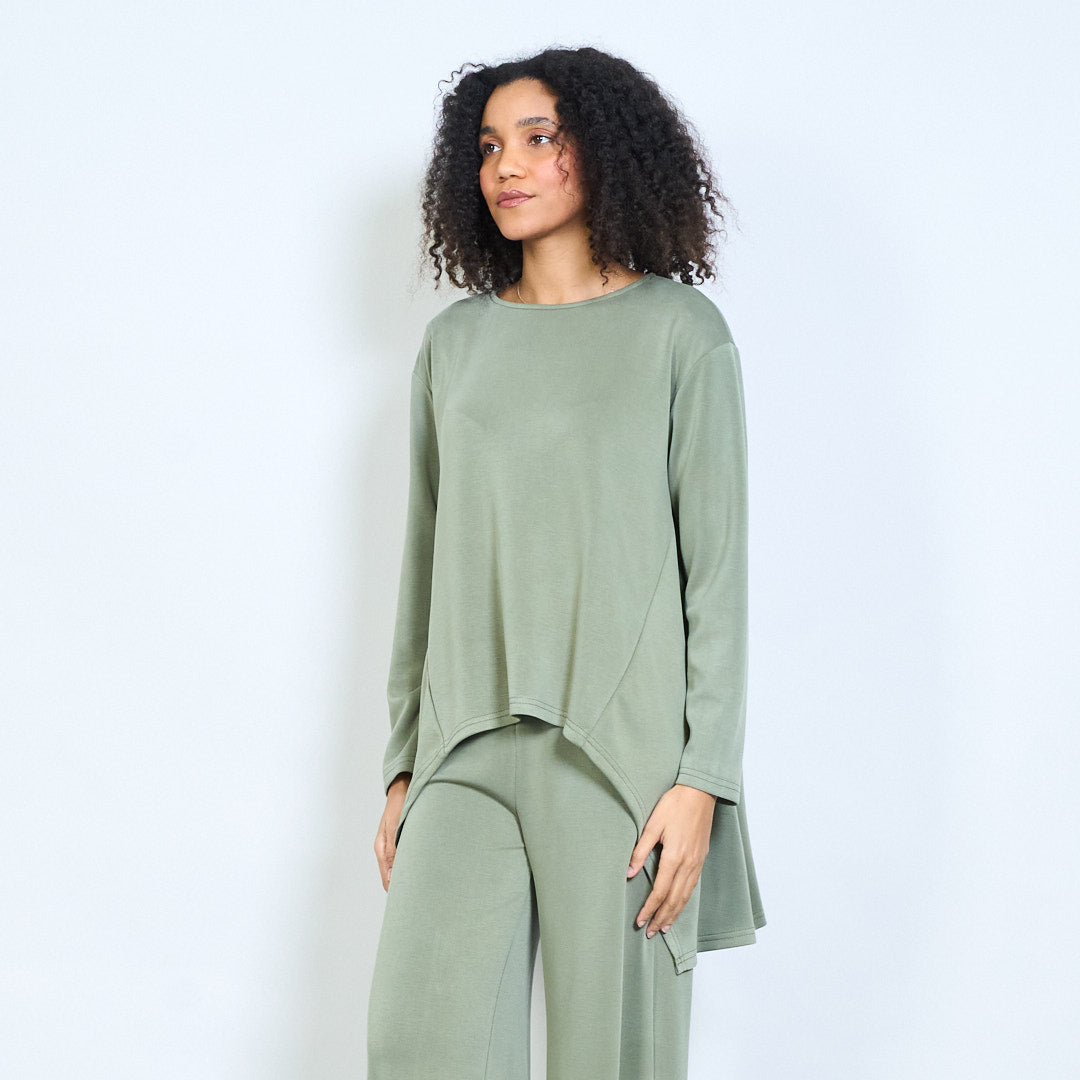 Lielizmēra blūze ar asimetrisku apakšmalu ar garām piedurknēm vairumtirdzniecība
