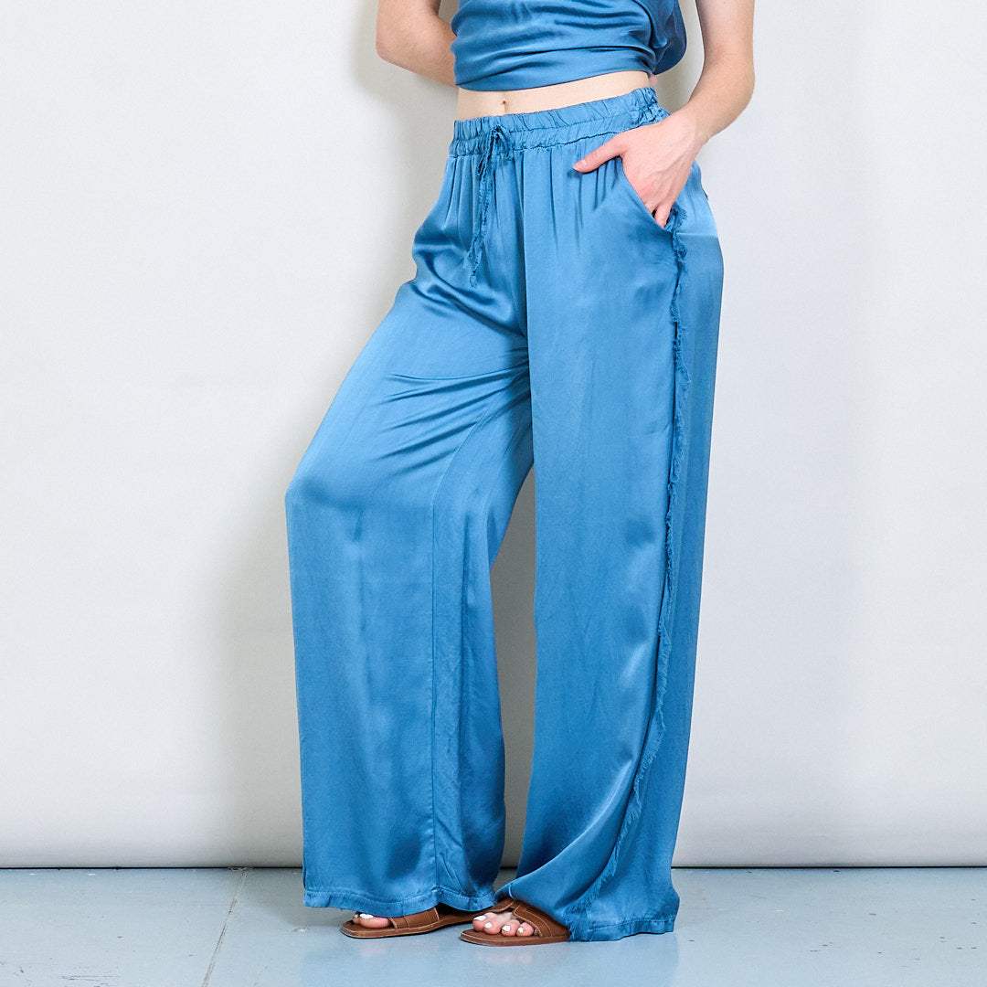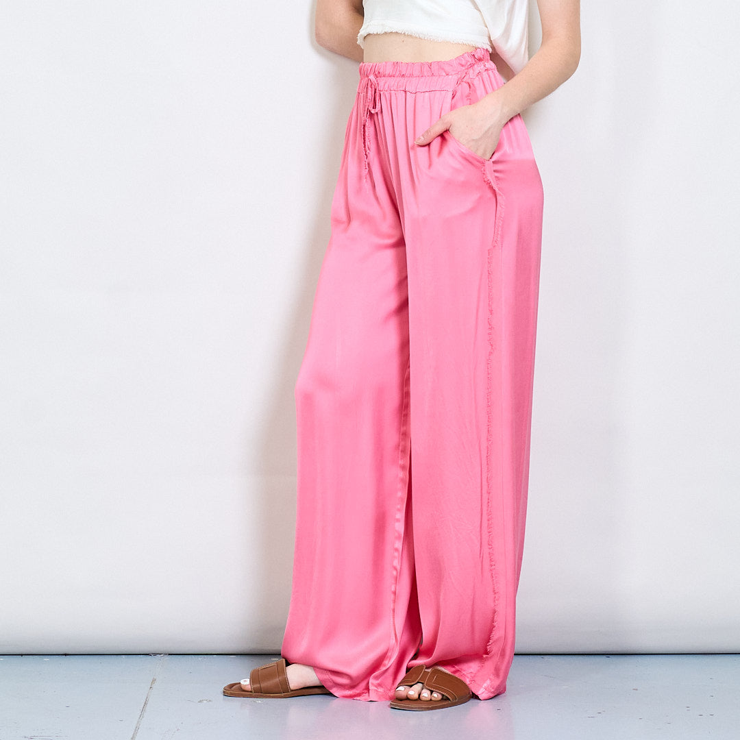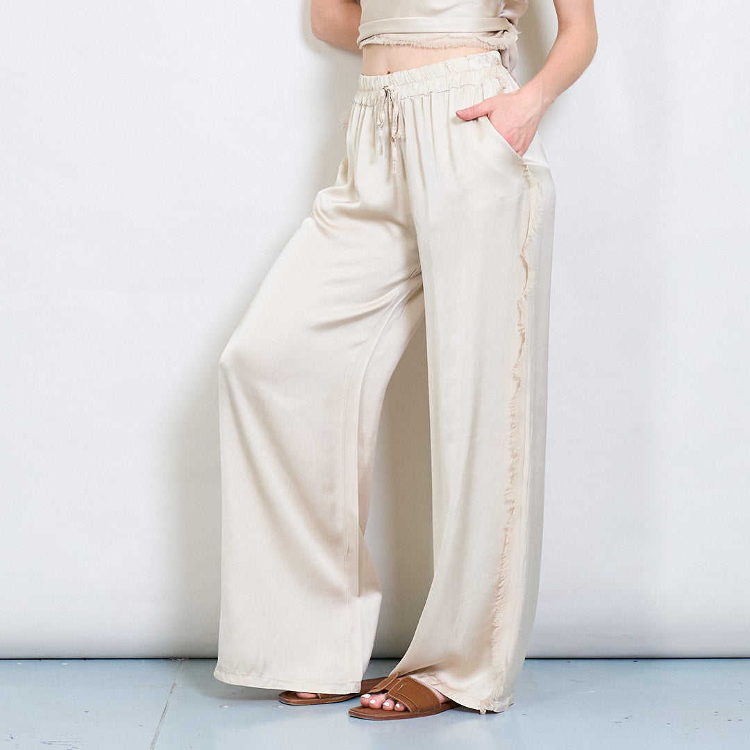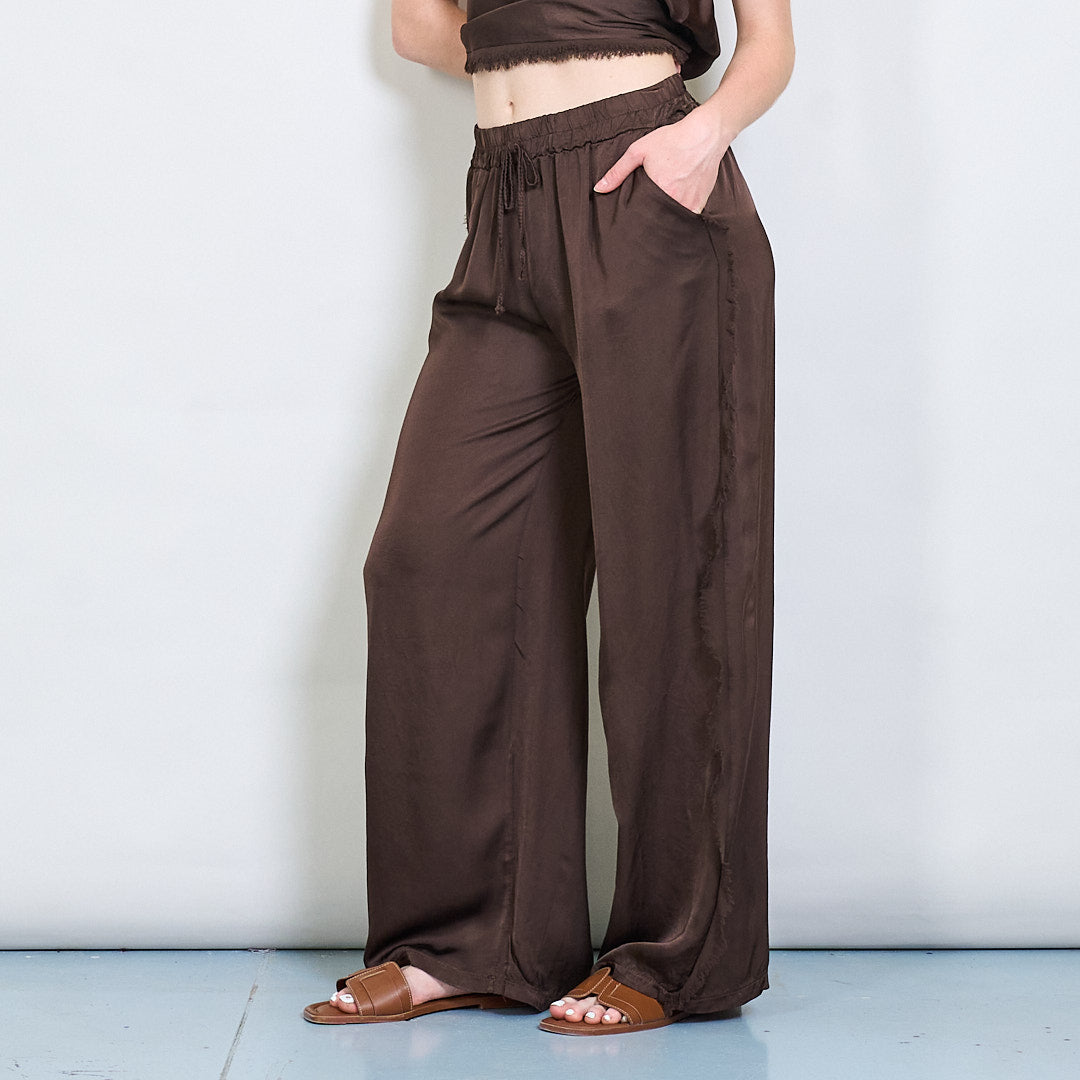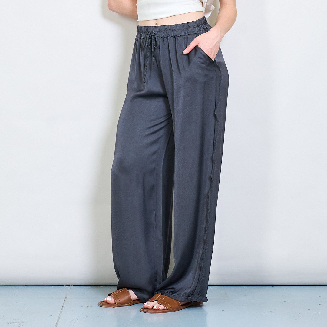 Relaksētas satīna platās kājas bikses ar auklas vairumtirdzniecību