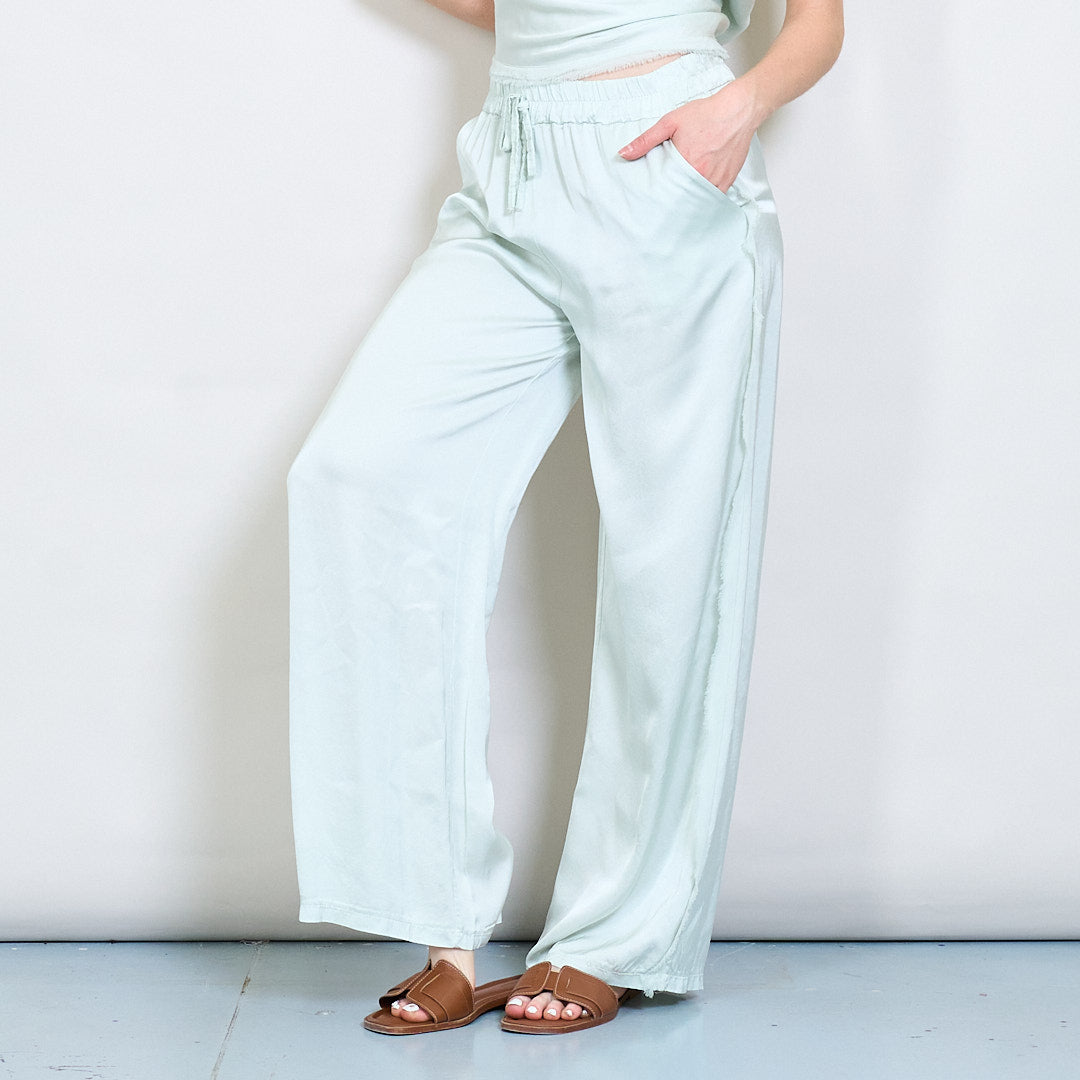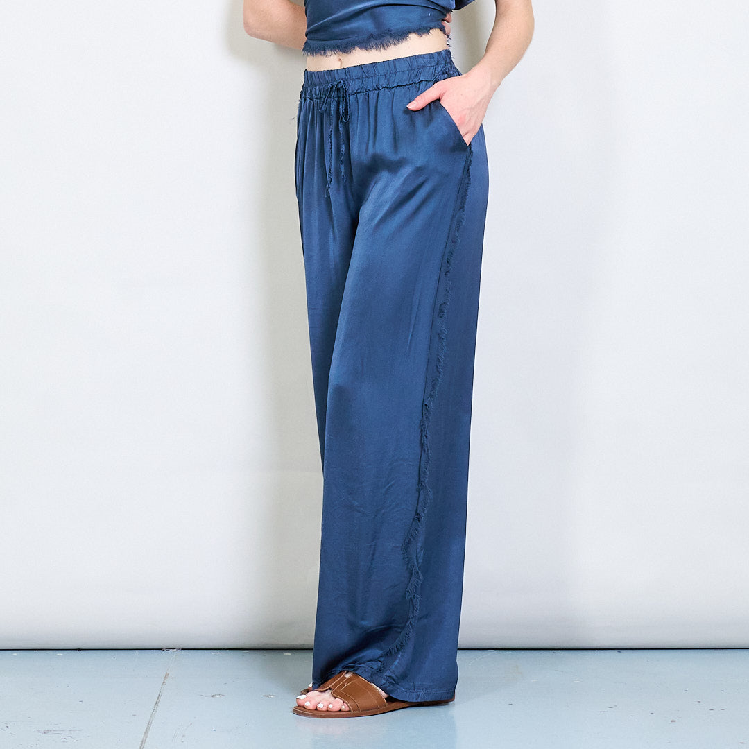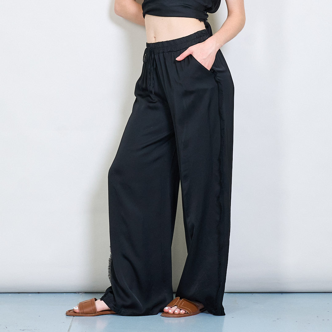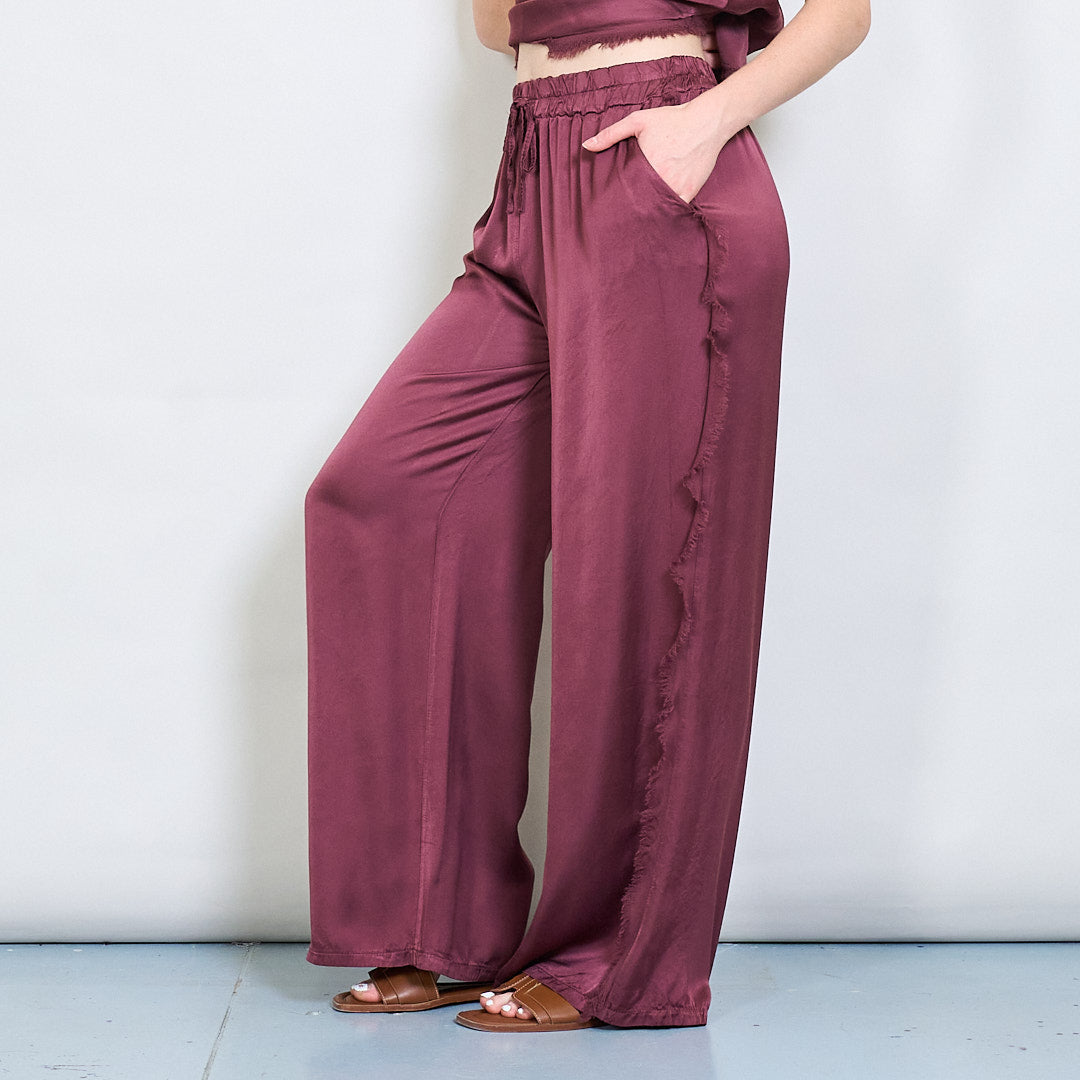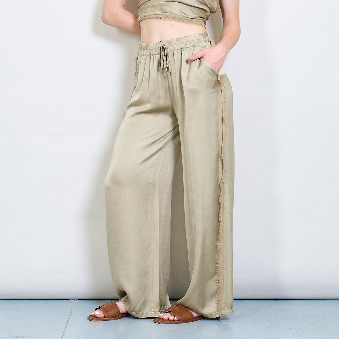 Relaksētas satīna platās kājas bikses ar auklas vairumtirdzniecību