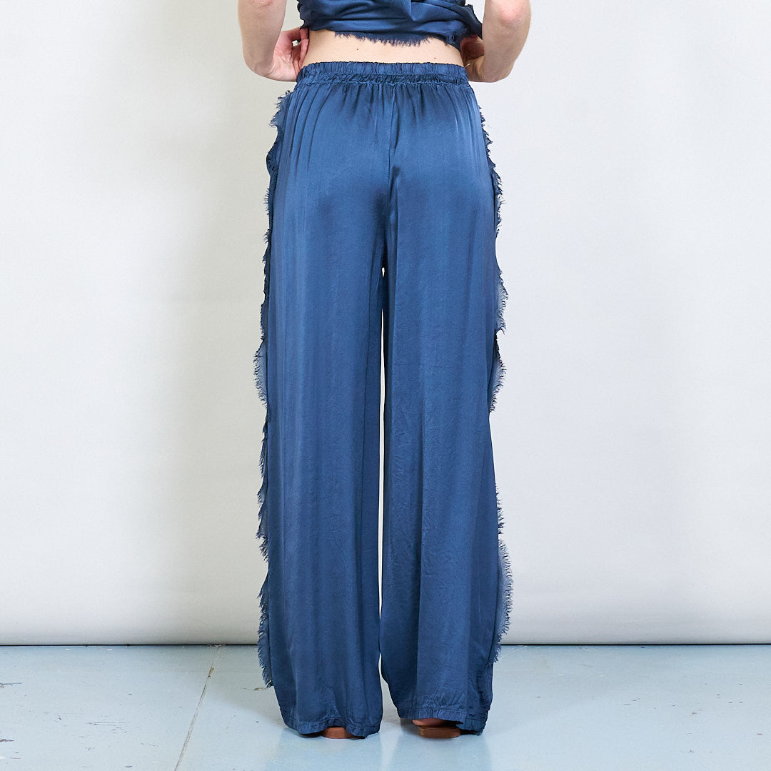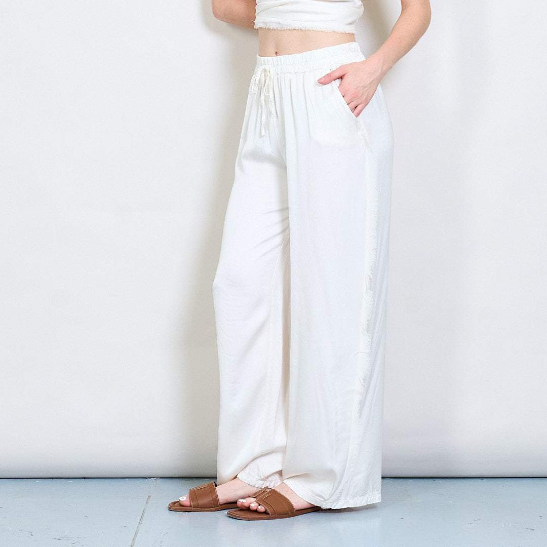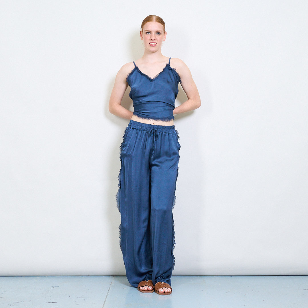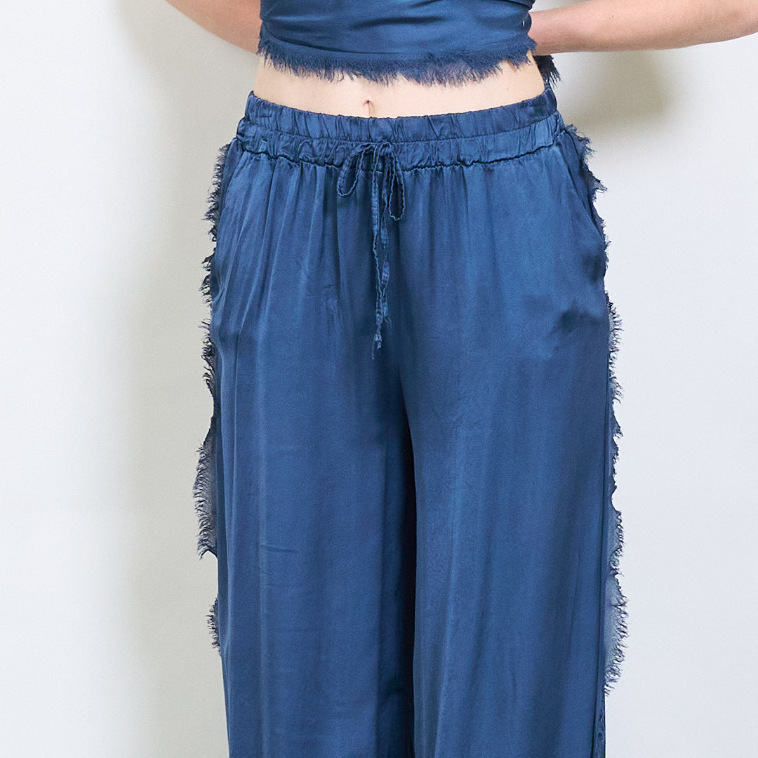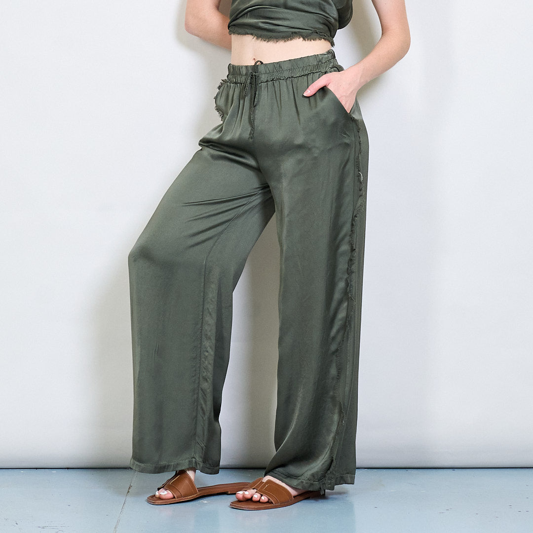 Relaksētas satīna platās kājas bikses ar auklas vairumtirdzniecību