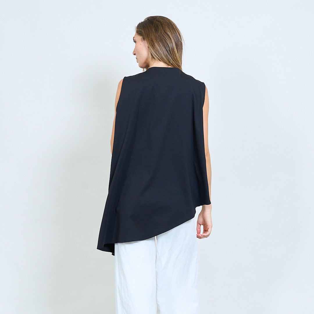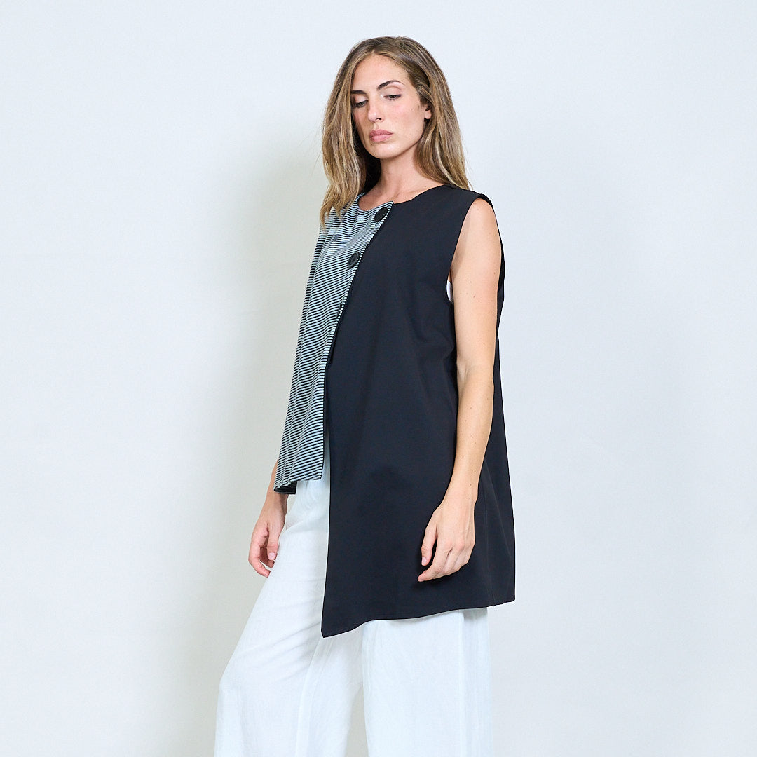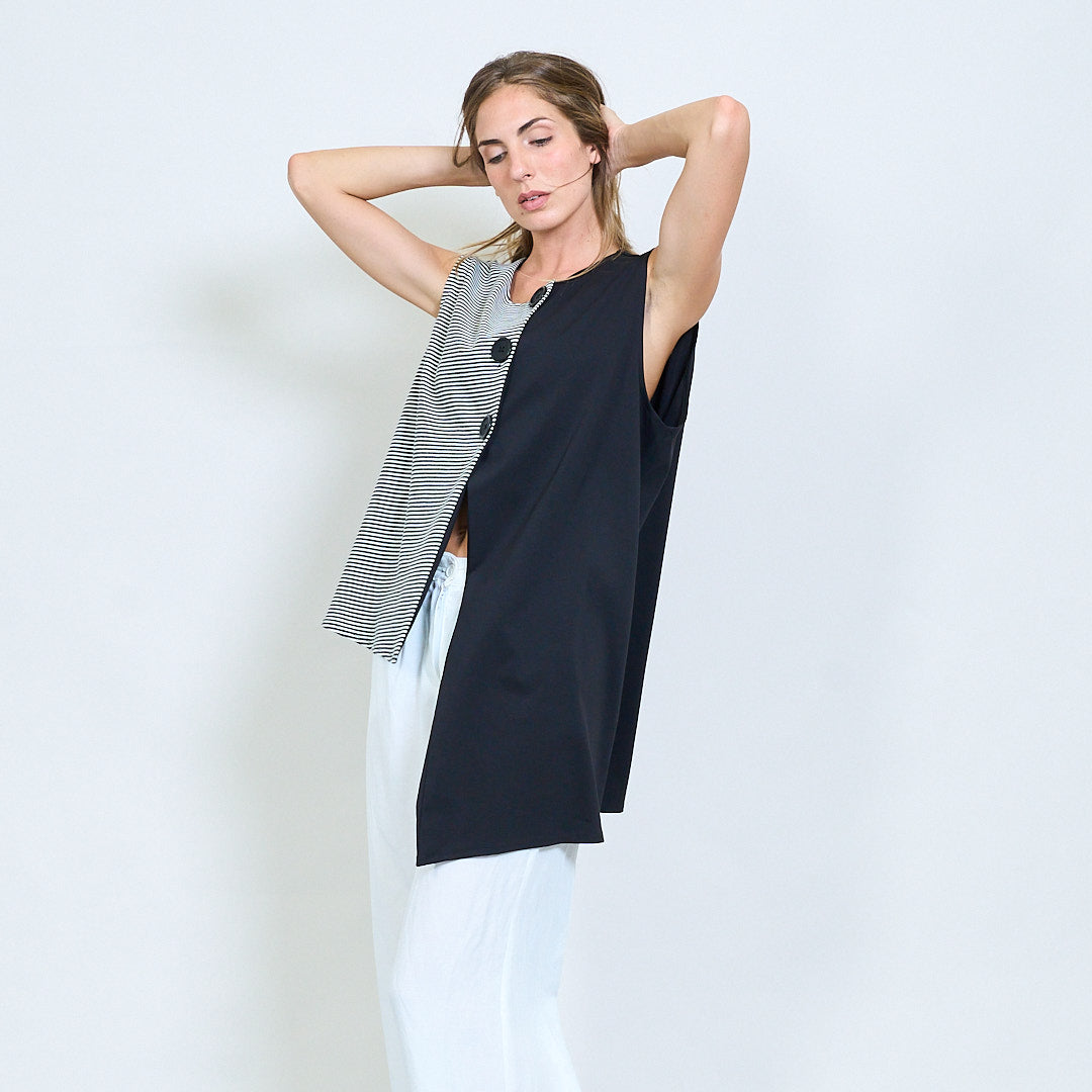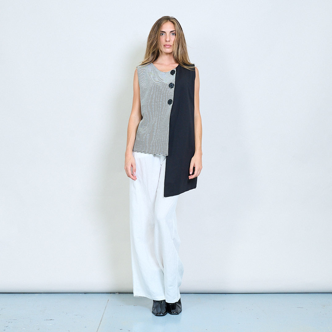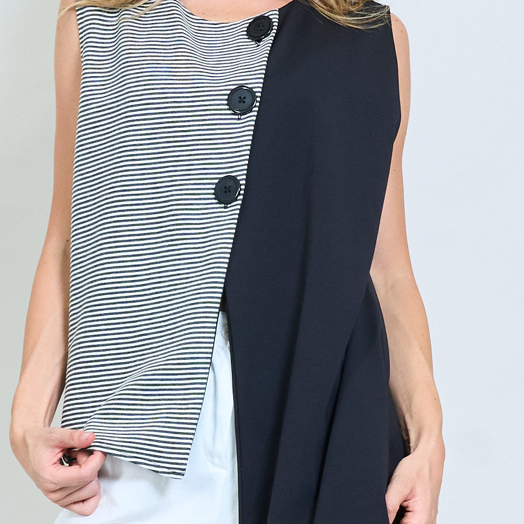 Svītraina paneļa asimetriska bez piedurknēm pogas blūzes vairumtirdzniecība