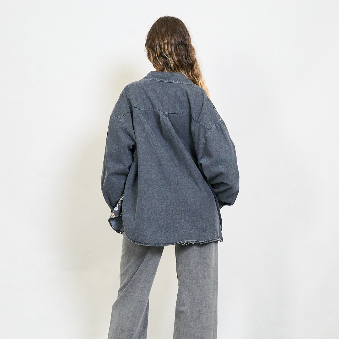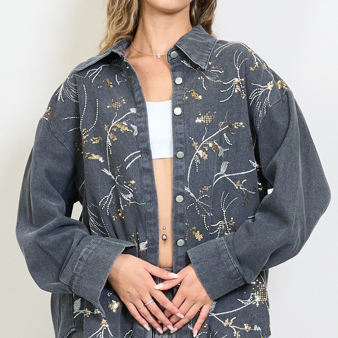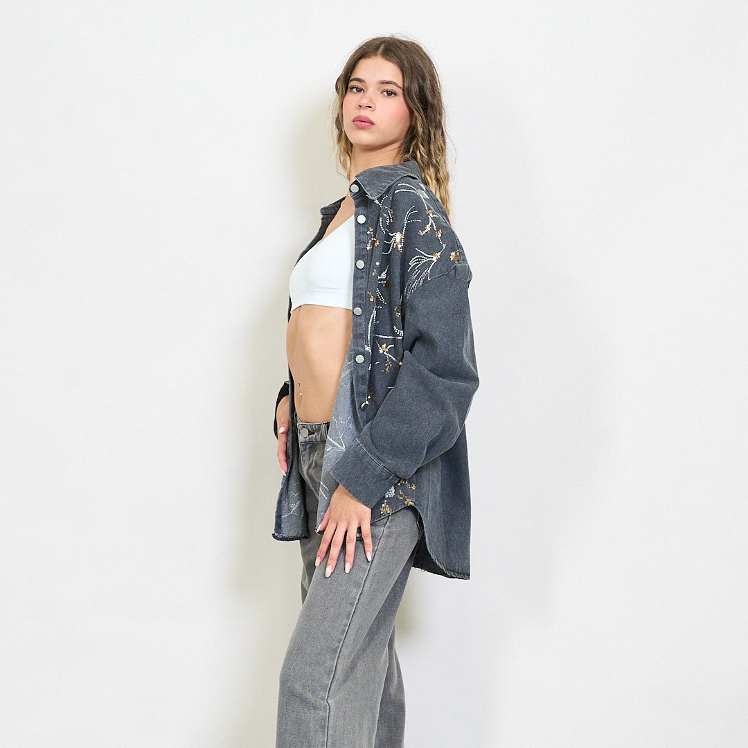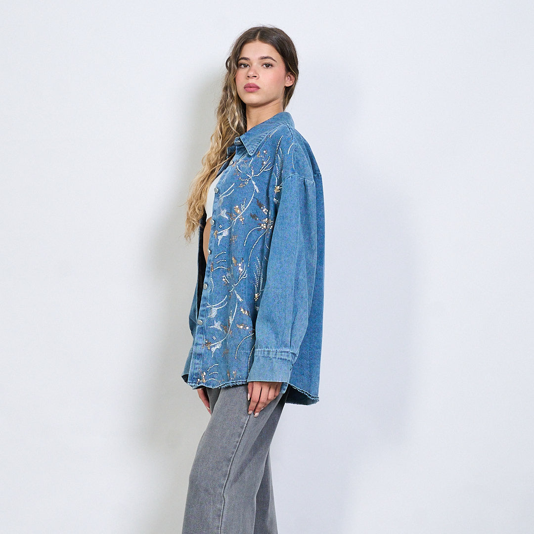 Izšūti flīzes ziedu džinsa krekla jaka Vairumtirdzniecība