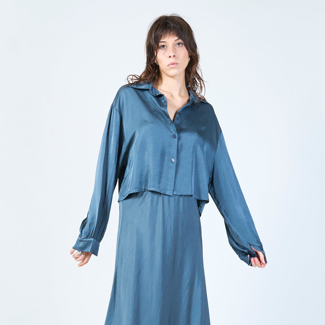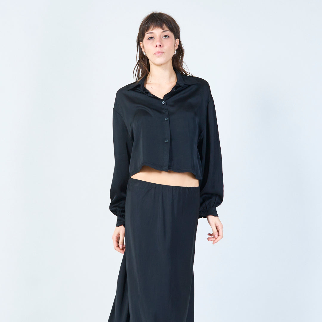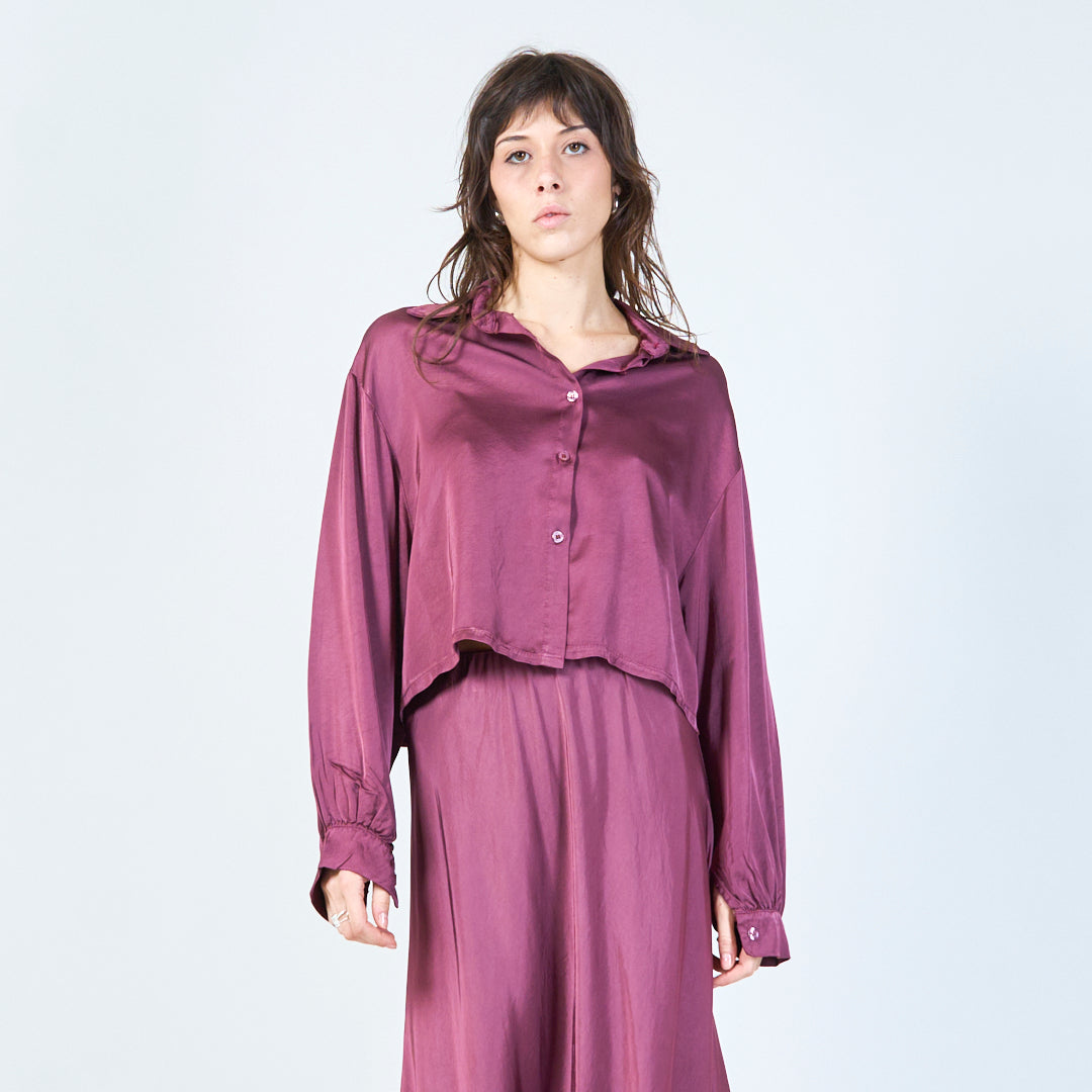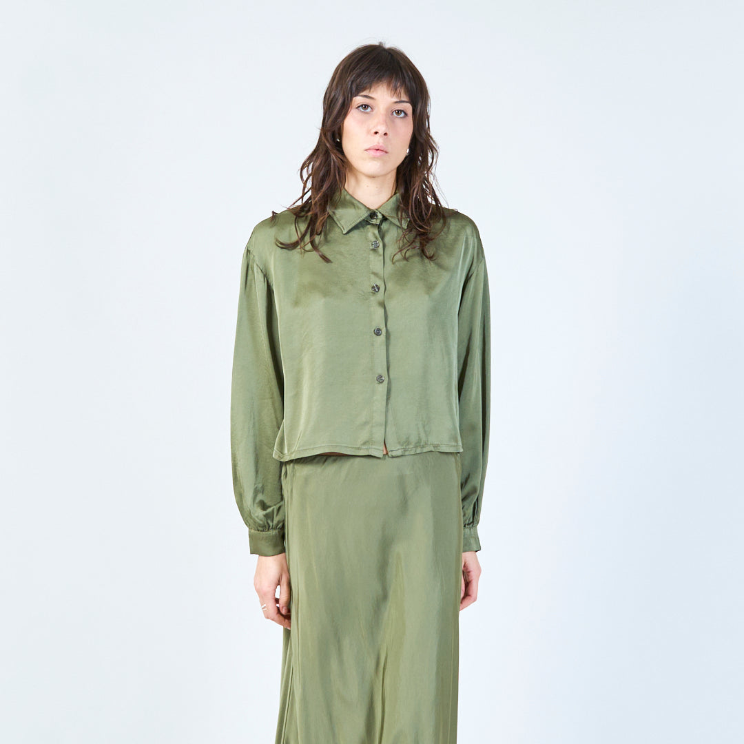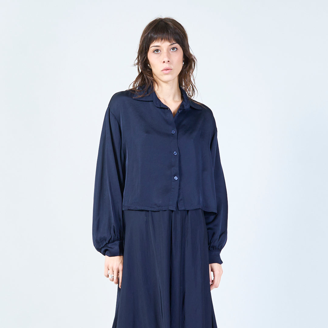 Apgriezta satīna zīda blūze ar plašu apkaklīti