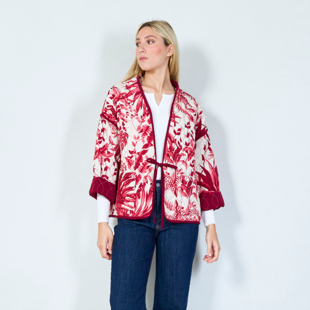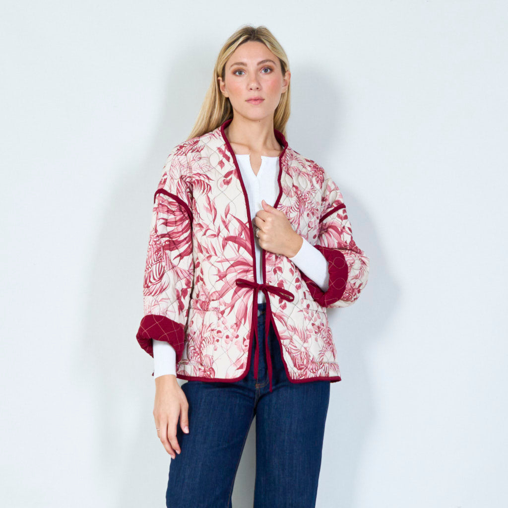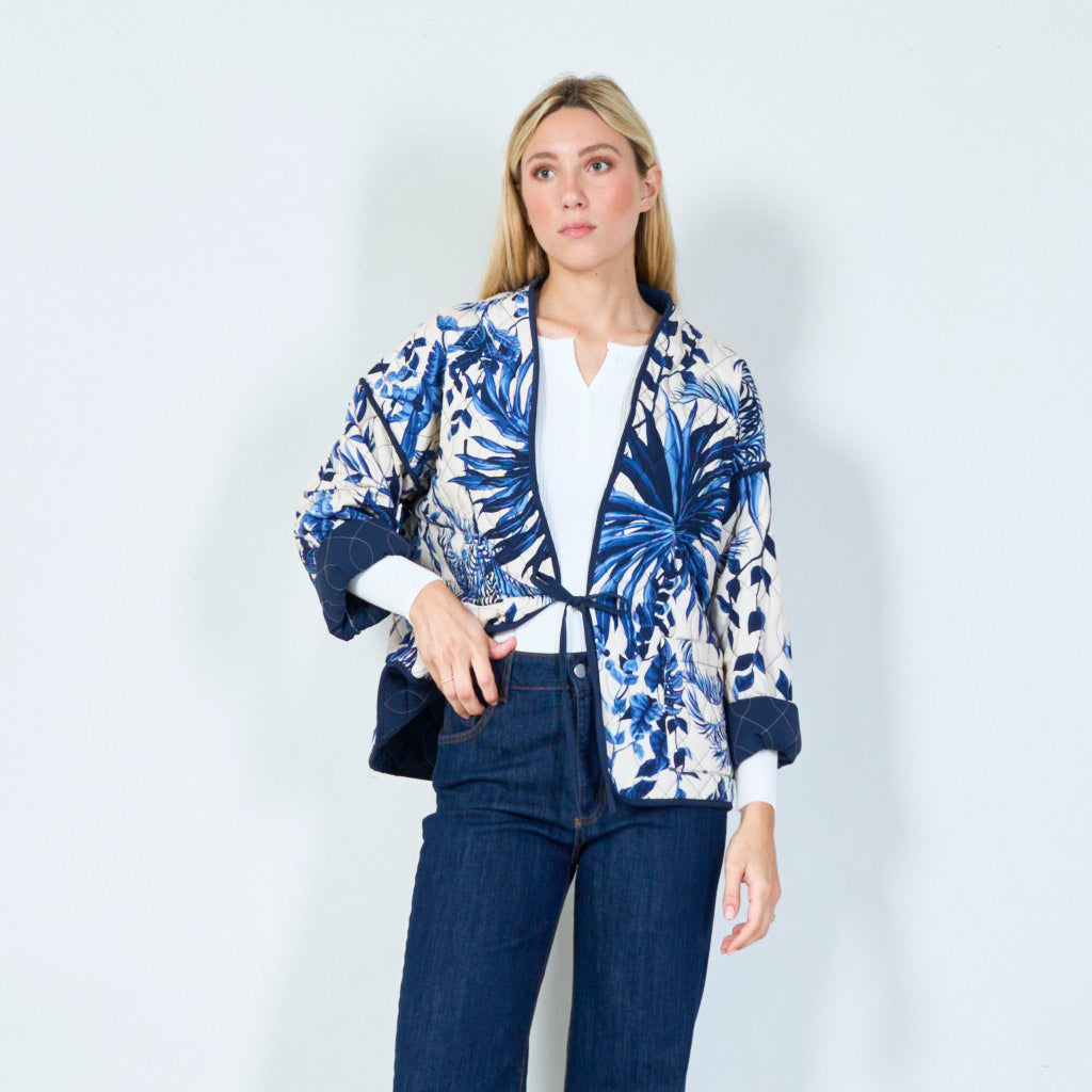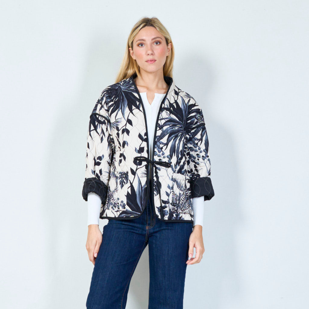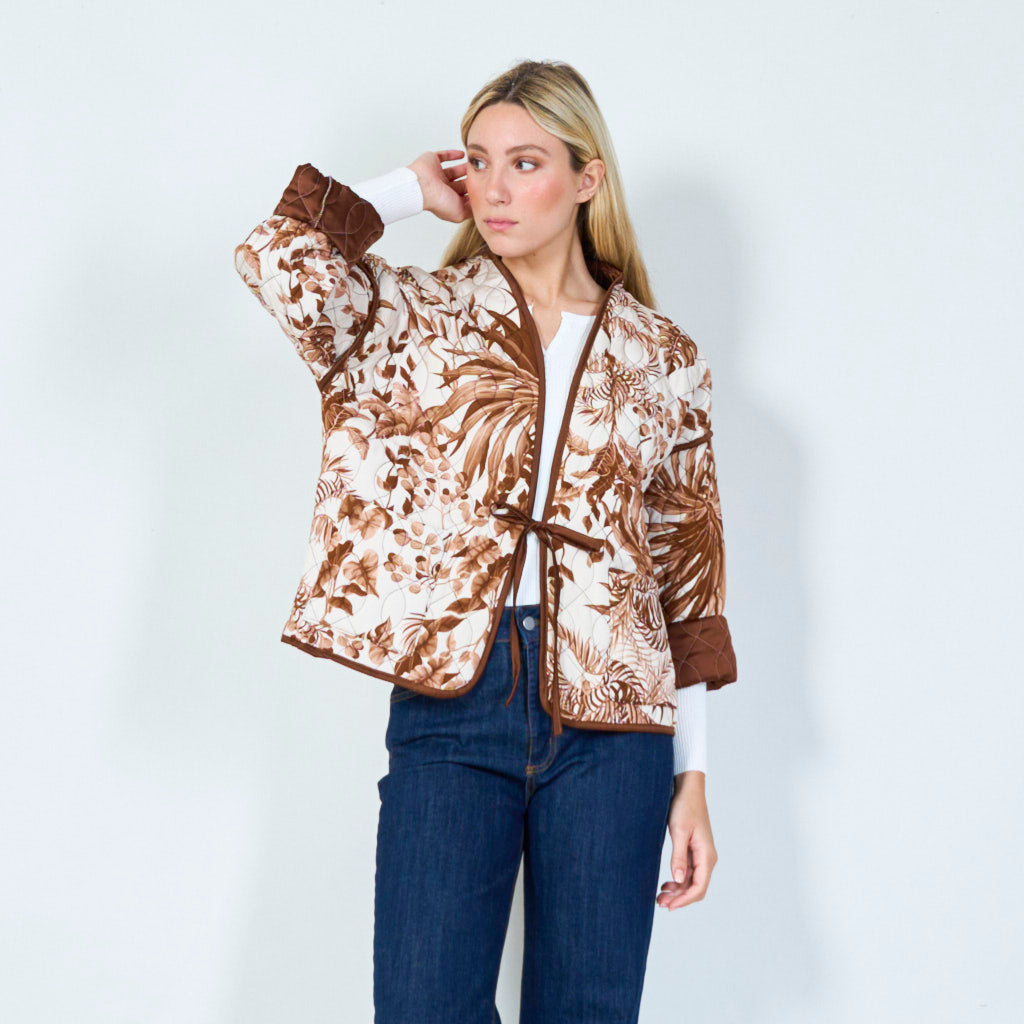 Eleganta botāniskā drukas vatēta jaka vairumtirdzniecība