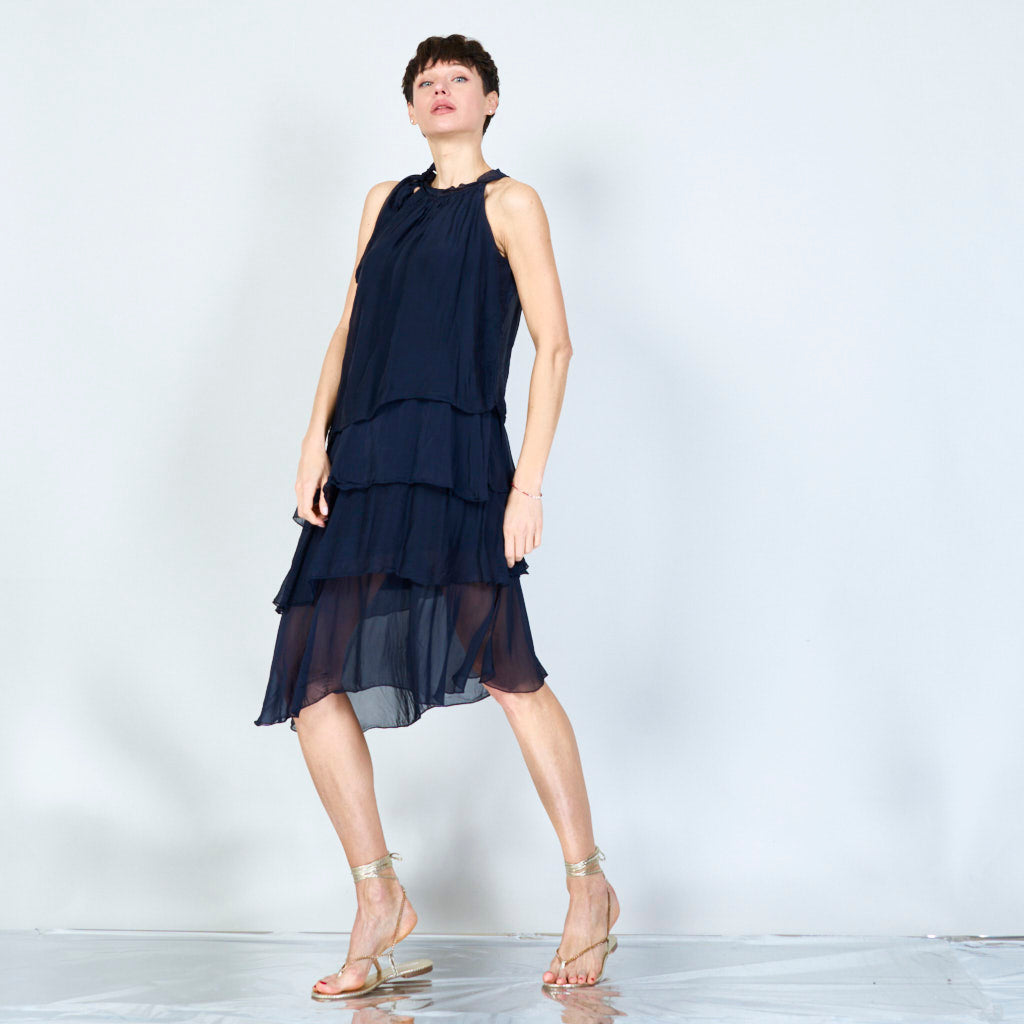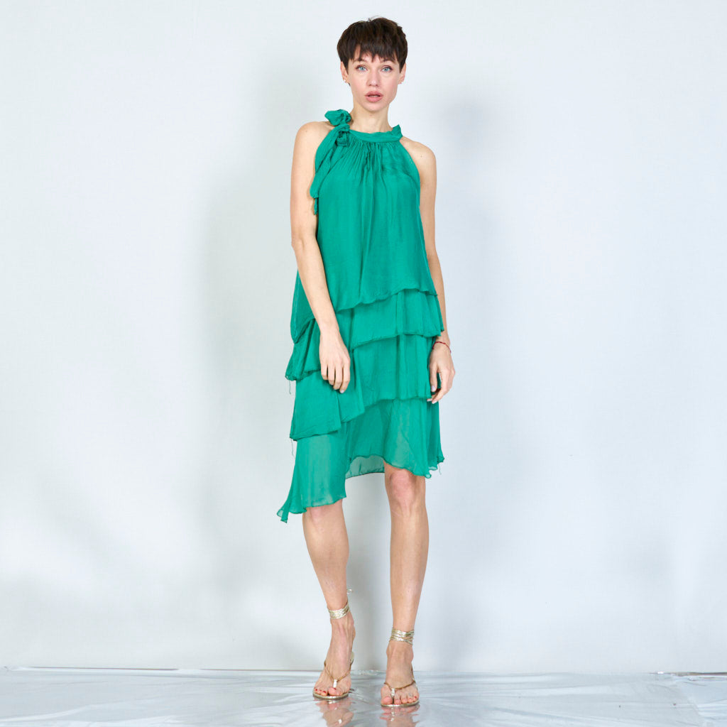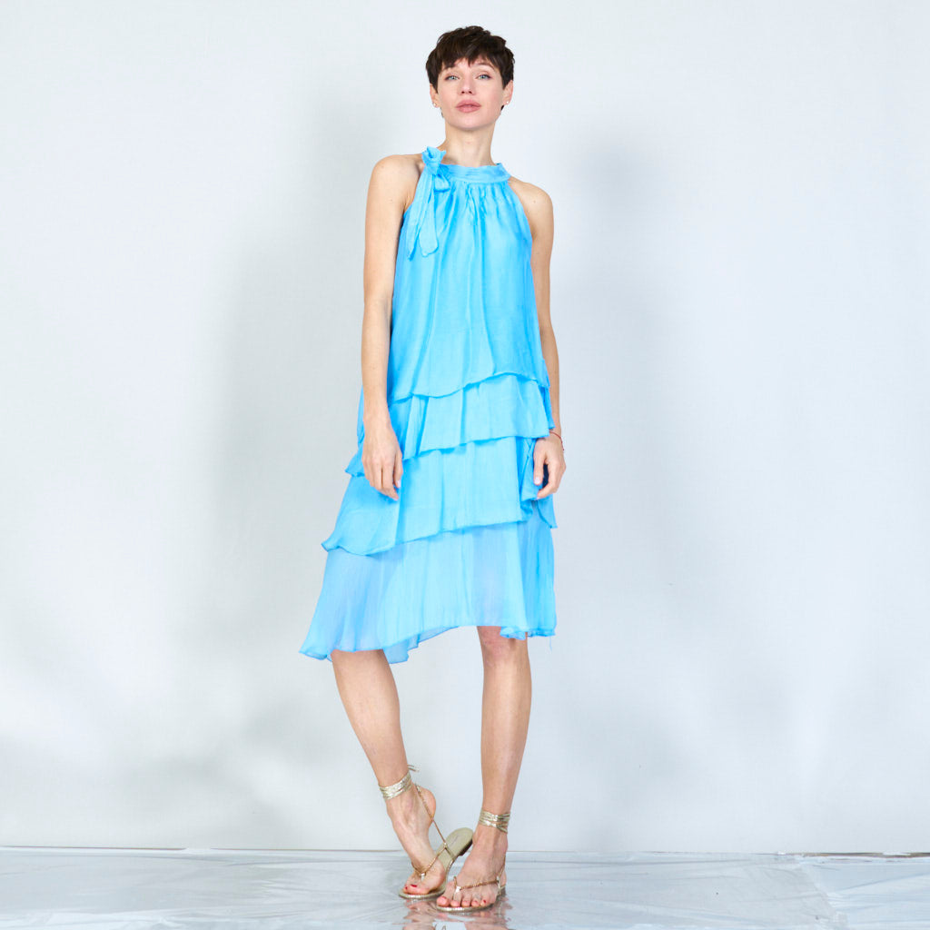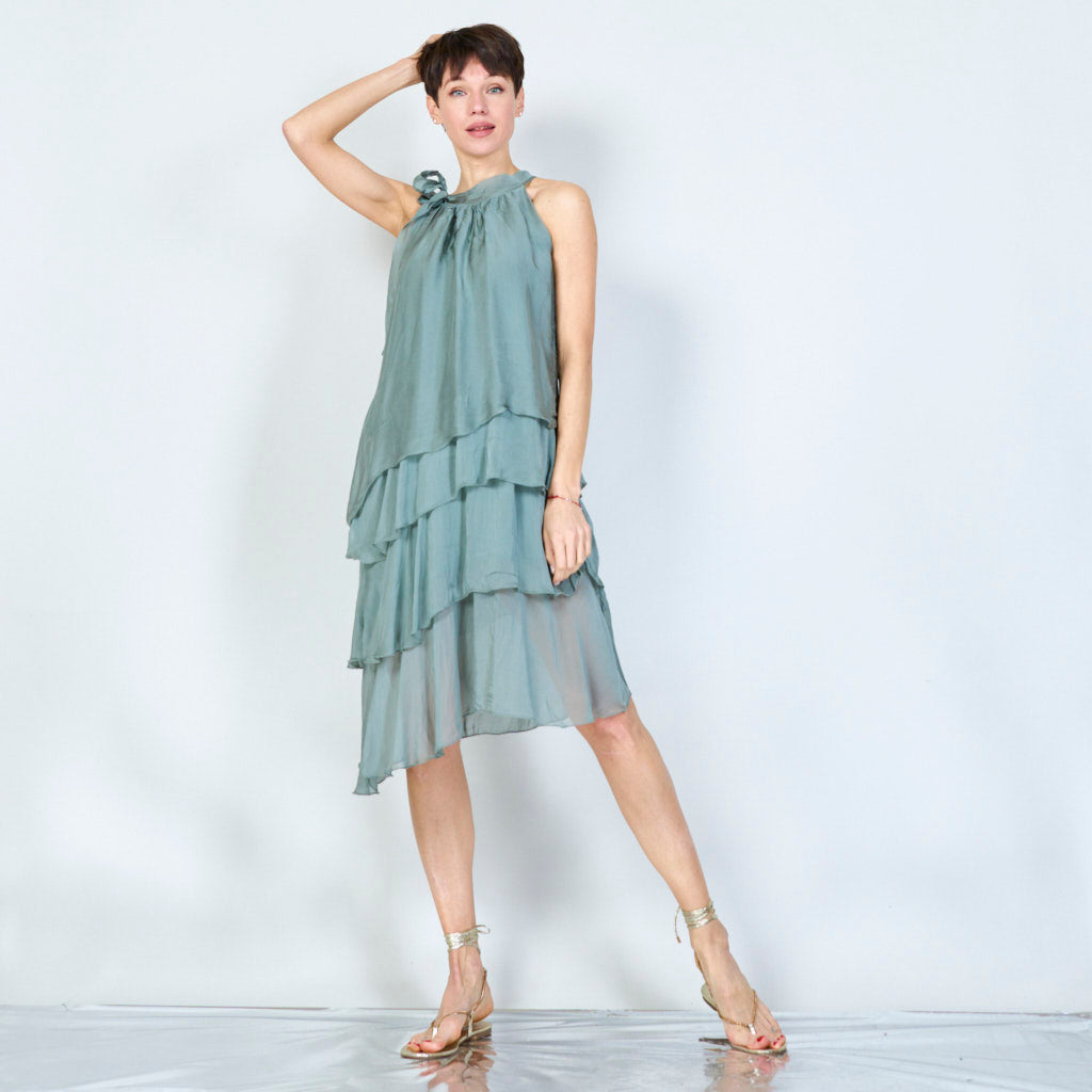 Halterneck zīda šifons ar viļņainu ruffu vairumtirdzniecību