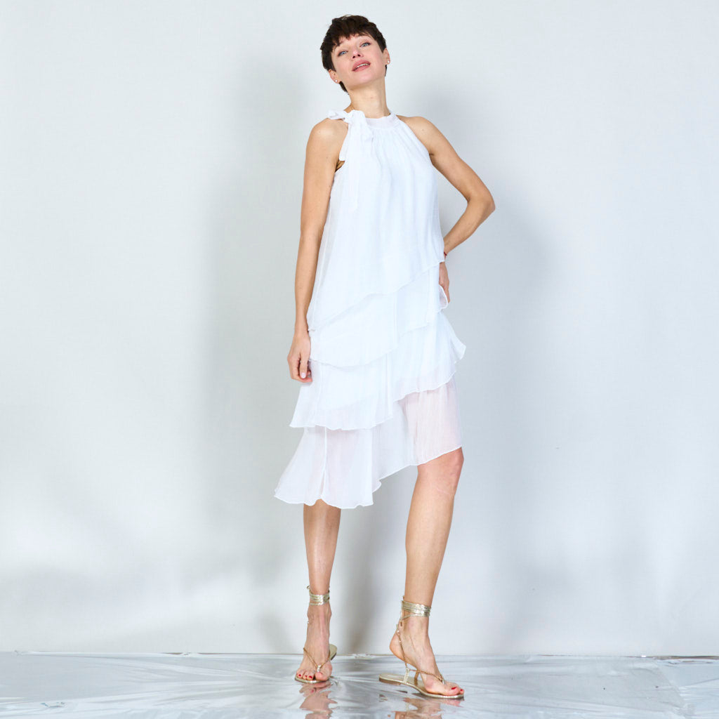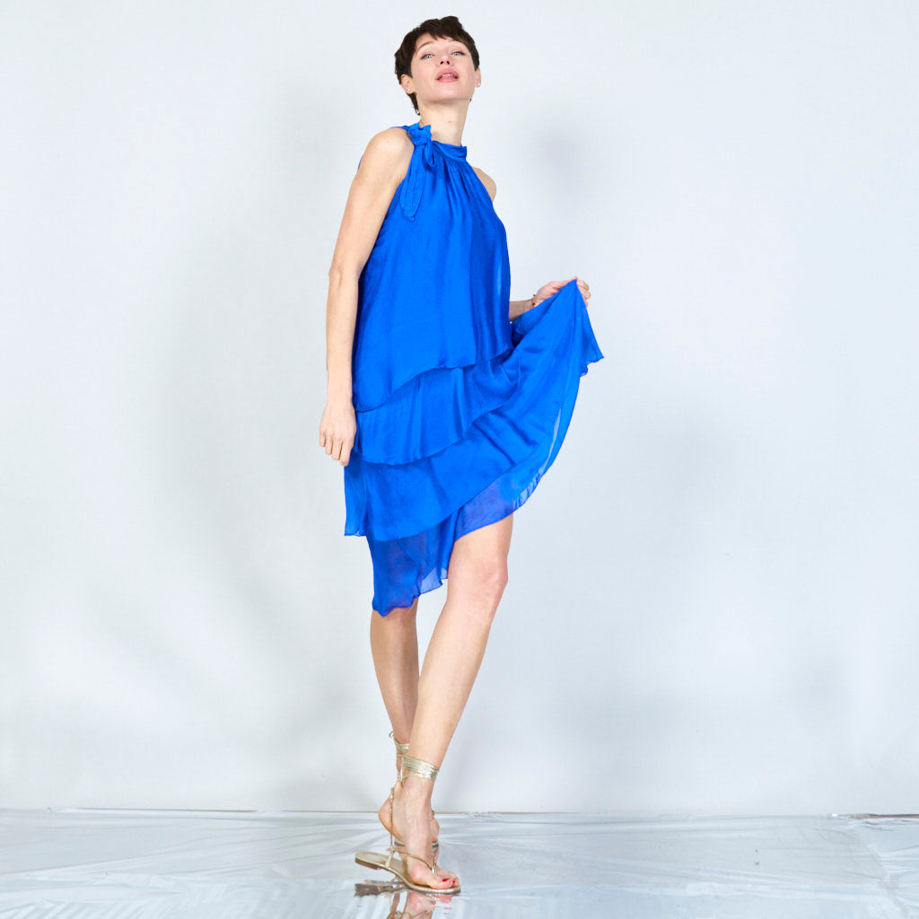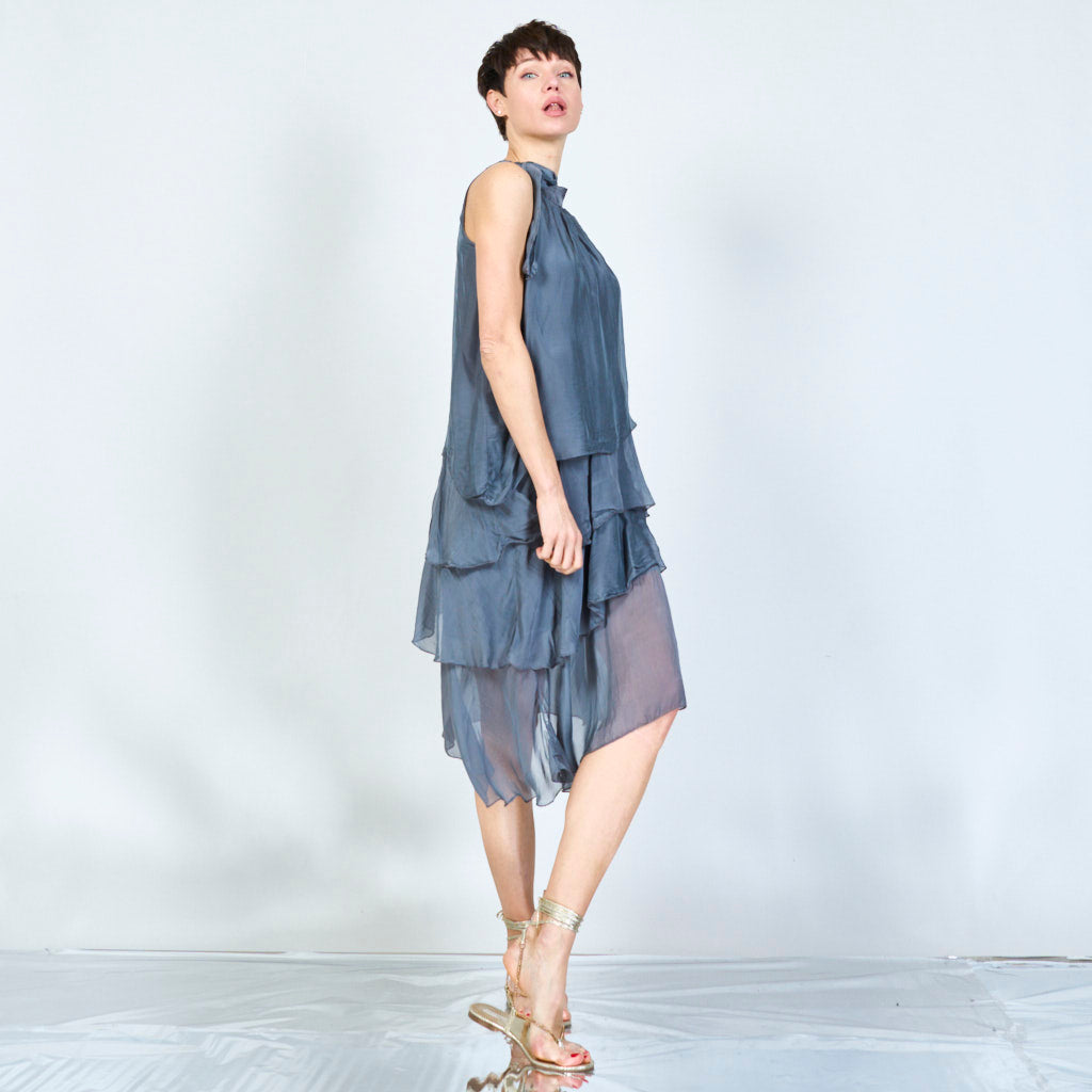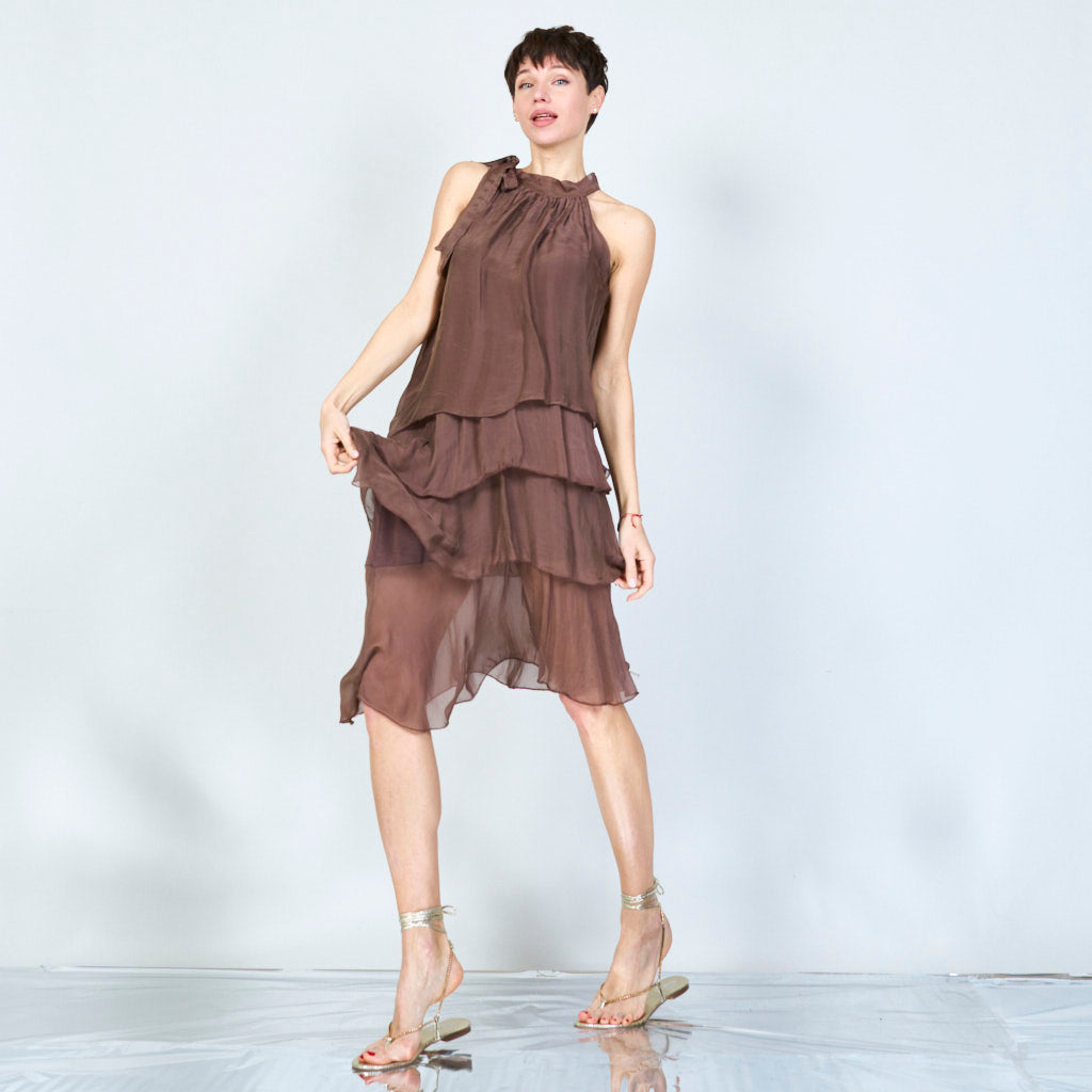 Halterneck zīda šifons ar viļņainu ruffu vairumtirdzniecību