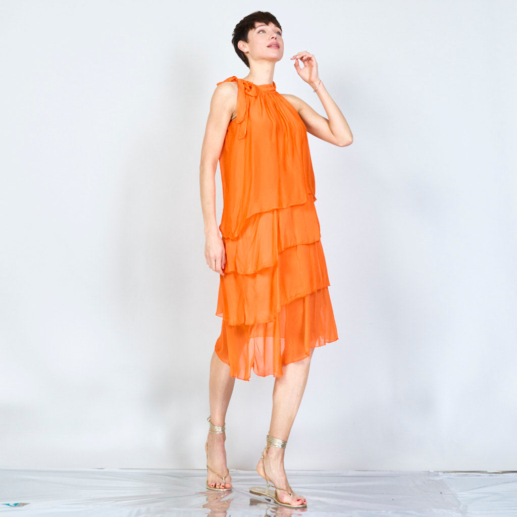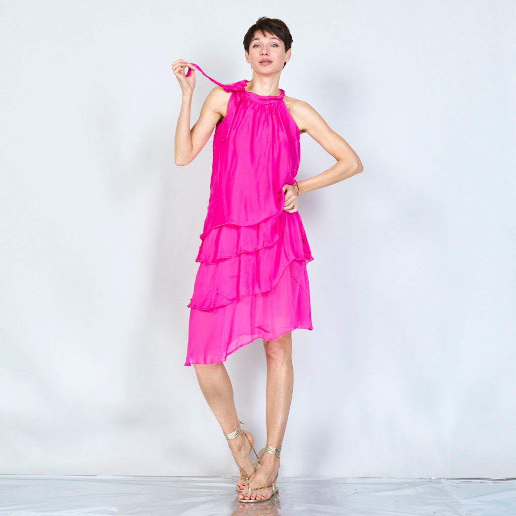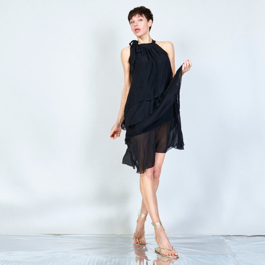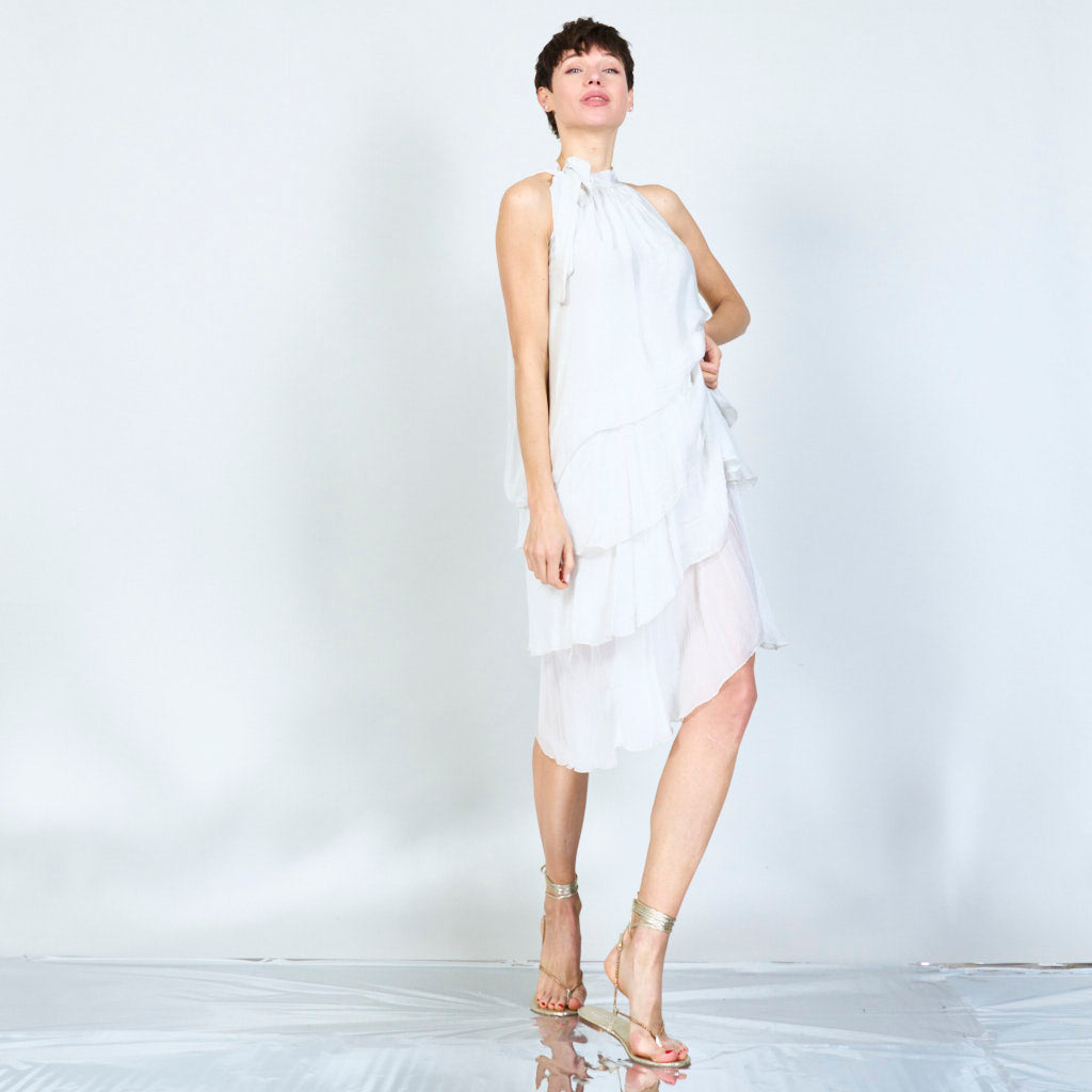 Halterneck zīda šifons ar viļņainu ruffu vairumtirdzniecību